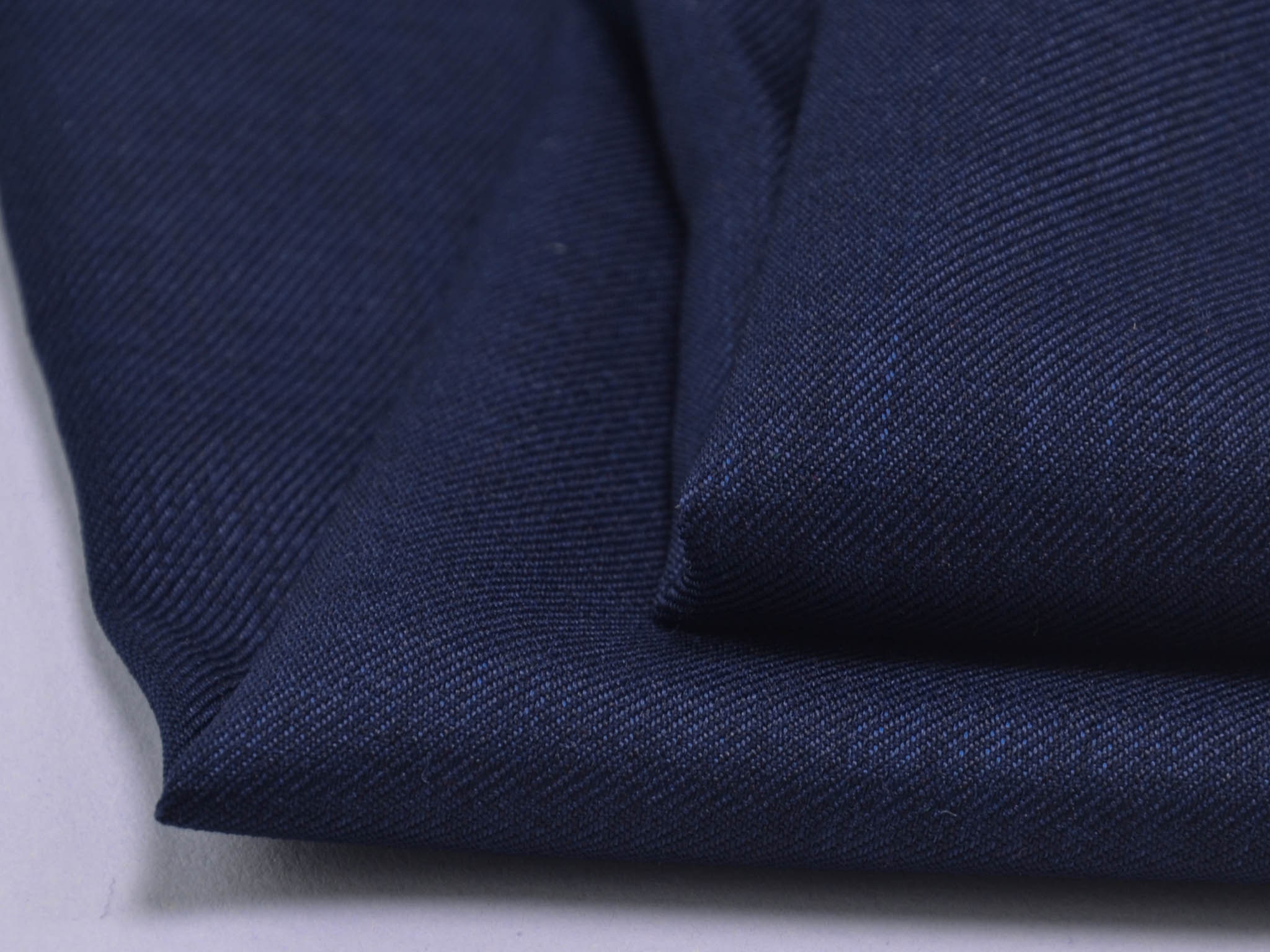Slightly shiny gabardine in dark blue. This lightweight fabric is perfect for sewing business-style suits. It's crease-resistant.