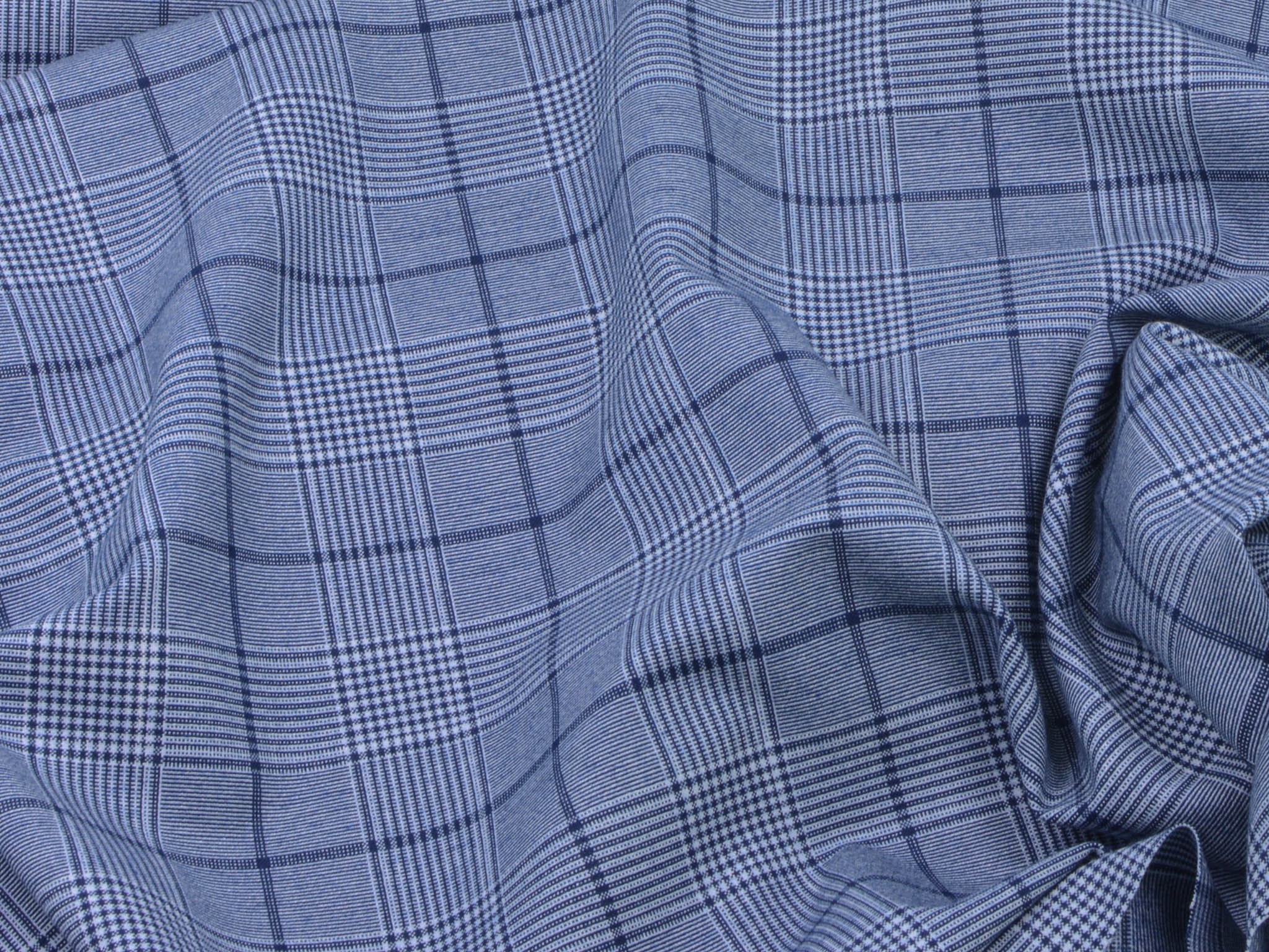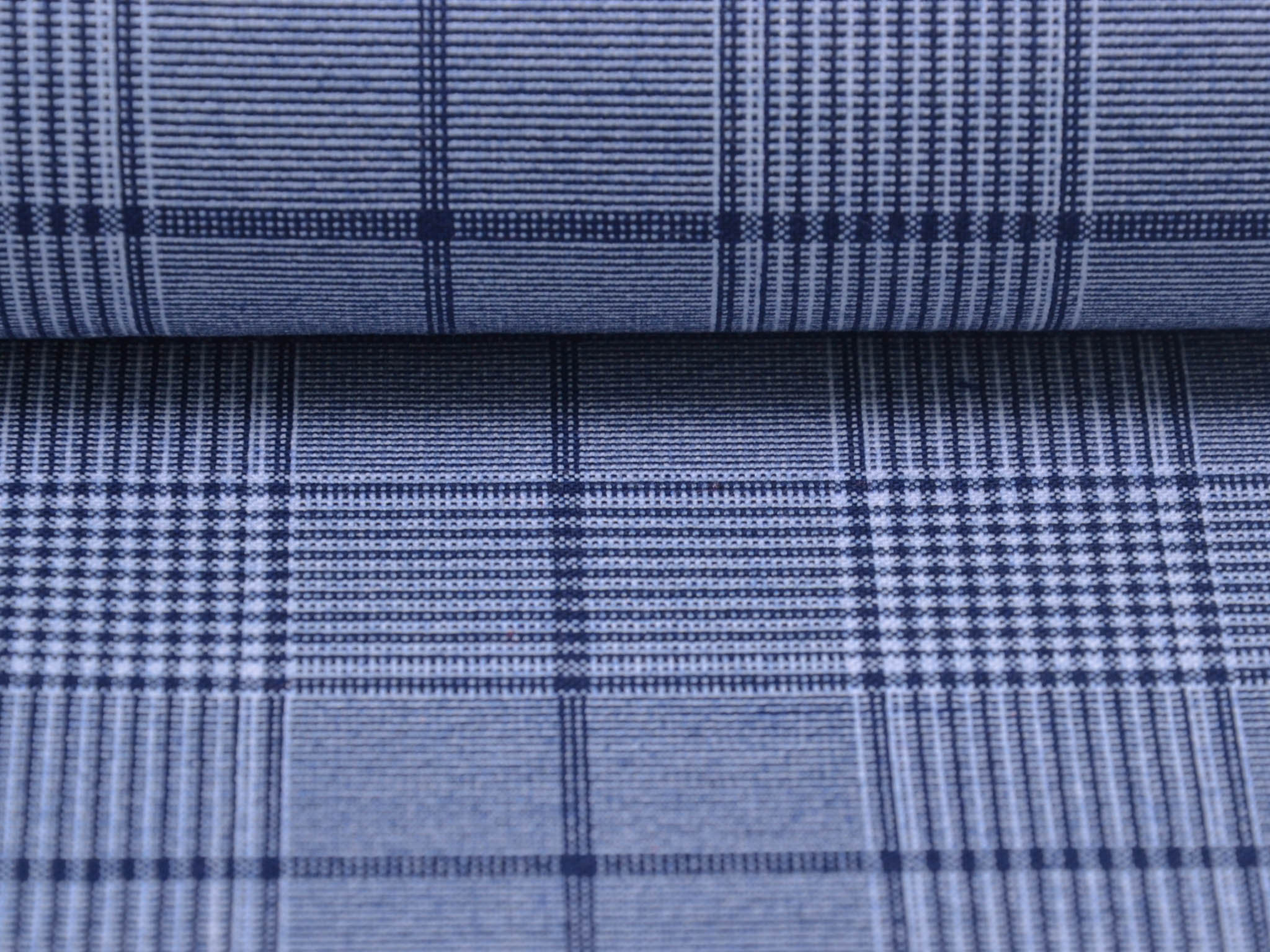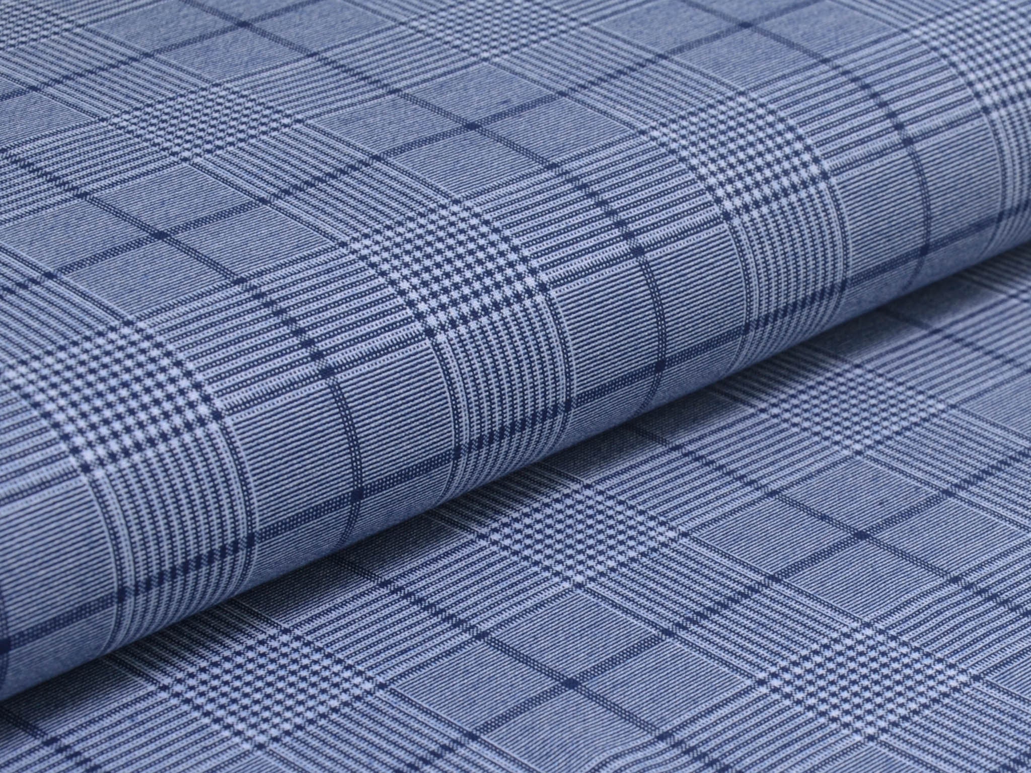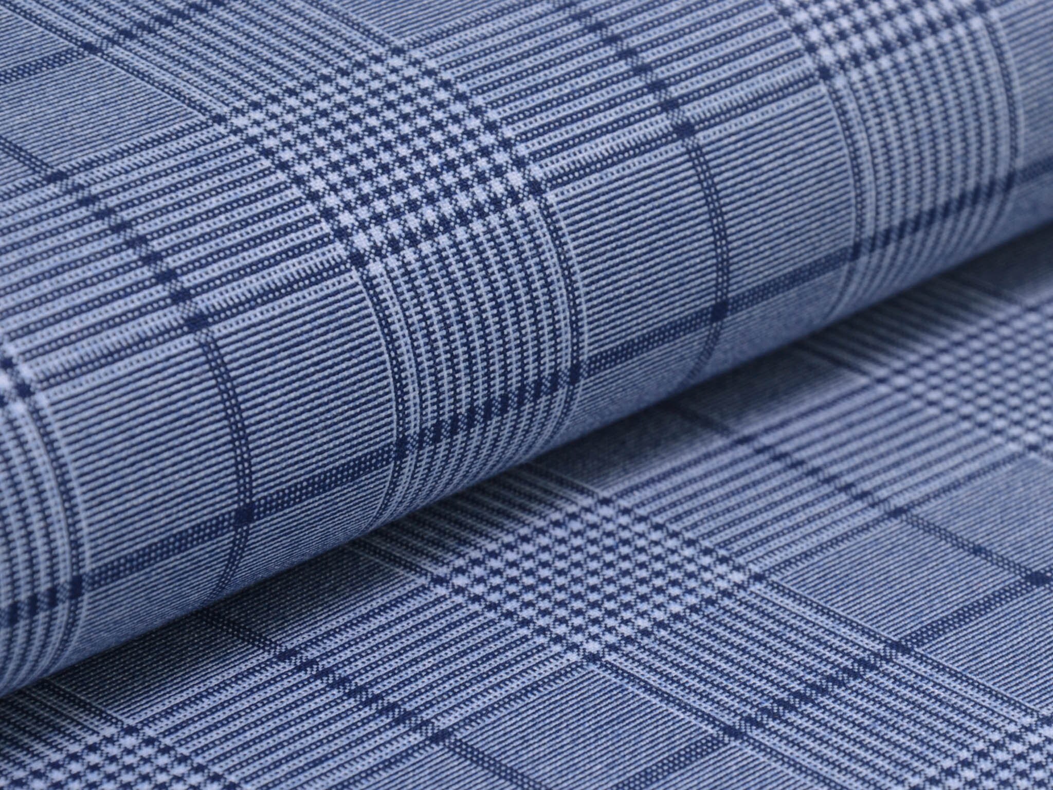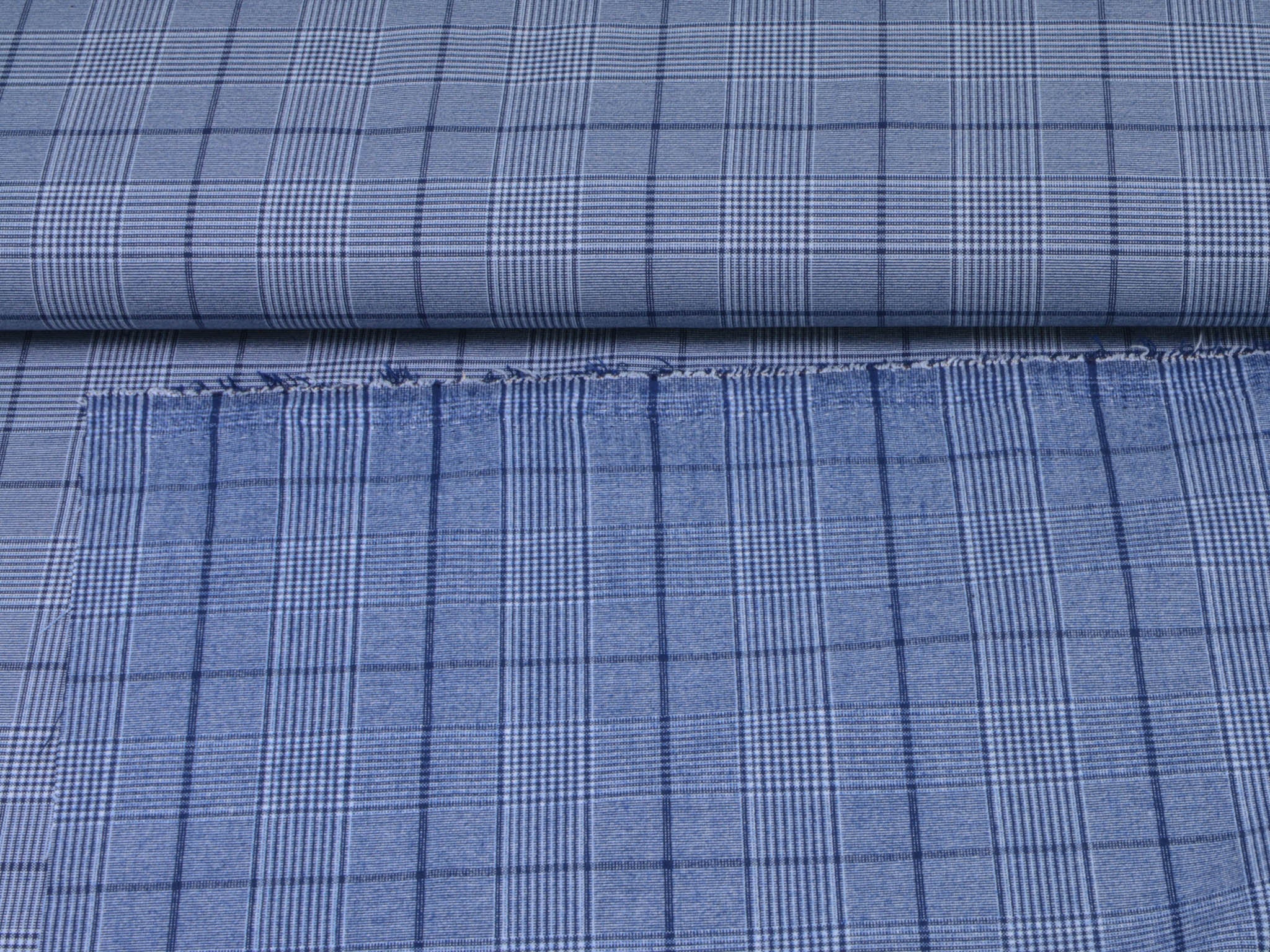 High-quality trouser fabric made of cotton, viscose, and polyester. The special thing about this great fabric is that it can be used on both sides. One side is smooth and "cool," while the other side feels like flannel and "warm." The dark blue check is approximately 7.5 cm x 7.5 cm. The fabric is used for sewing trousers, skirts, dresses, jackets, and much more.