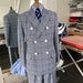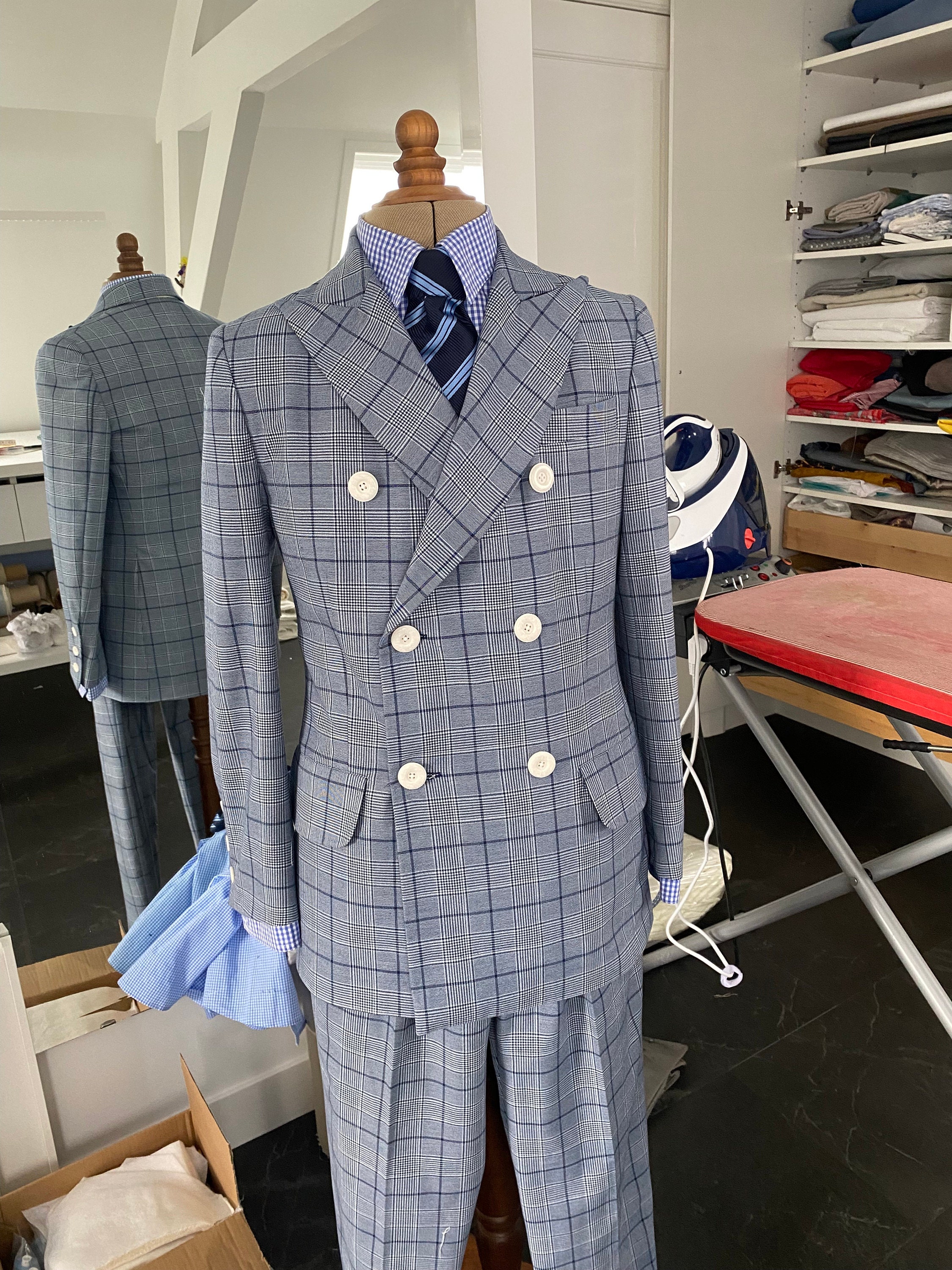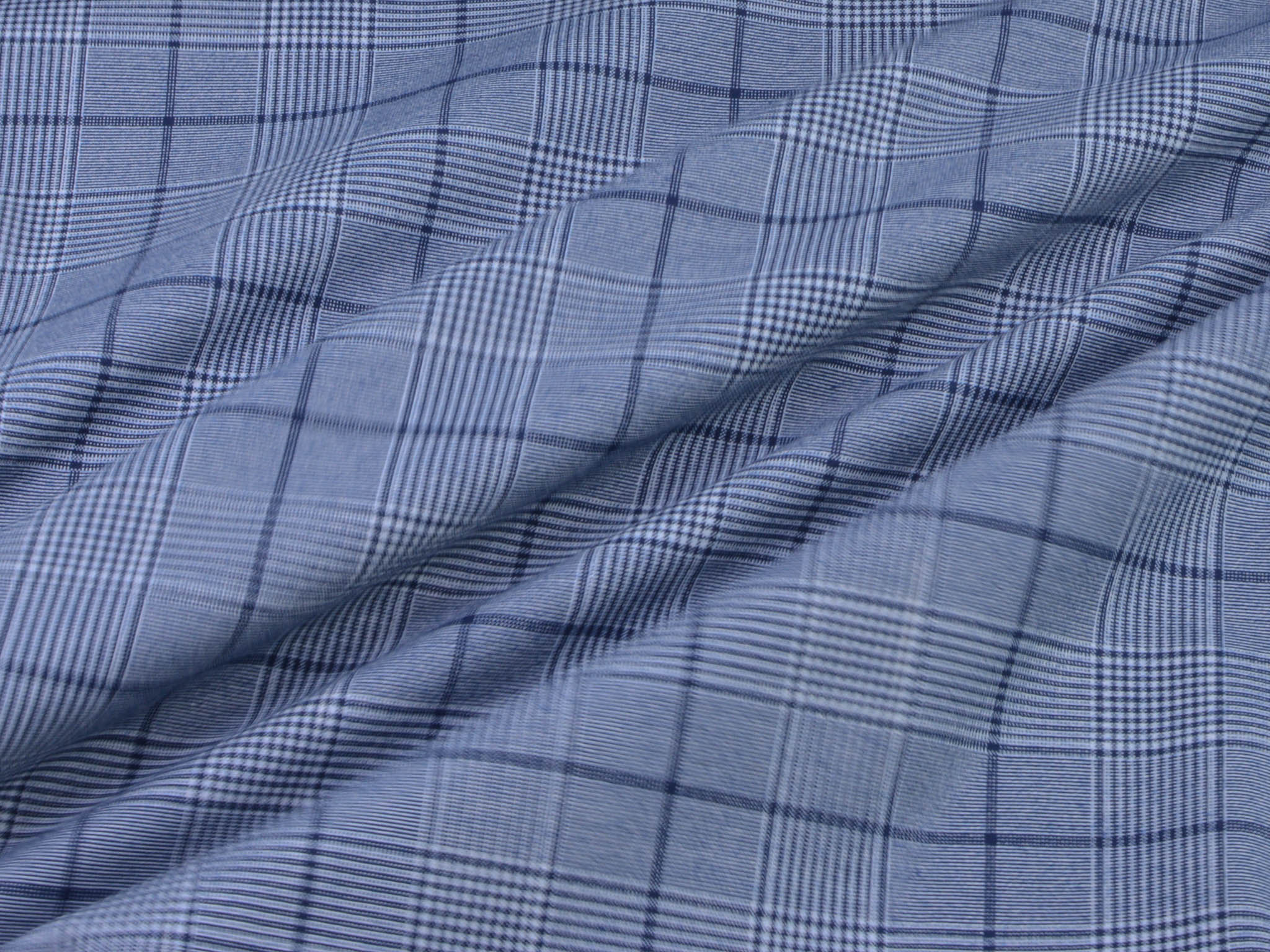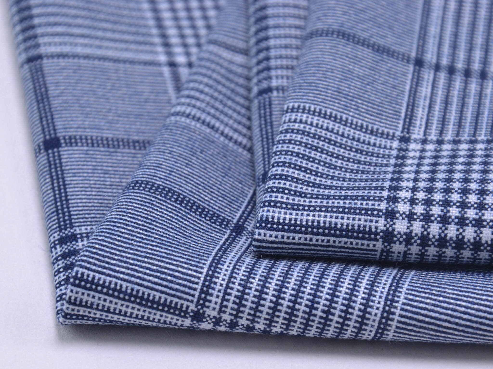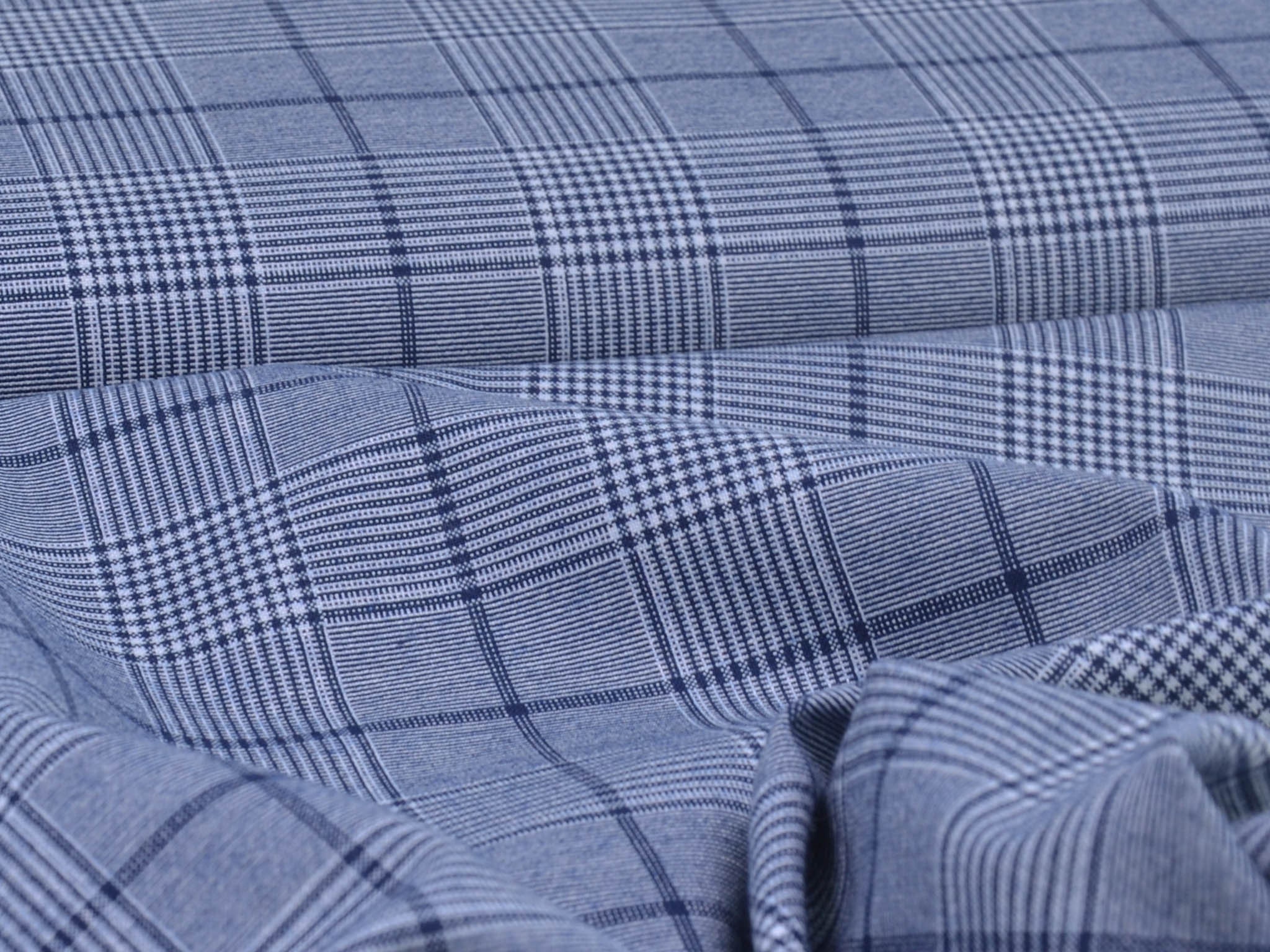 High-quality trouser fabric made of cotton, viscose, and polyester. The special thing about this great fabric is that it can be used on both sides. One side is smooth and "cool," while the other side feels like flannel and "warm." The dark blue check is approximately 7.5 cm x 7.5 cm. The fabric is used for sewing trousers, skirts, dresses, jackets, and much more.