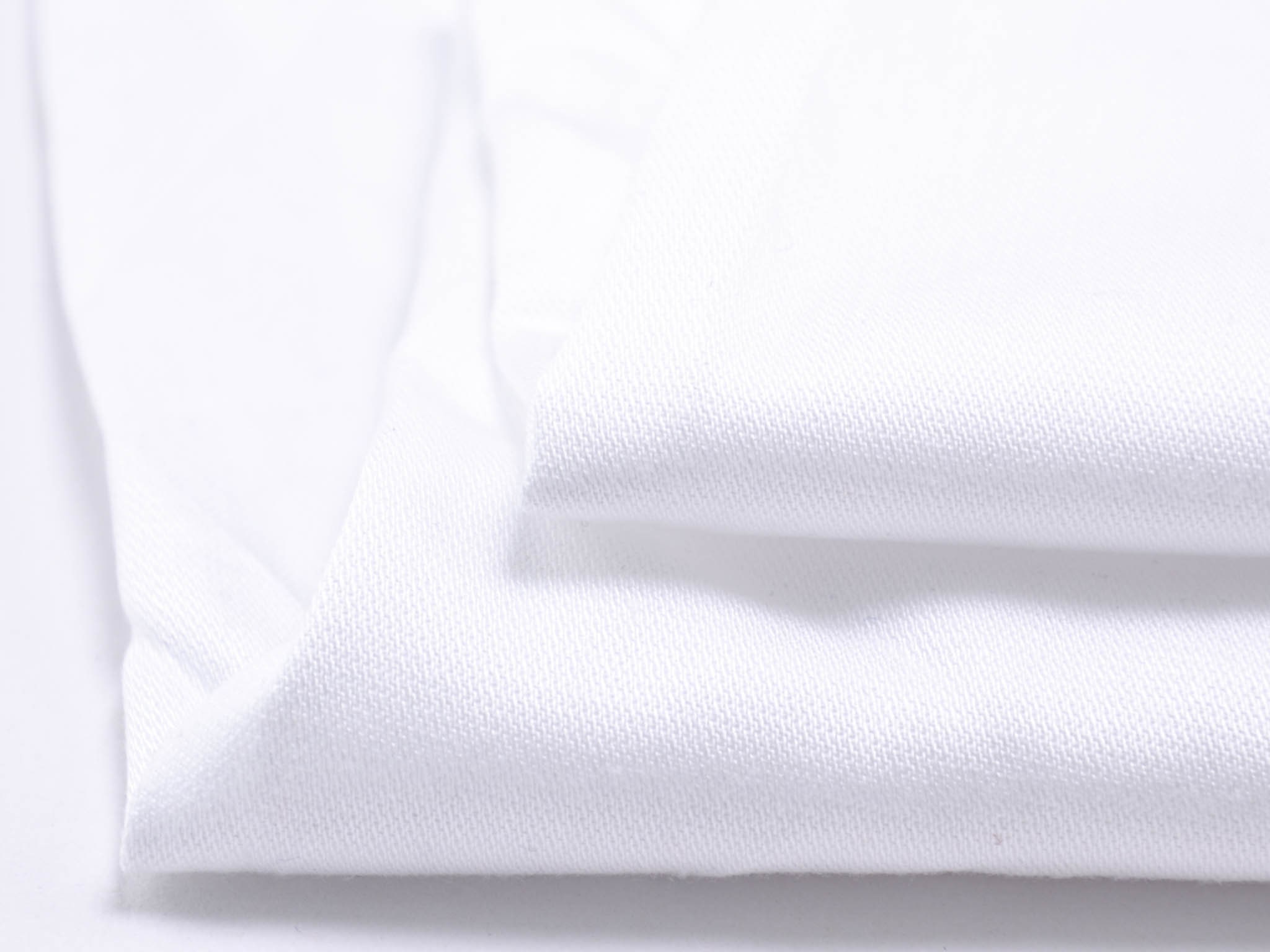 White cotton fabric with elastane for simple trousers, skirts, and dresses. A summery, thin fabric.