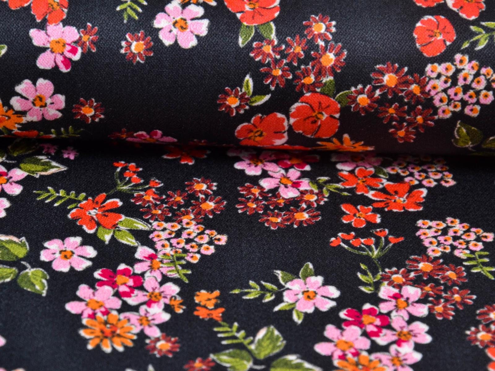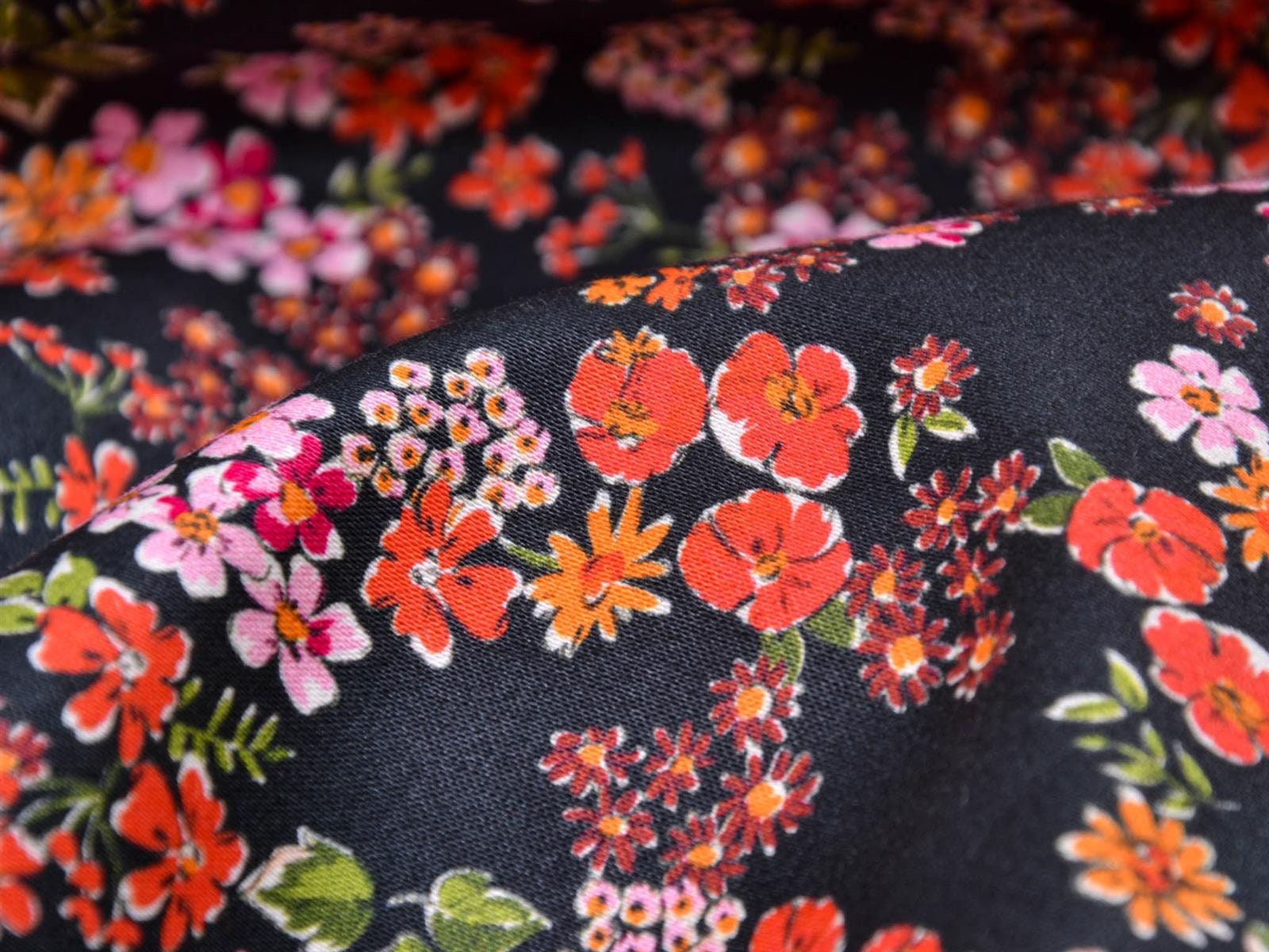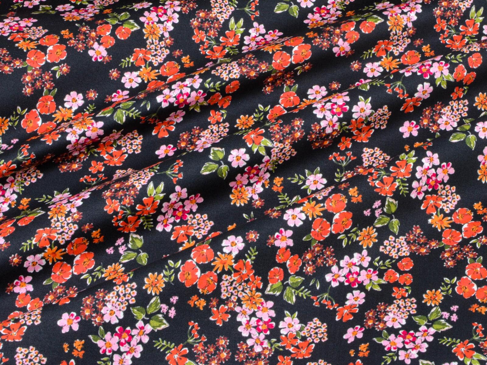 Hochwertiger Satinstoff aus Baumwolle mit Elastan. Der elastische Stoff eignet sich wunderbar zum Nähen von schicken Hosen, Röcken und Kleidern.