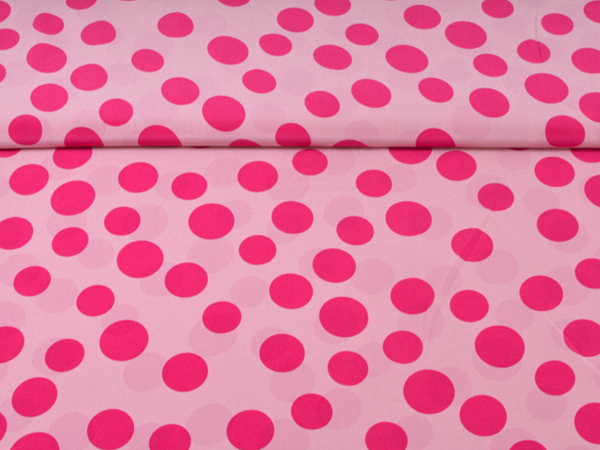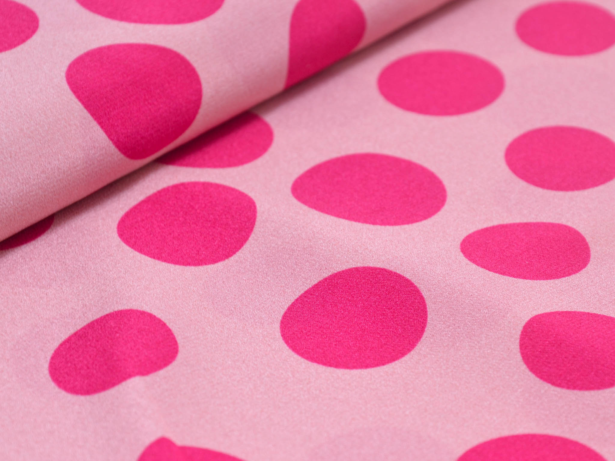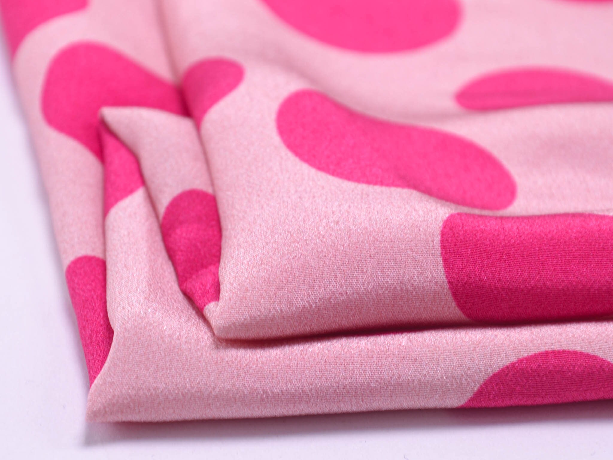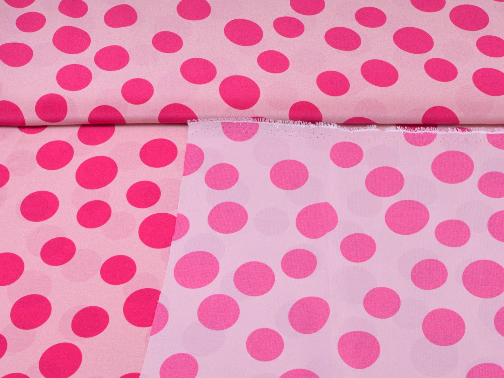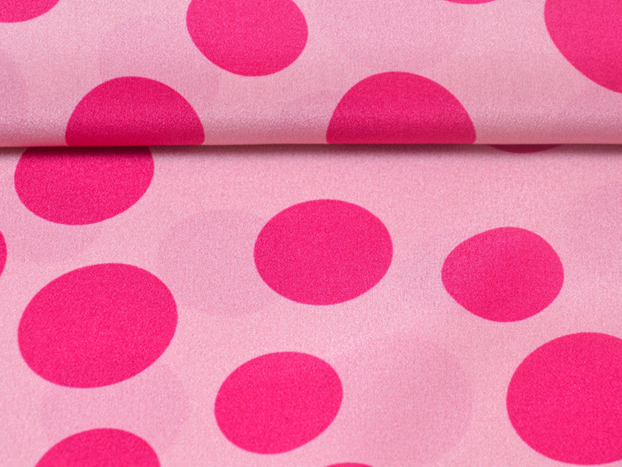 Pure silk in pink with pink dots. This lightweight fabric is perfect for sewing scarves, blouses, dresses, and skirts. Because the fabric is slightly transparent, we recommend lining it.