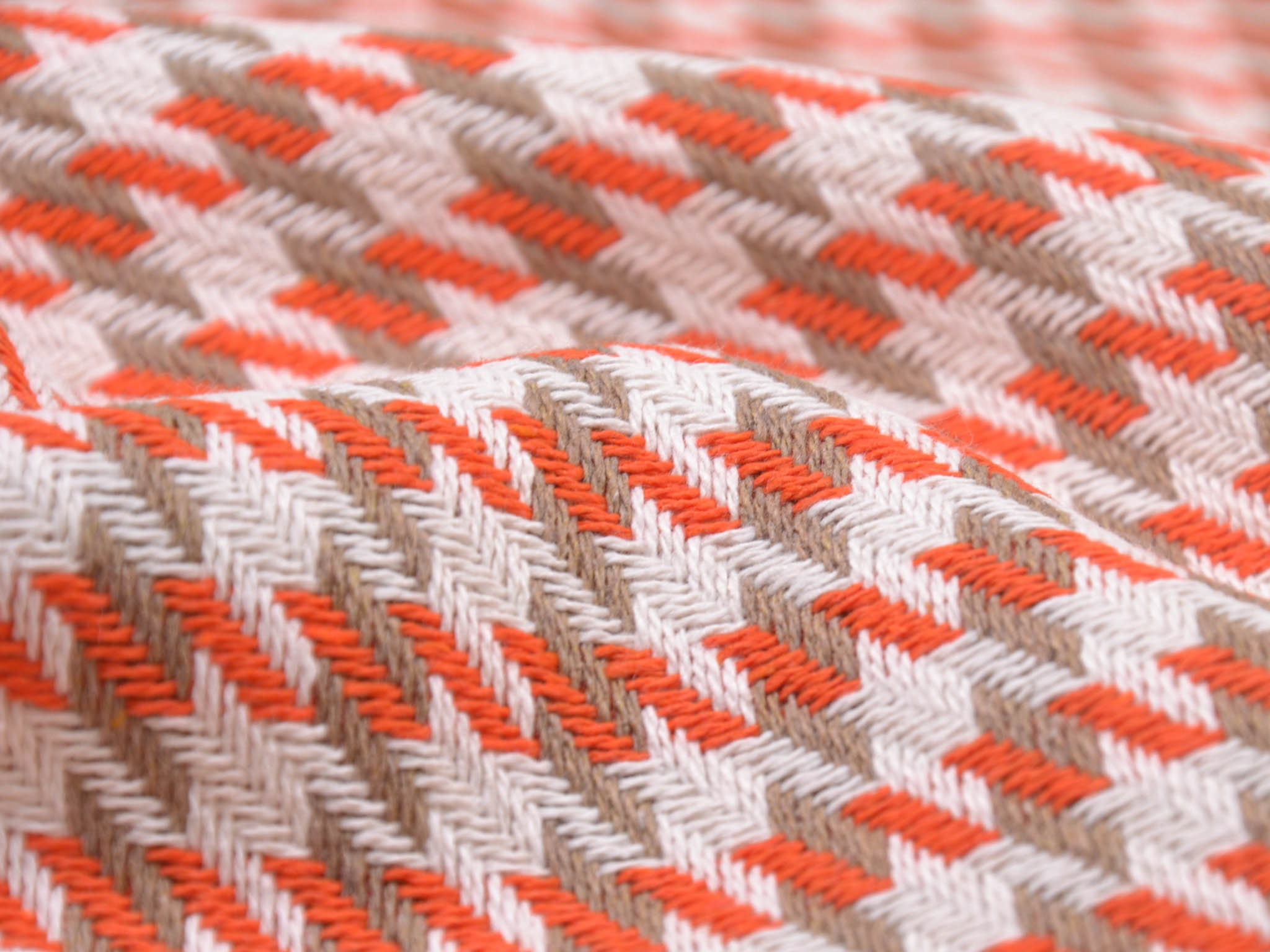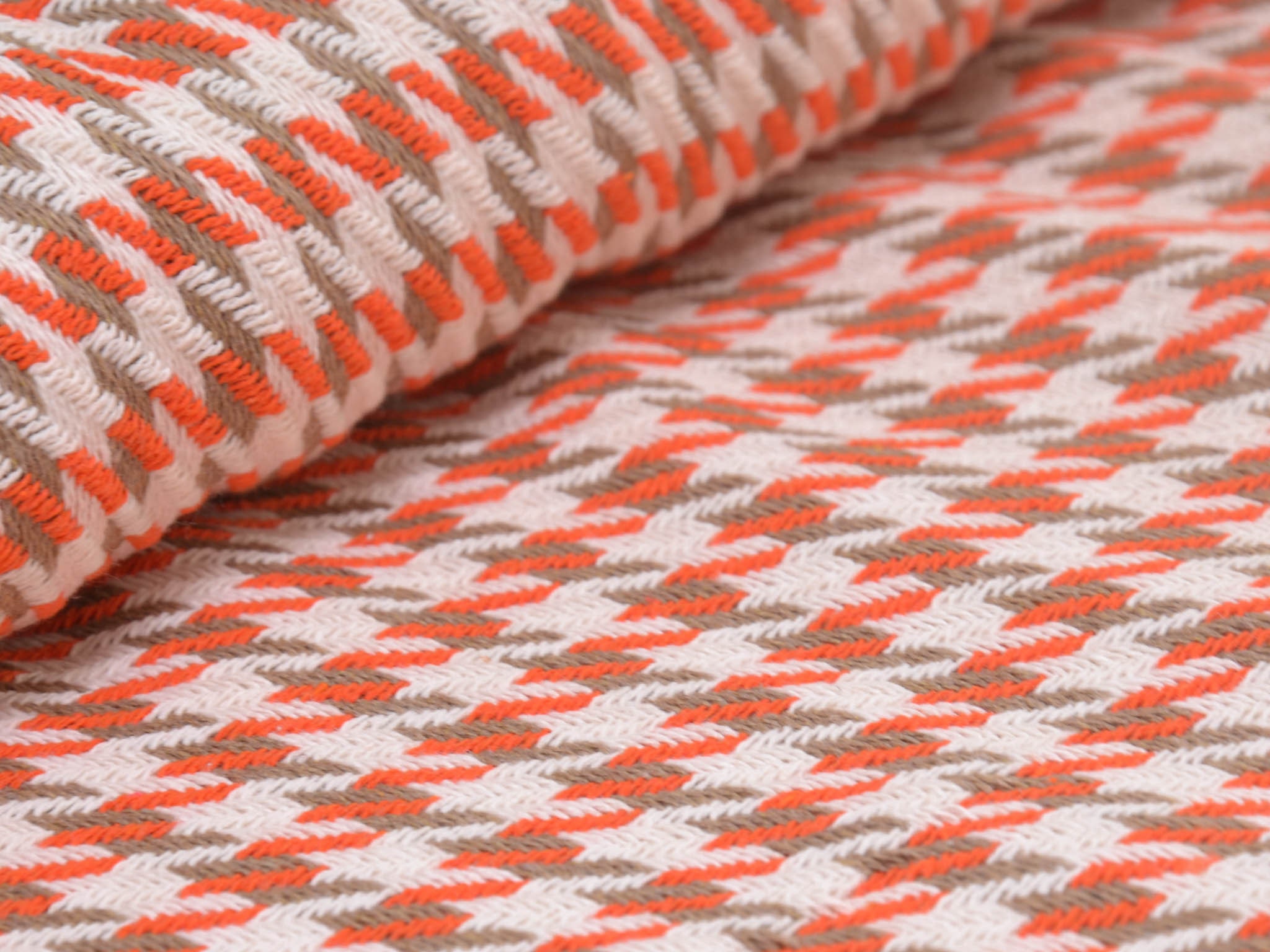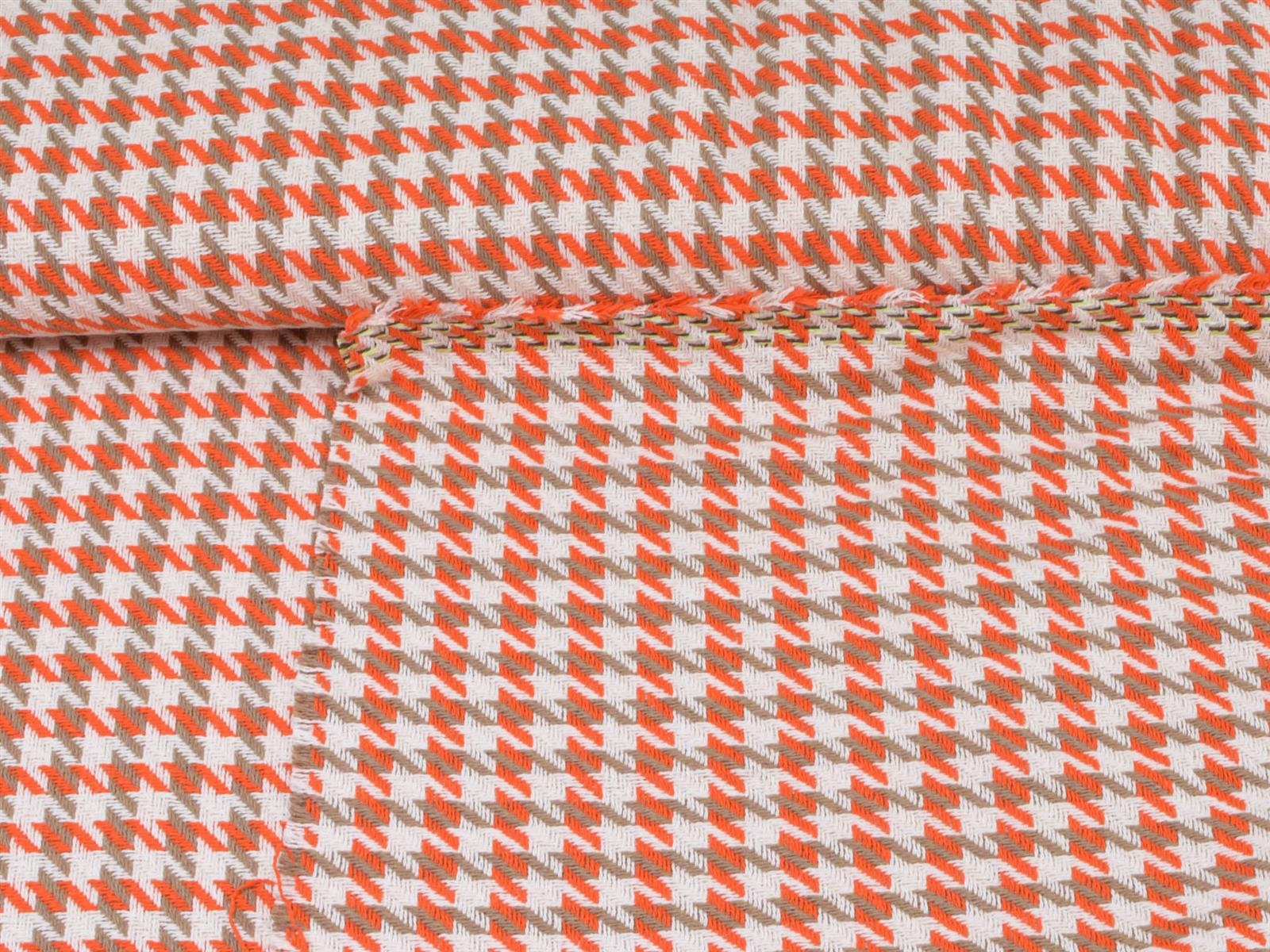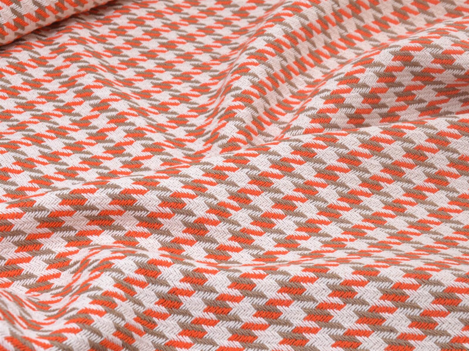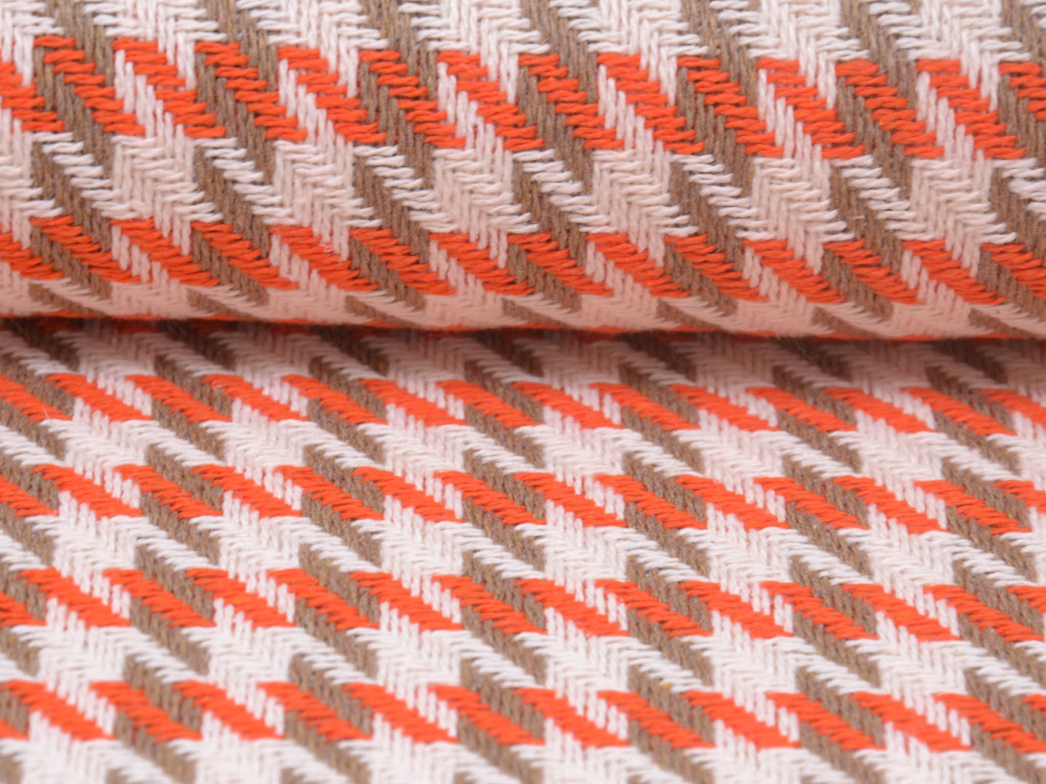 Klassischer Baumwoll Stoff aus Italien. Der Stoff ist orange, beige, eierschale. Er wird verwendet um Kostüme zu Nähen.