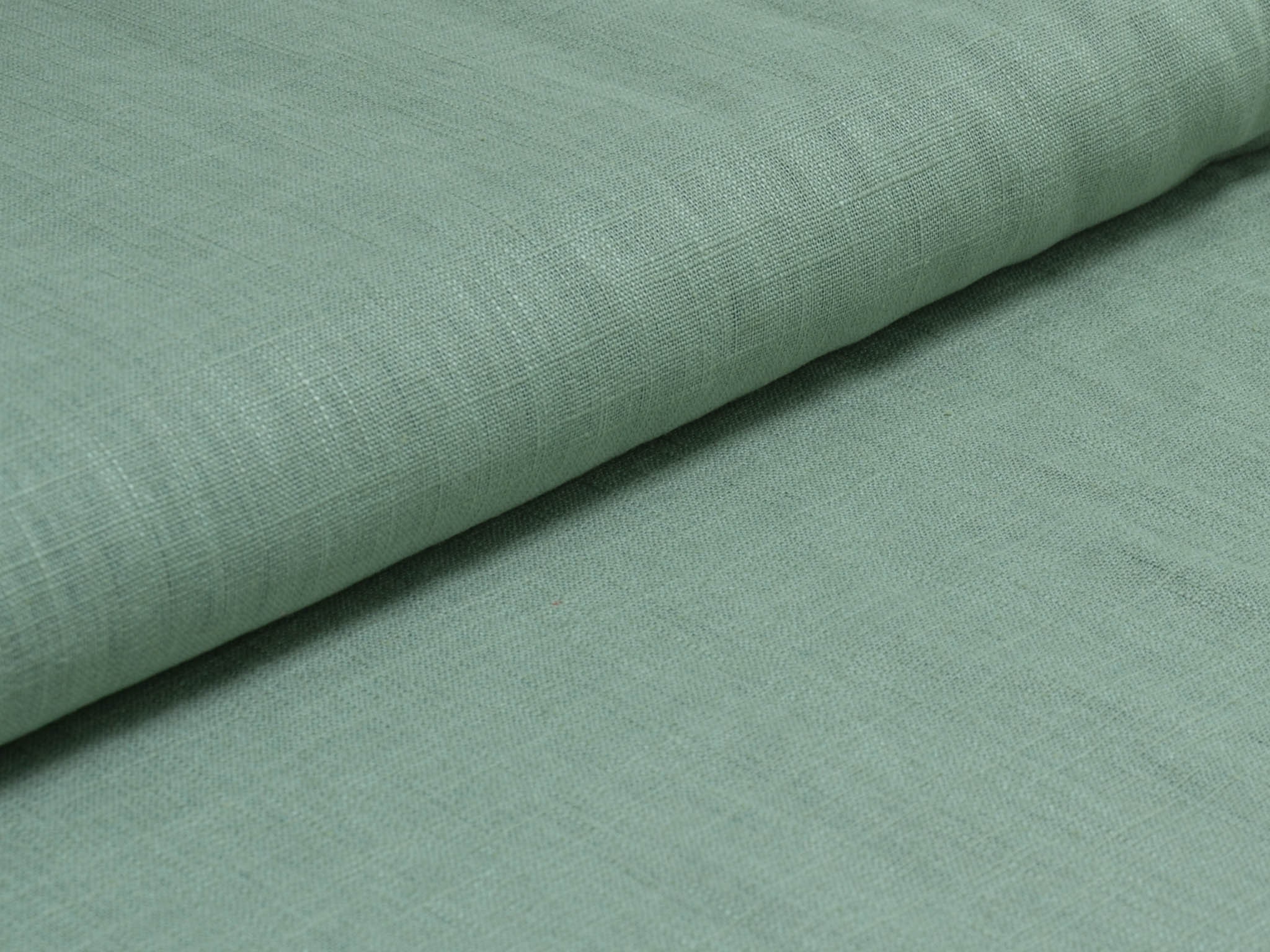 Hochwertiger Leinenstoff in mint von Hilco. Dichter, eher weich fallender Stoff, der bereits vorgewaschen ist. Der enzym-washed Leinenstoff eignet sich zum Nähen von Röcken, Kleidern, Kissen und vielem mehr.