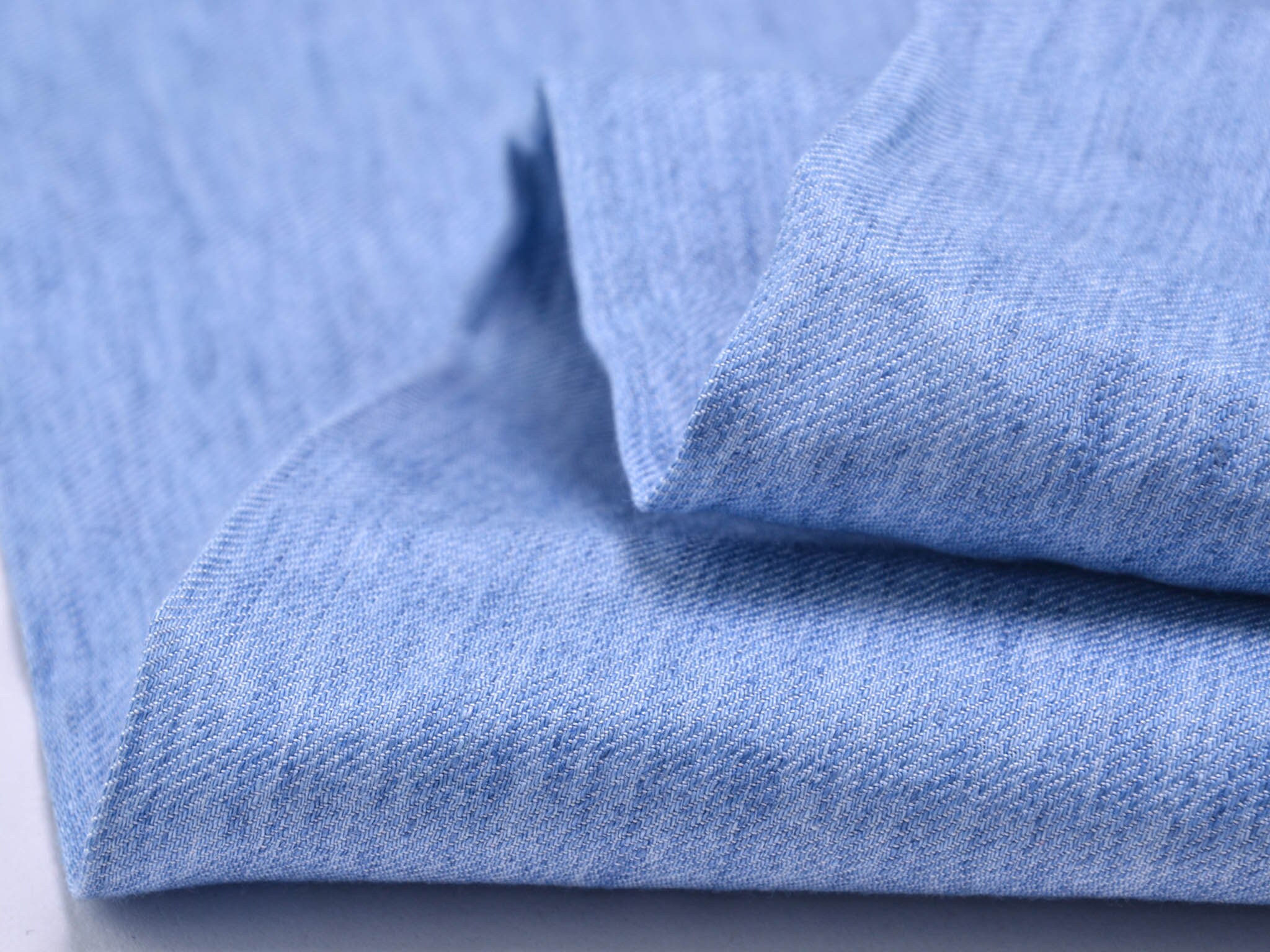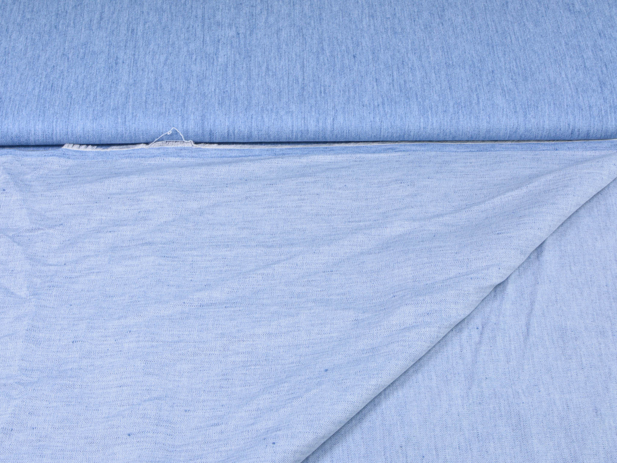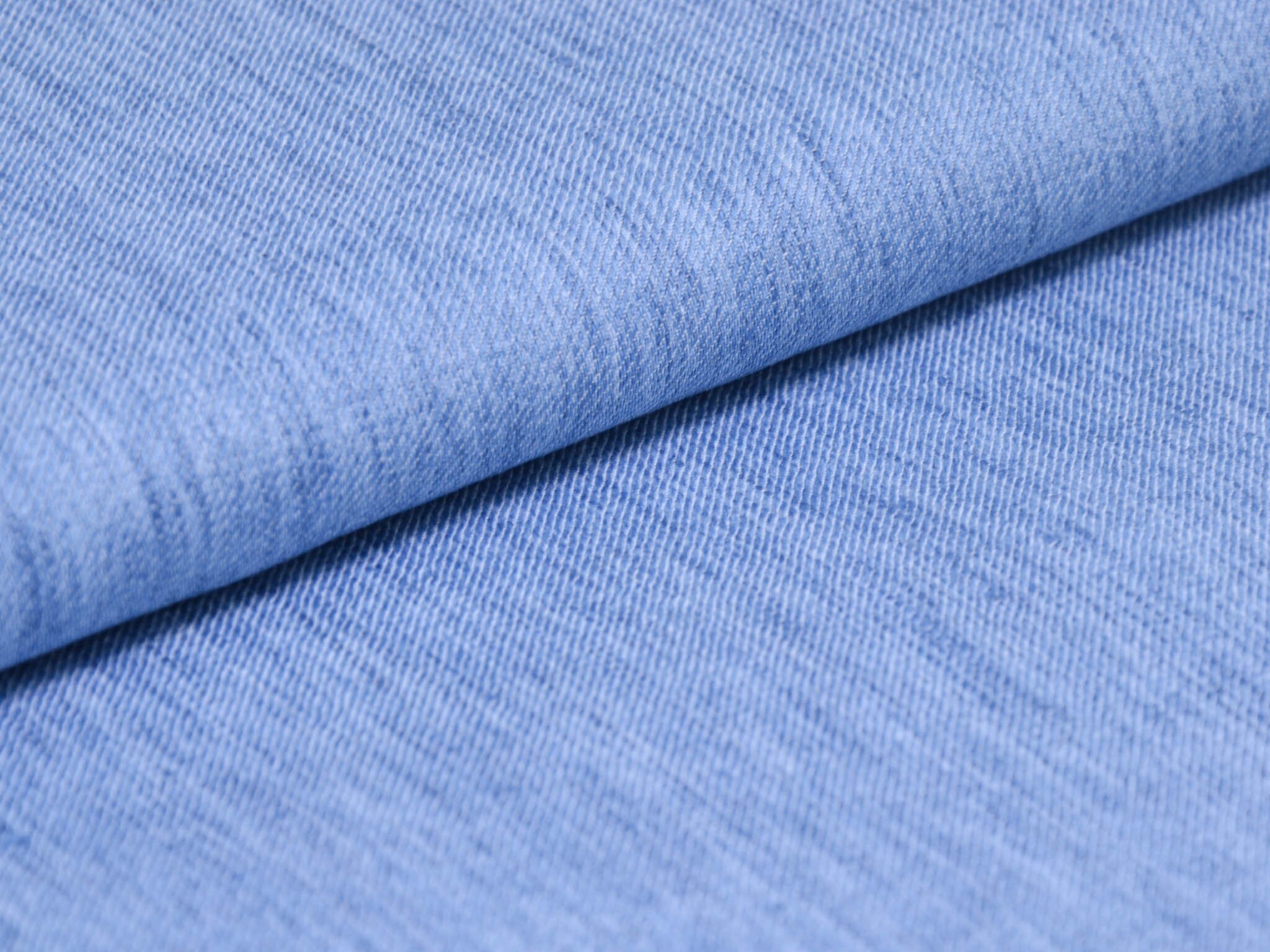 Hochwertiger Leinenstoff in blau meliert. Der Leinenstoff in Jeans-Optik hat einen glatten Griff. Er eignet sich für bequeme Leinenhemden, Röcke, Kleider, Hosen, Jacken und vieles mehr.