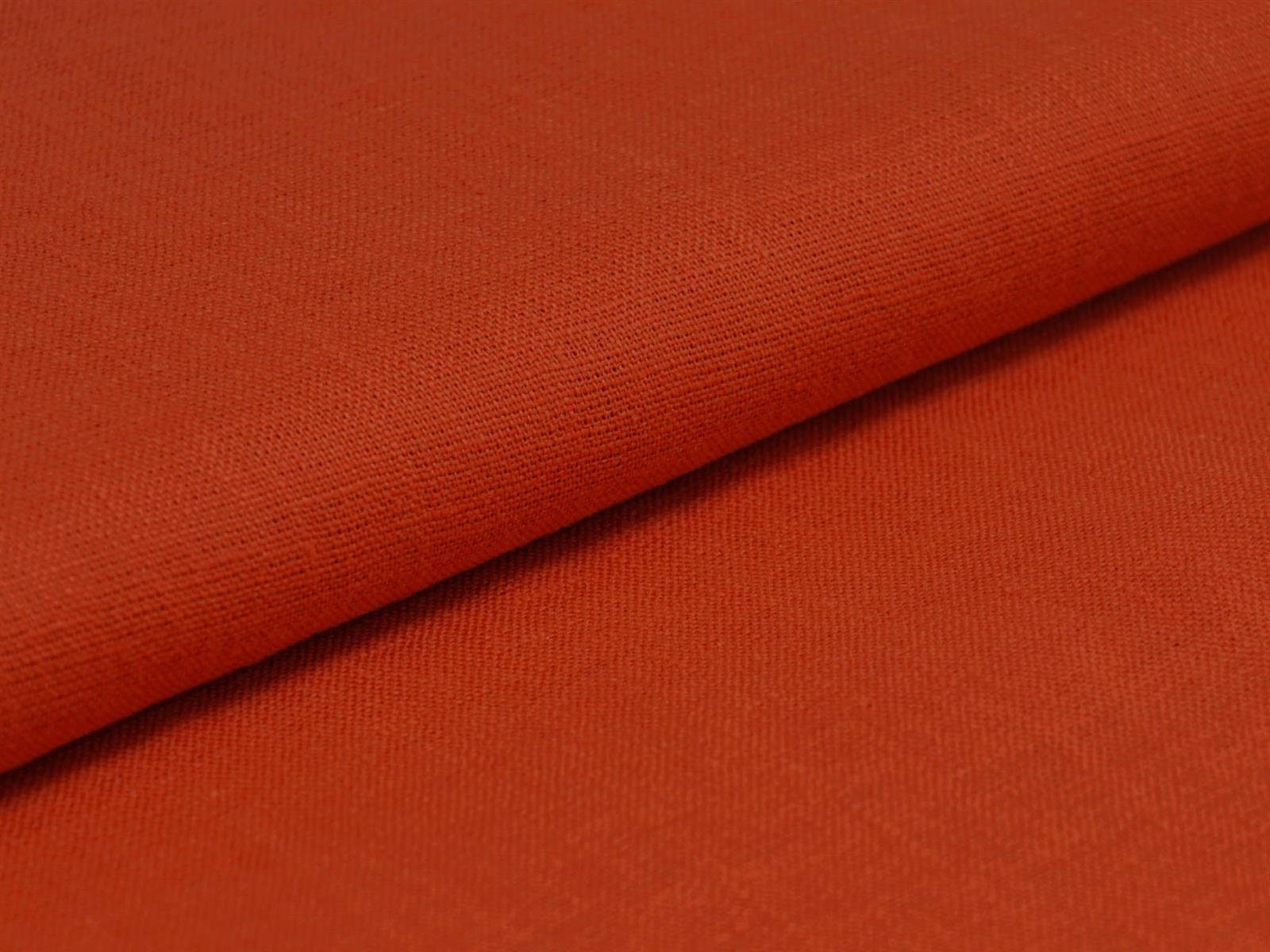 Dünner Leinenstoff in orange. Der Stoff eignet sich zum Nähen von Hosen, Kleidern und vielem mehr.