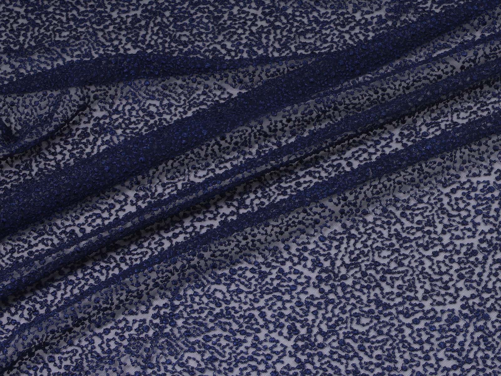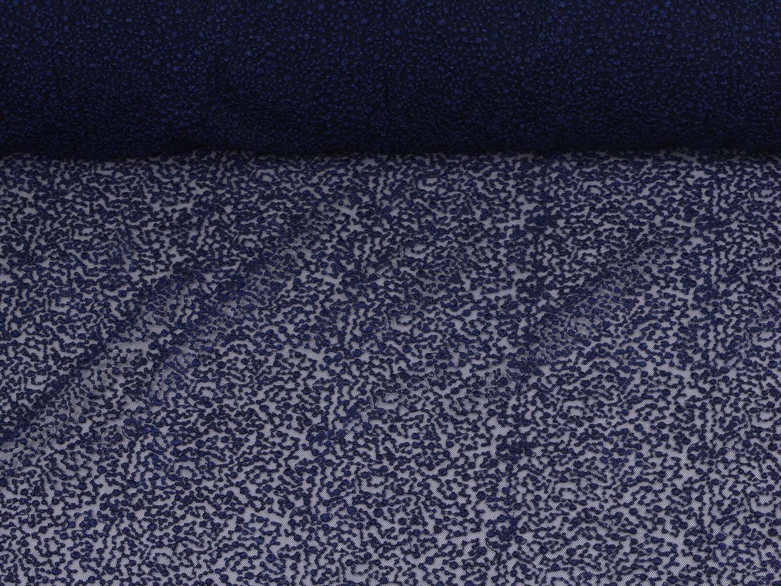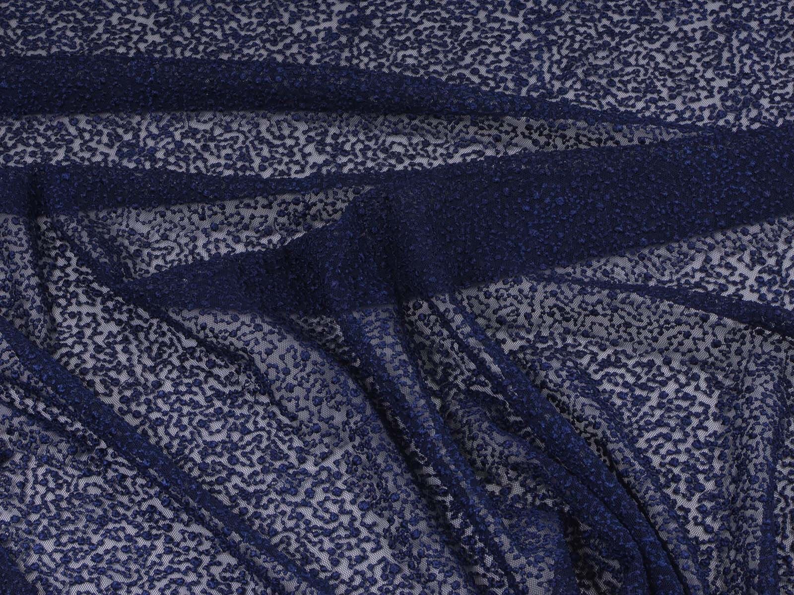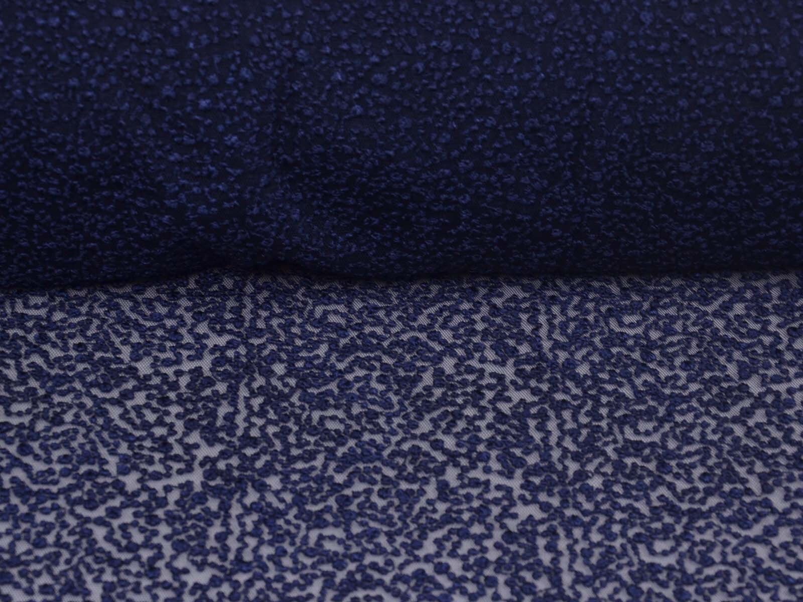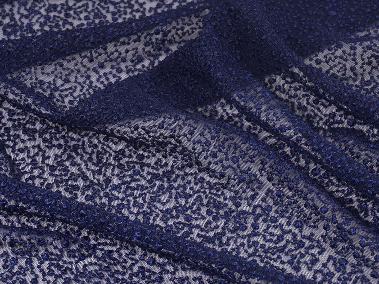 Wunderschöne Spitze für Abendmode, Abschlussbälle, Verlobungen, Partys und vieles mehr. Der Tüll ist mit kleinen Punkten in verschiedenen Größen bestickt. Die Farbe ist dunkelblau. Die Spitze hat rechts und links eine kleine Bogenkante.