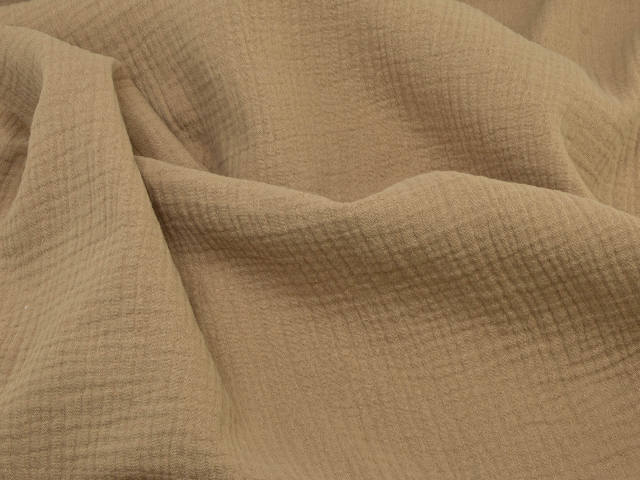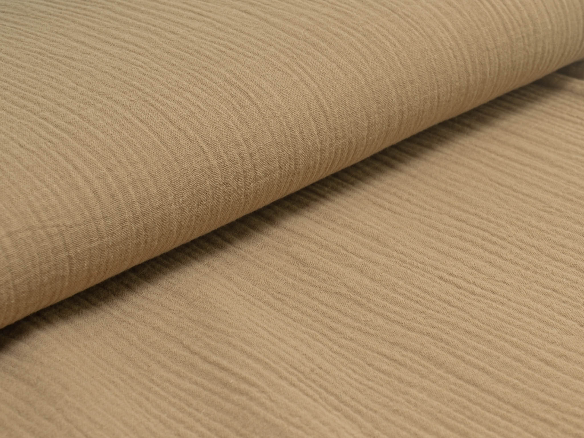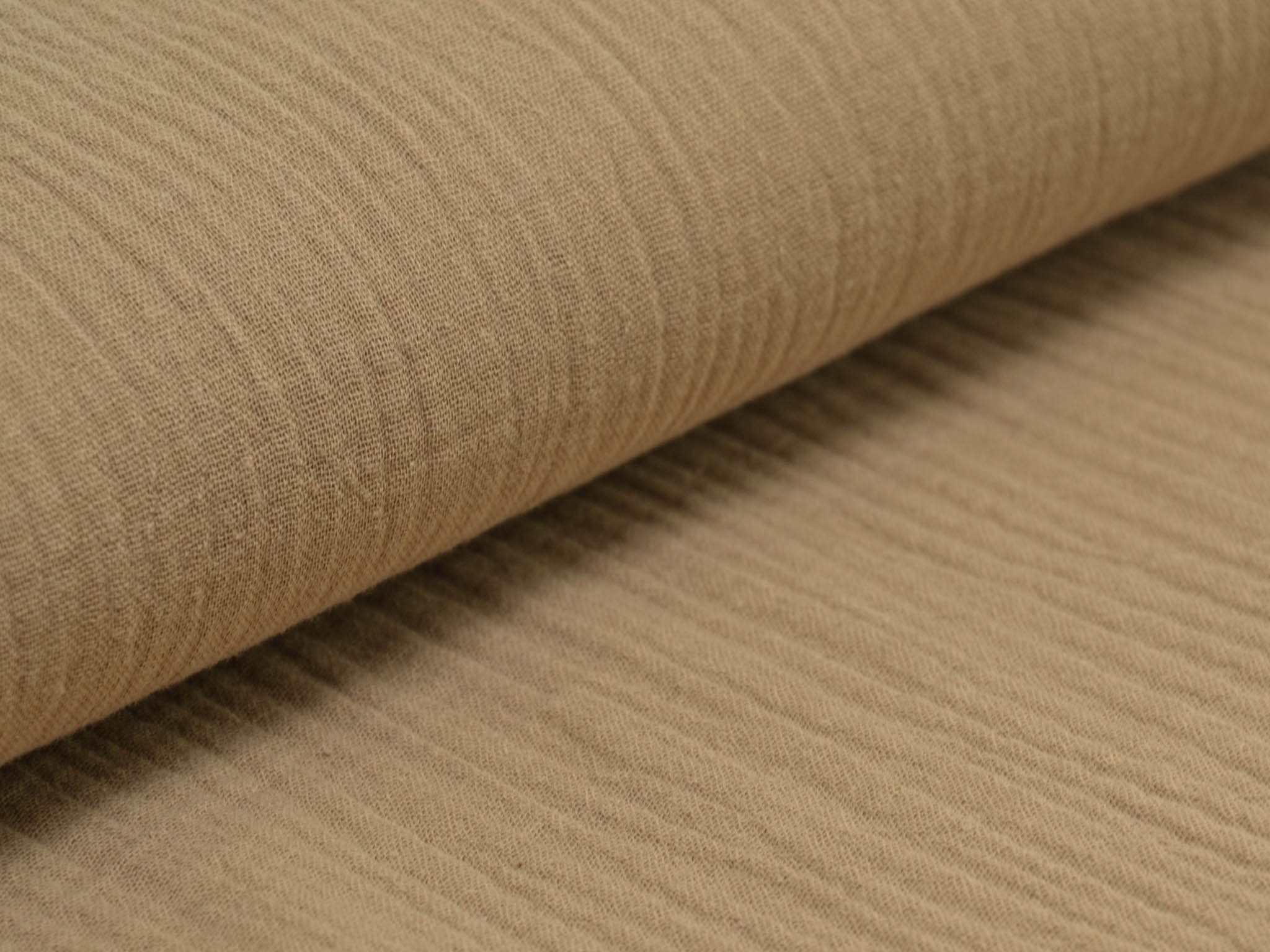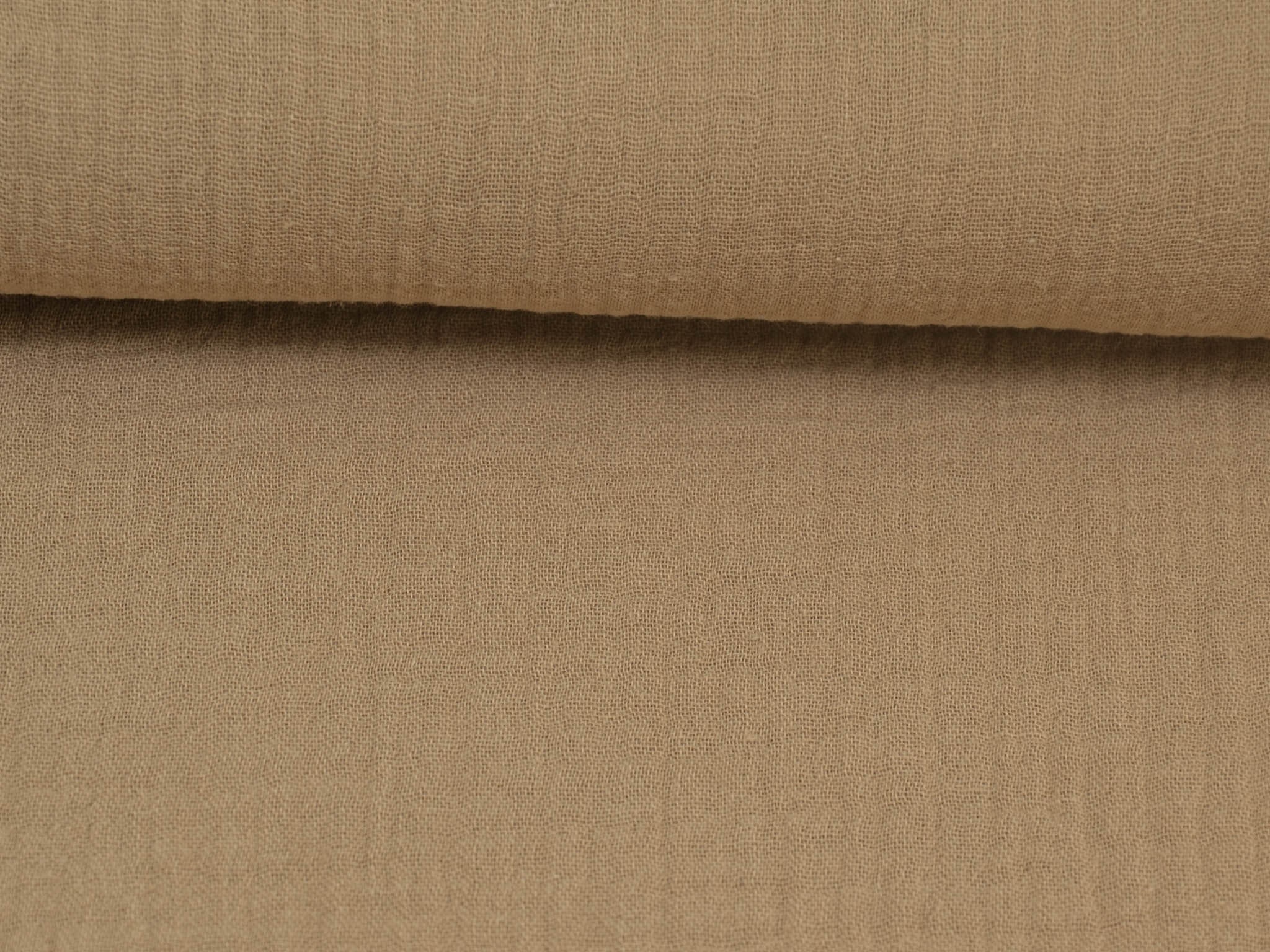 Hochwertiger Musselin in uni beige/ camel. Der hautfreundliche, weiche Stoff eignet sich wunderbar zum Nähen von Blusen, Röcken, Kleidern, Bettwäsche, Pumphosen, Tüchern und so vielem mehr.