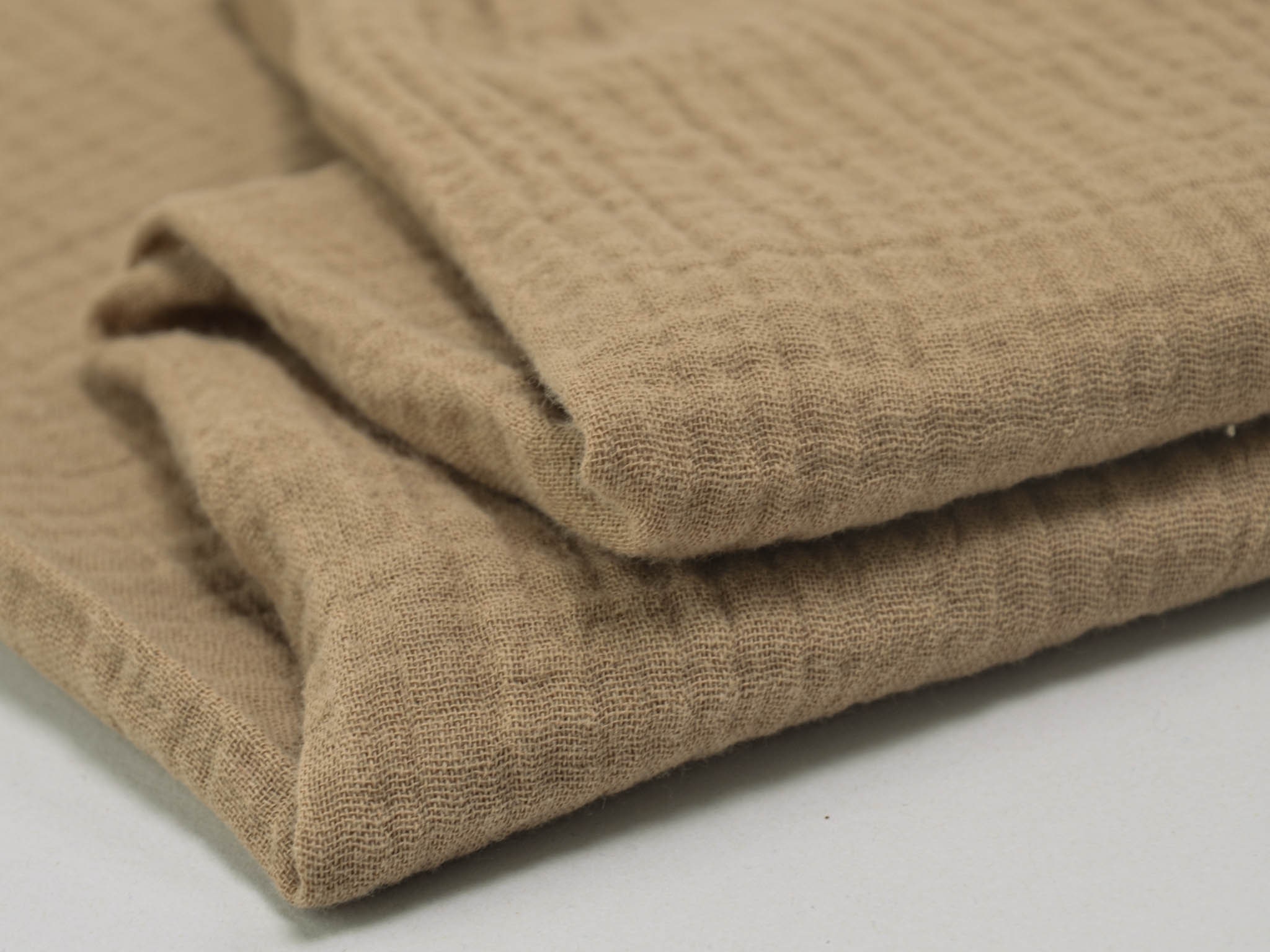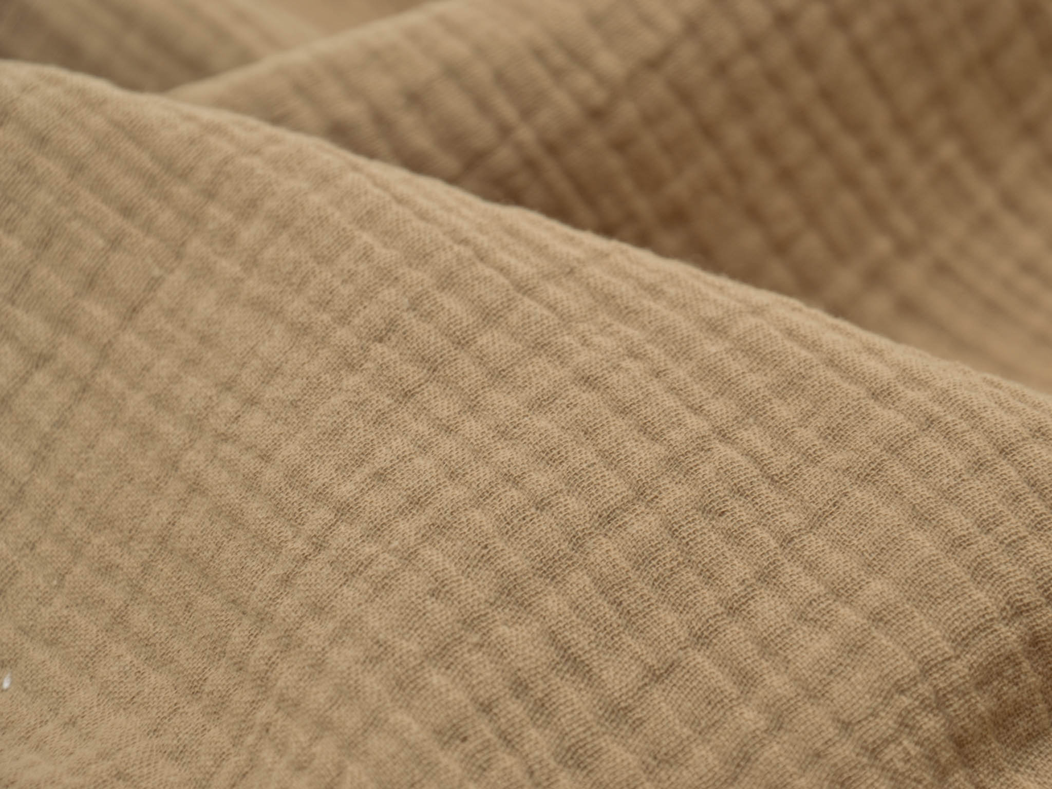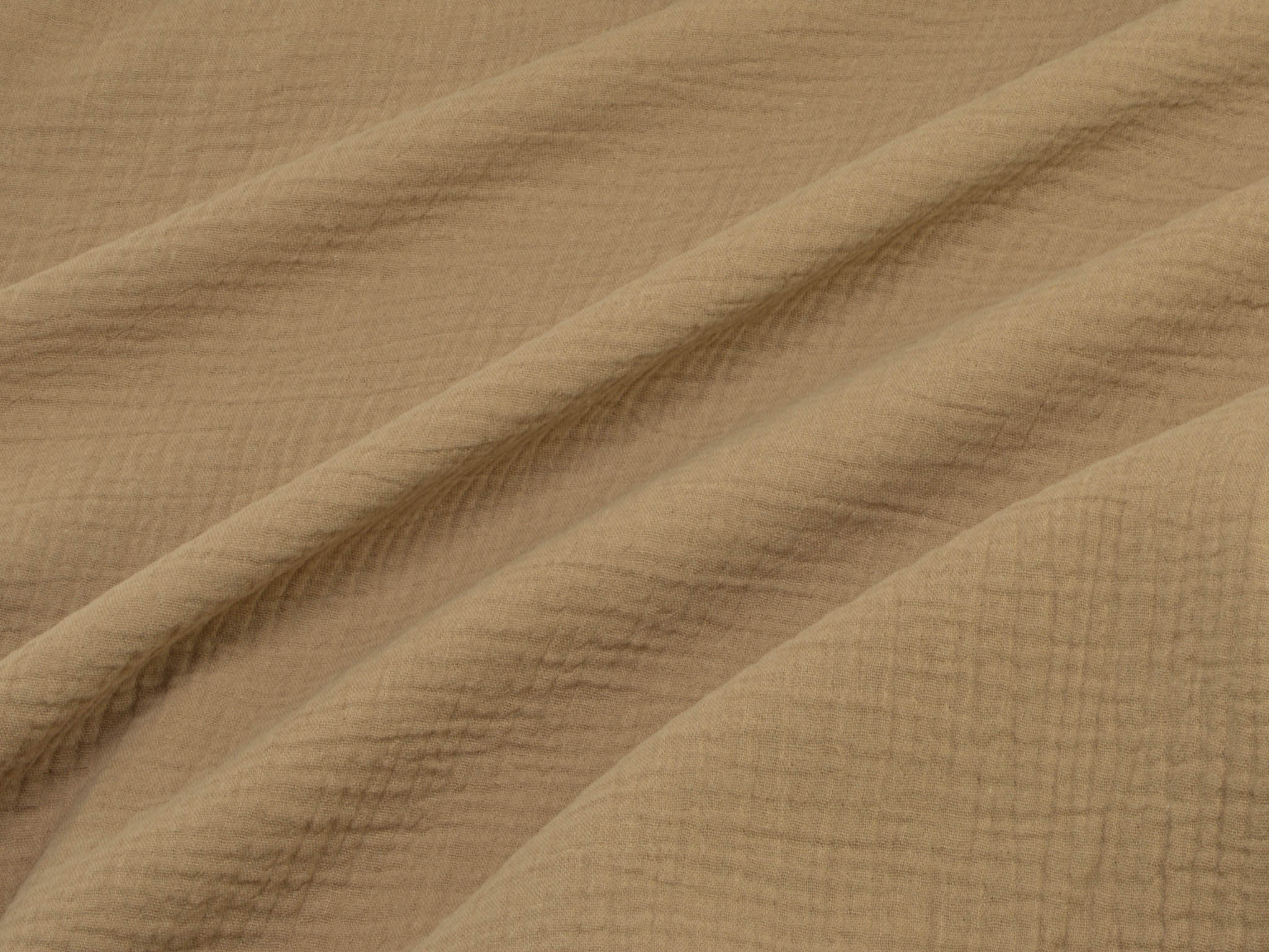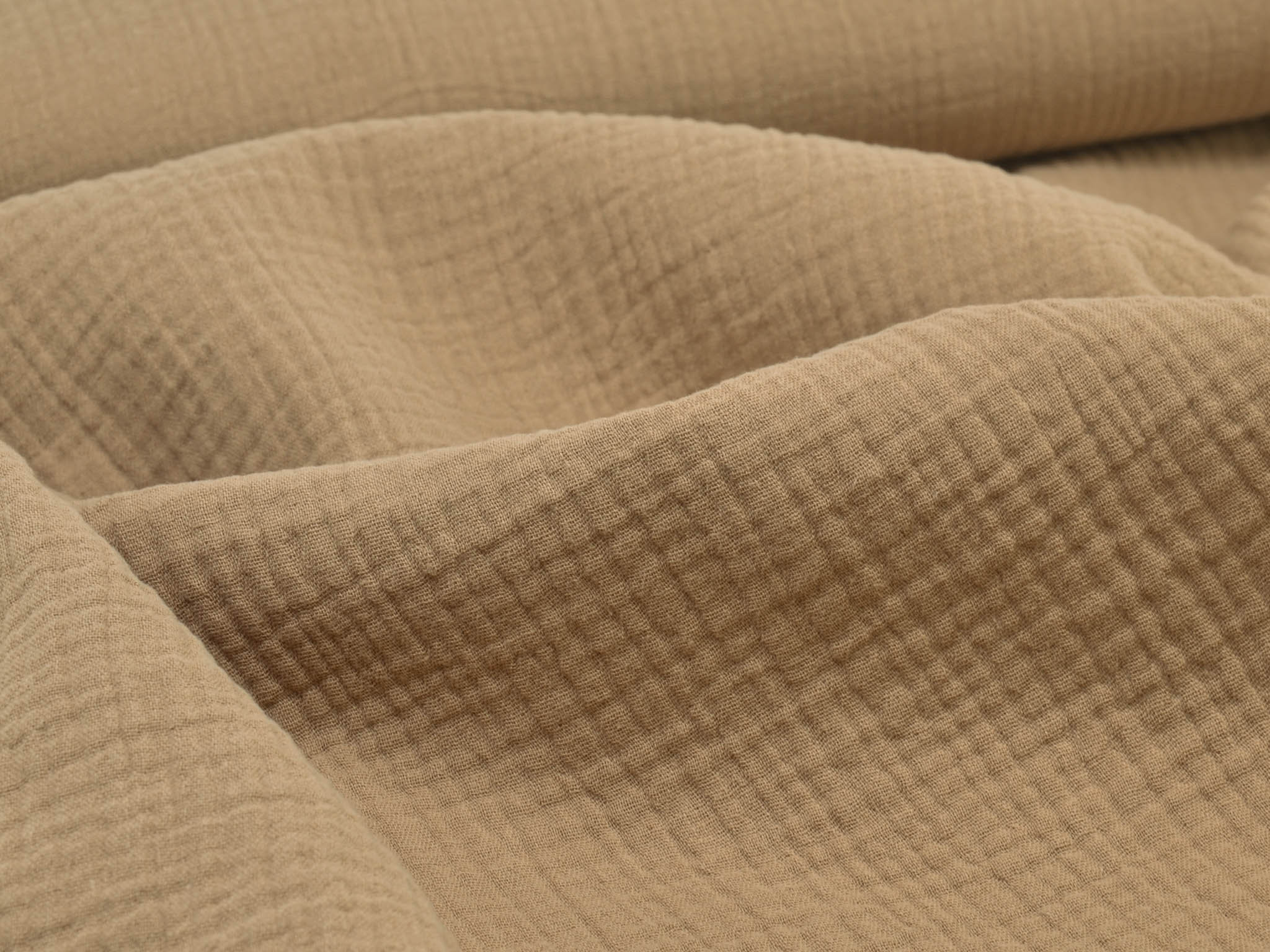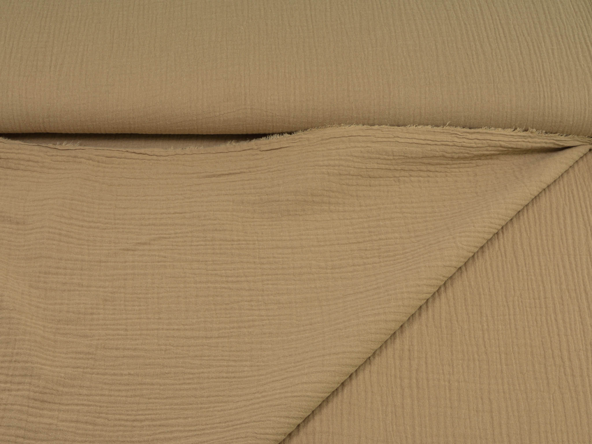 Hochwertiger Musselin in uni beige/ camel. Der hautfreundliche, weiche Stoff eignet sich wunderbar zum Nähen von Blusen, Röcken, Kleidern, Bettwäsche, Pumphosen, Tüchern und so vielem mehr.