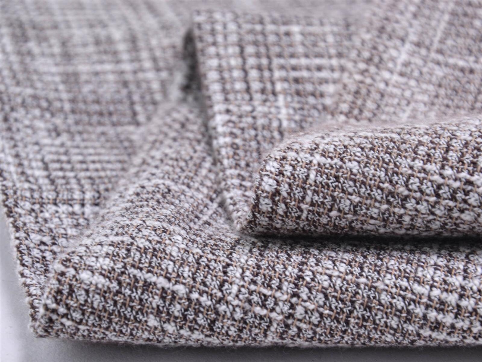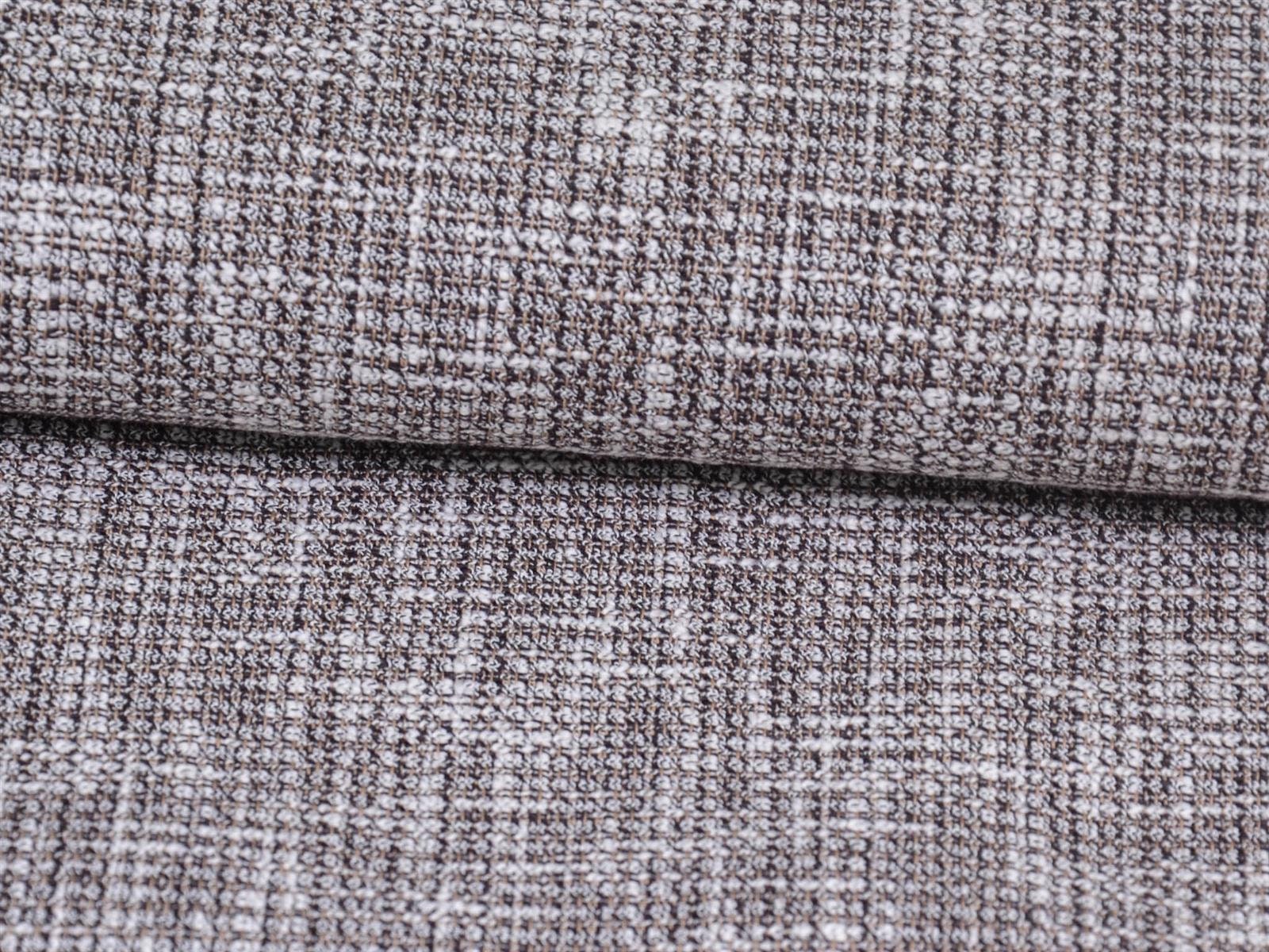 Leinenstoff mit Baumwolle und Polyamid. Der melierte Stoff hat einen körnigen Griff und ist grob gewebt. Er wird zum Nähen von Jacken, Kleidern, Röcken und vielem mehr verwendet.