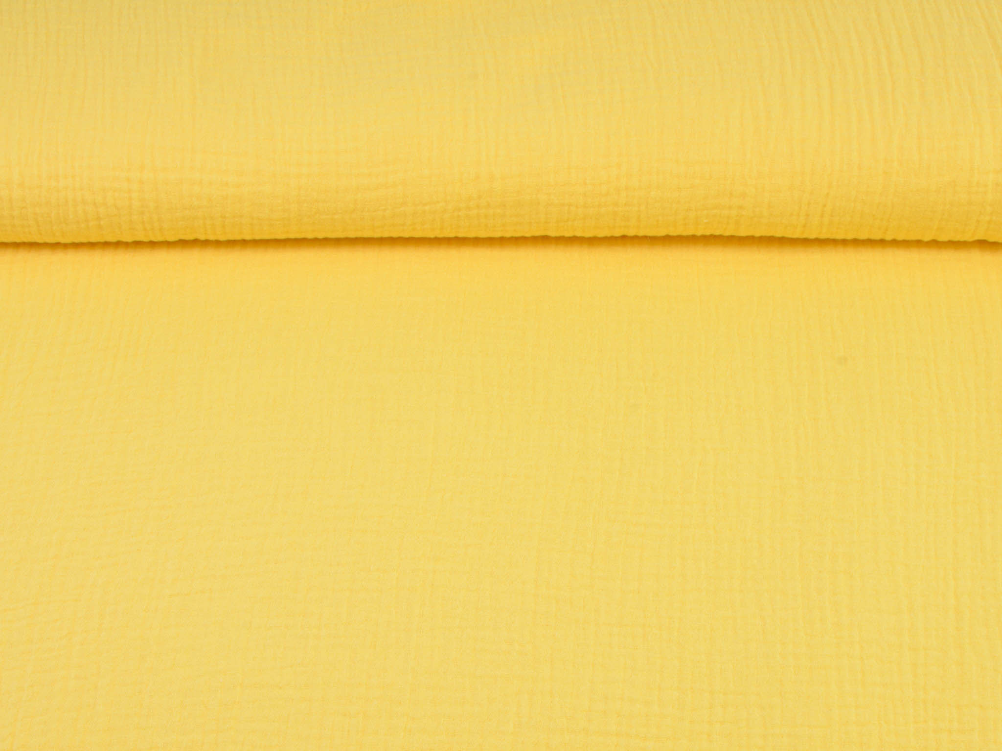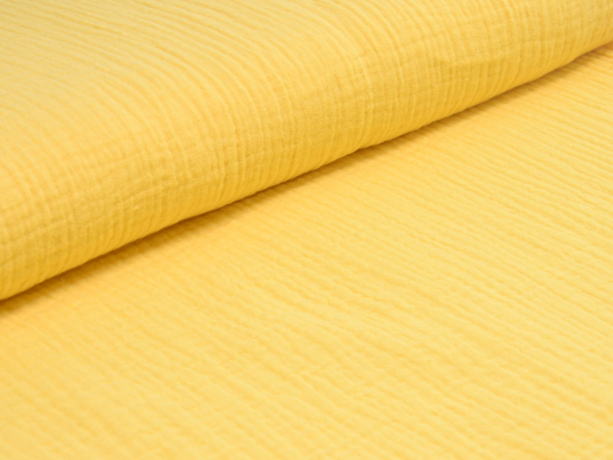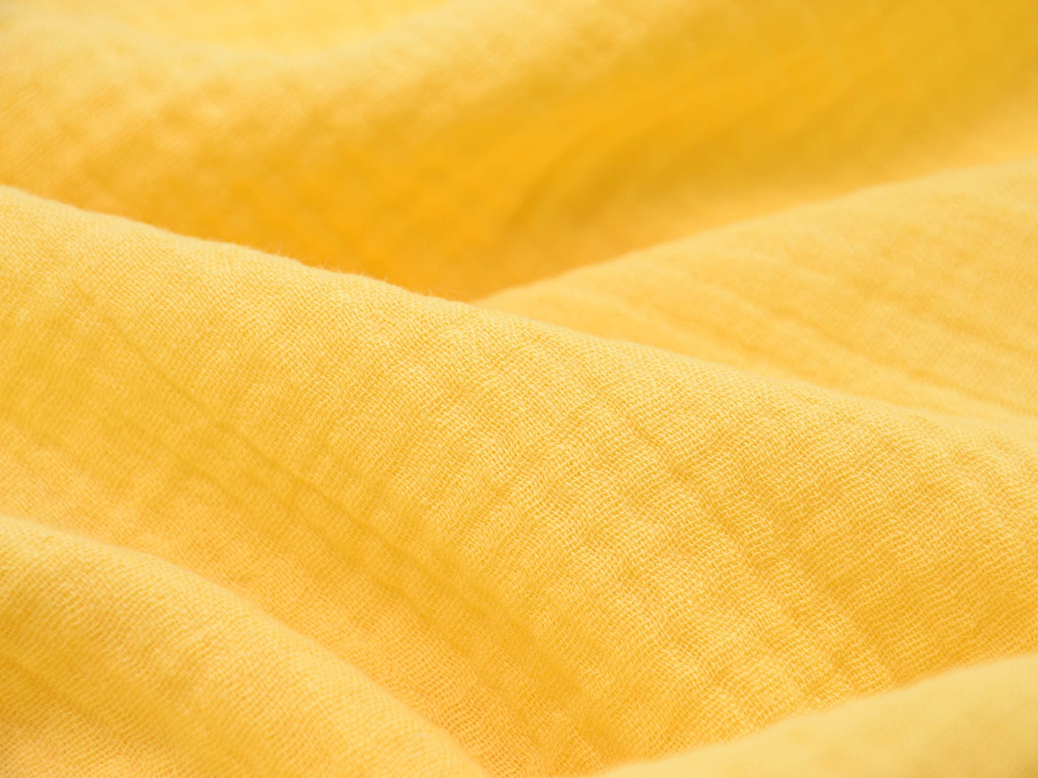 Hochwertiger Musselinstoff aus dem Hause Hilco. Der Baumwollstoff ist gelb, Zitronengelb. Er eignet sich wunderbar zum Nähen von Blusen, Kleidern, Röcken, Bettdecken und so vielem mehr.
