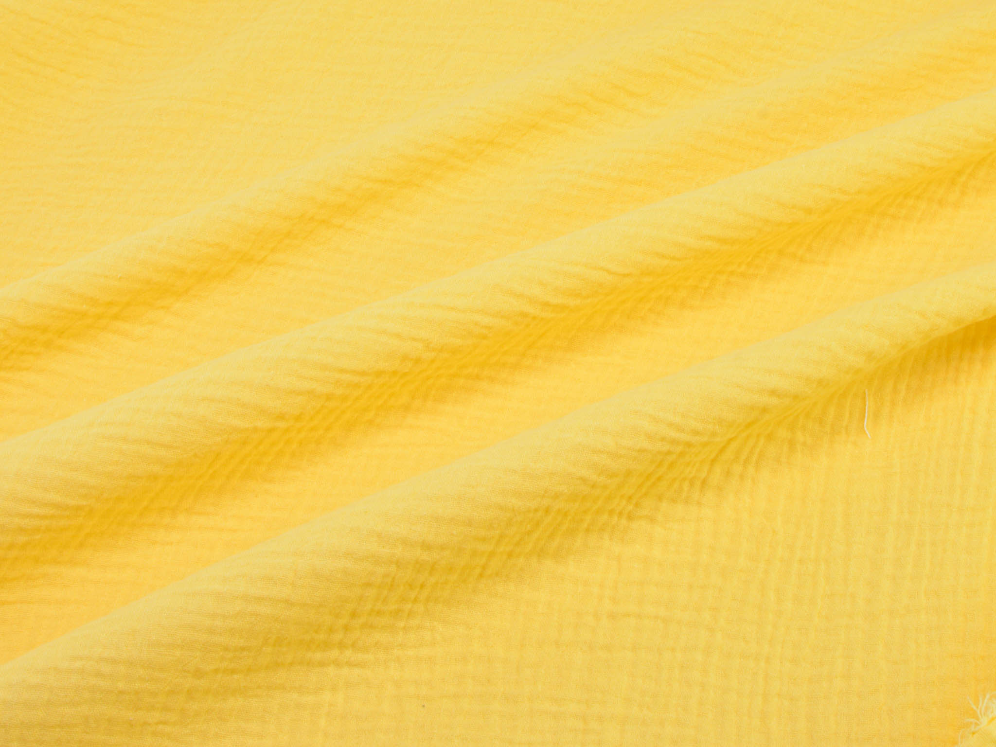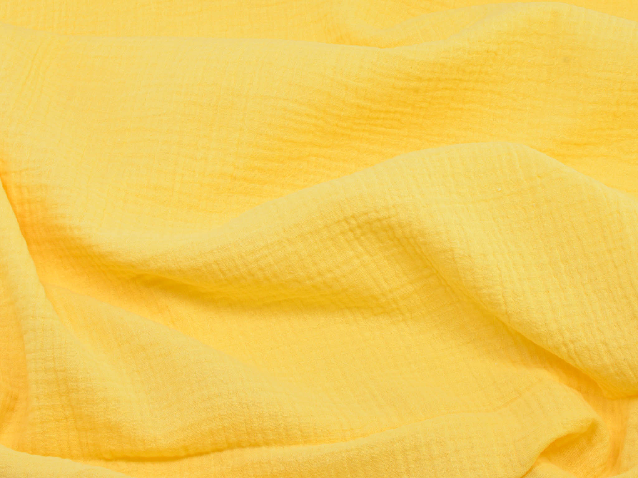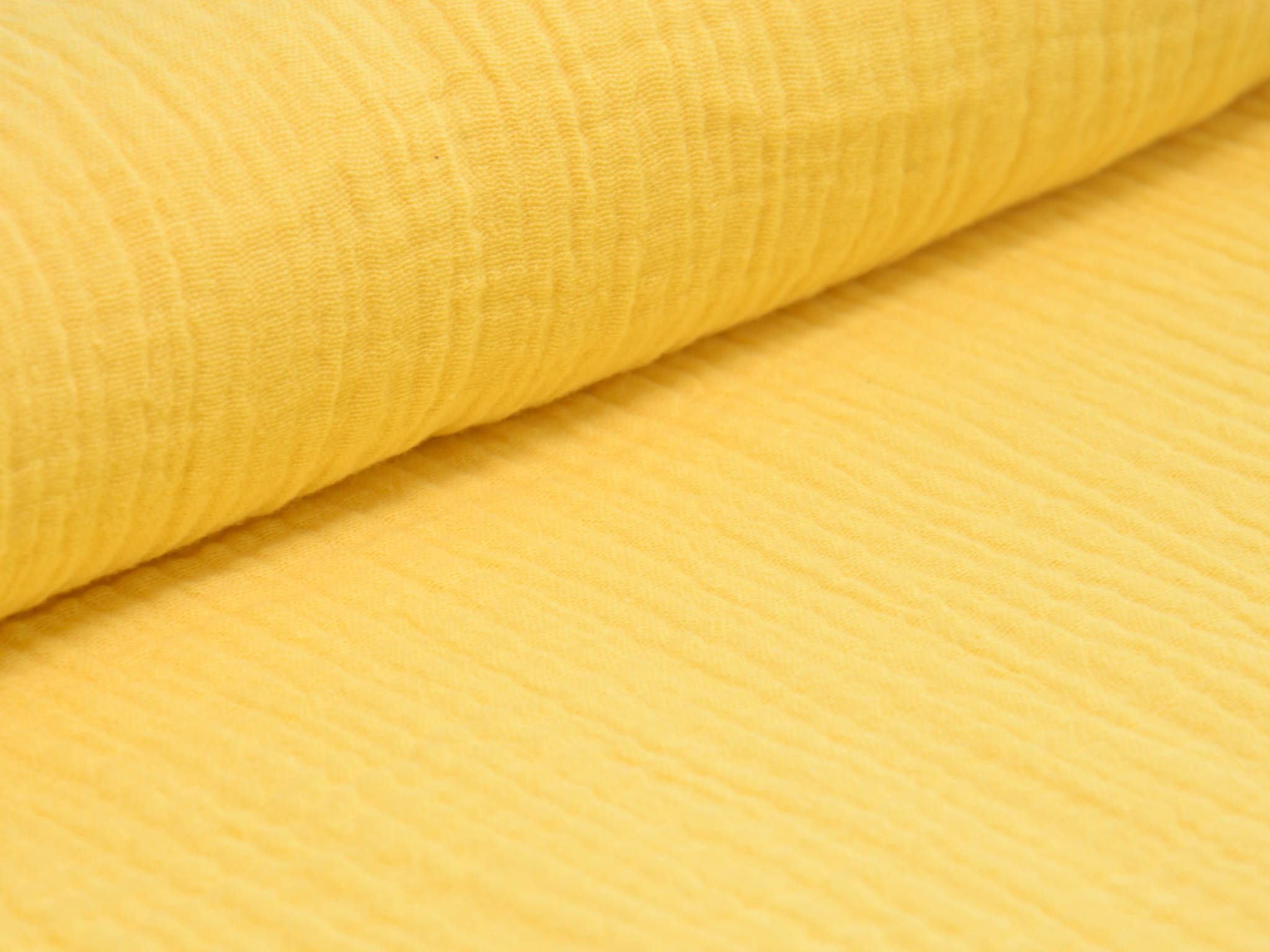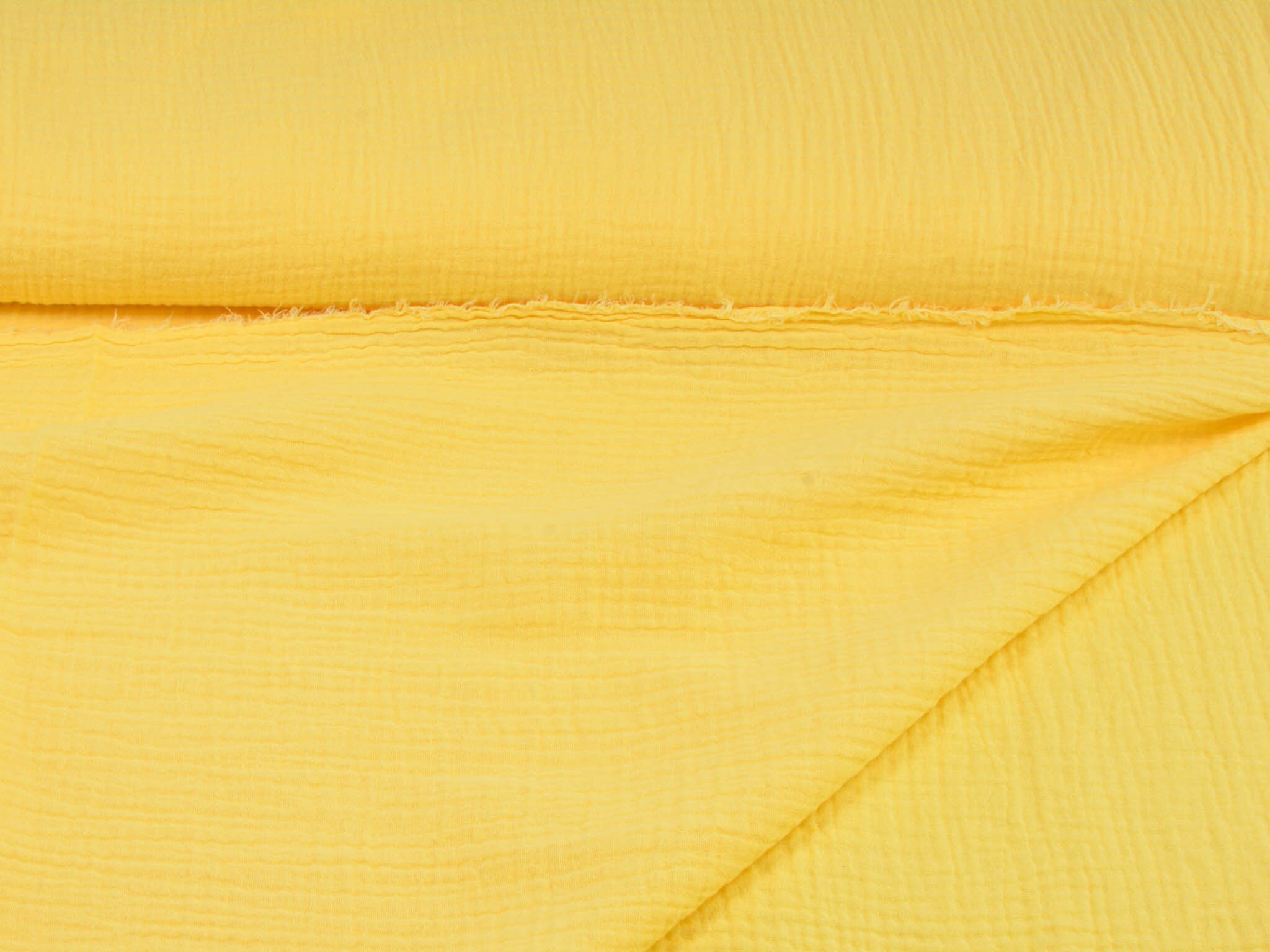 Hochwertiger Musselinstoff aus dem Hause Hilco. Der Baumwollstoff ist gelb, Zitronengelb. Er eignet sich wunderbar zum Nähen von Blusen, Kleidern, Röcken, Bettdecken und so vielem mehr.