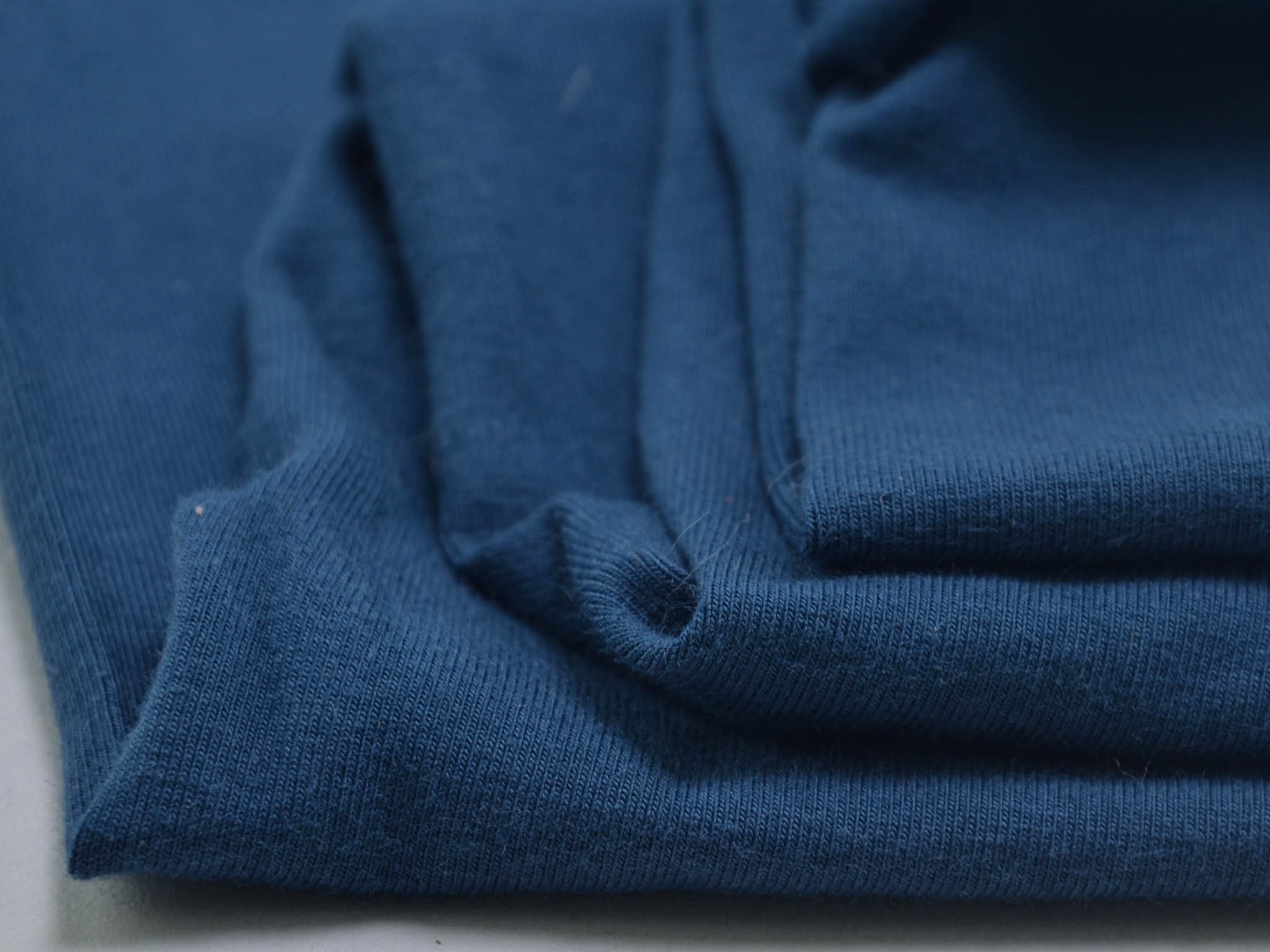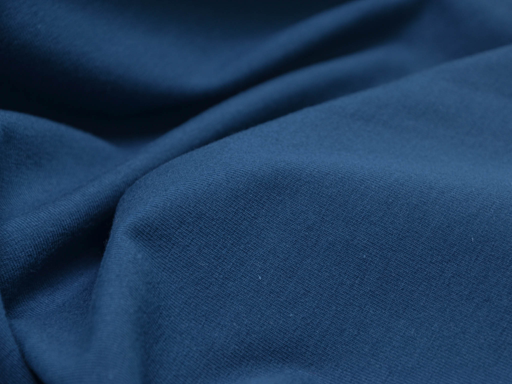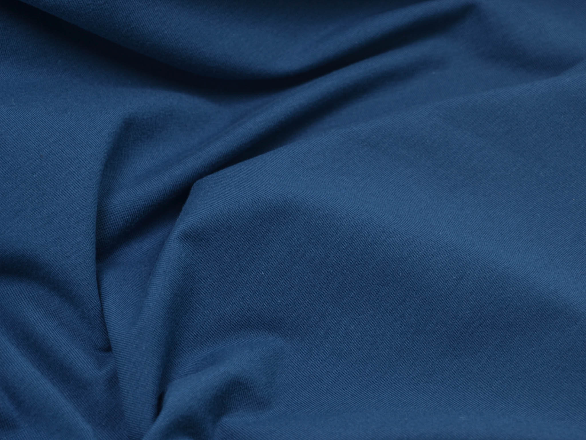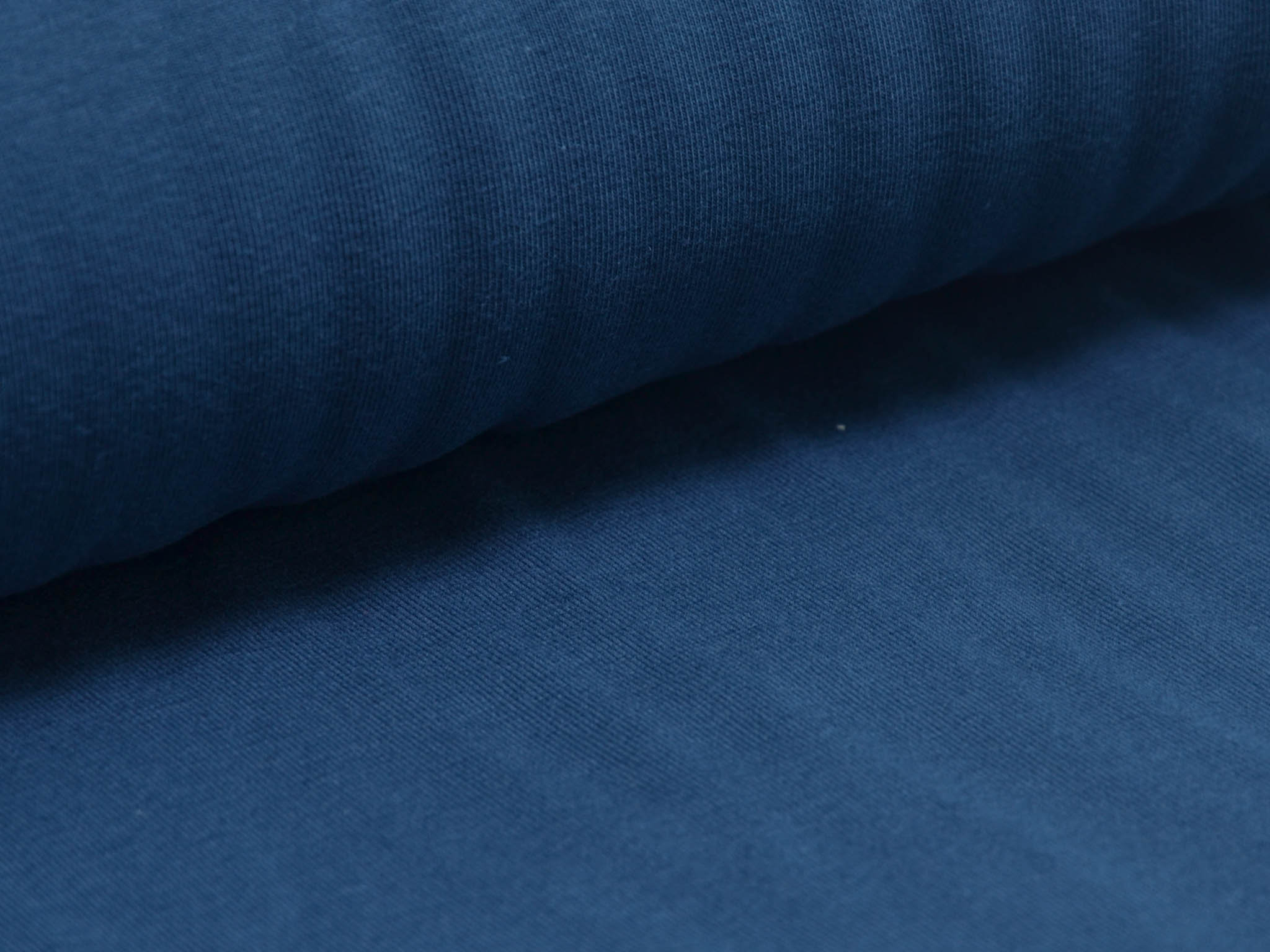 Baumwolljersey in uni blau. Der Basicjersey ist perfekt zum Nähen von T-Shirts, Pumphosen und vielem mehr.