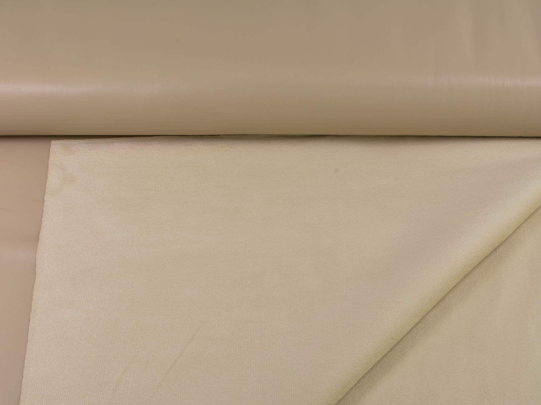 Kunstleder in beige von Fibre Mood. Der Stoff hat einen leichten Stretch. Der Stoff eignet sich wunderbar für Hosen, Kleider, Röcke und vieles mehr.
