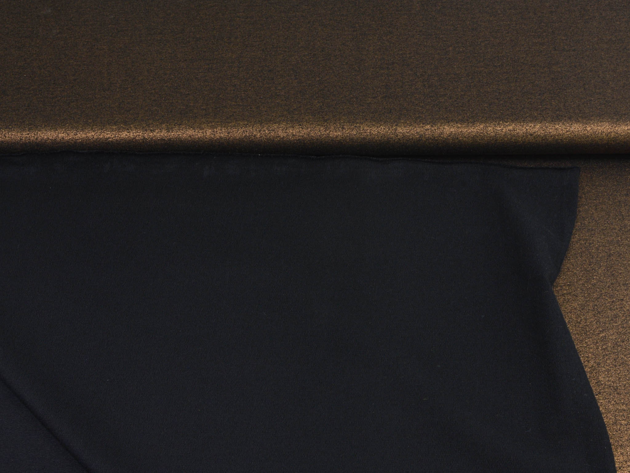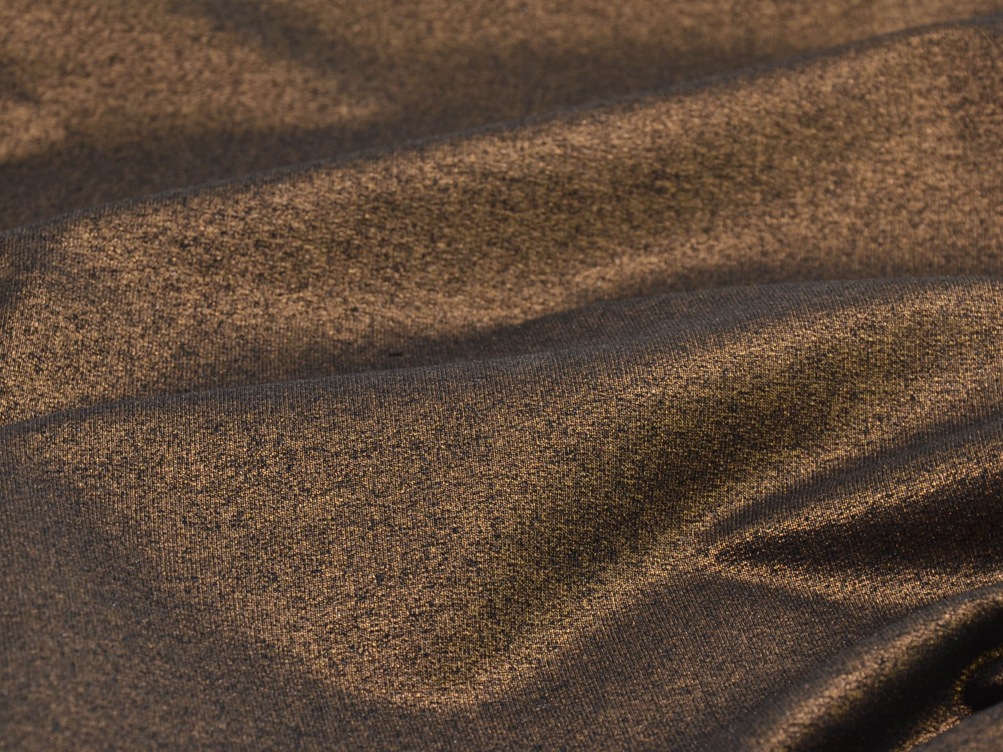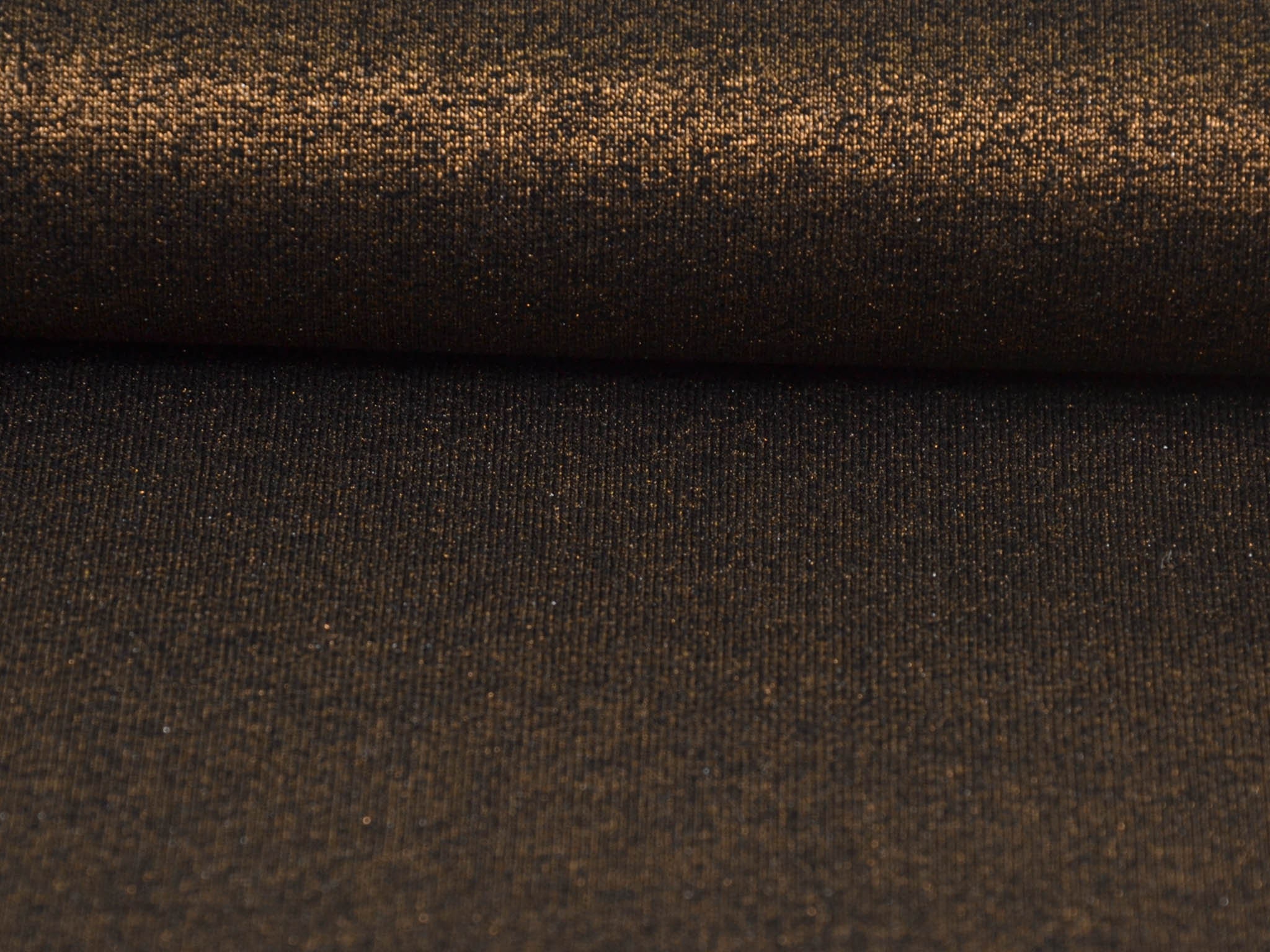 Thin French terry made in Italy. The sweat fabric has a gold glitter finish. The reverse side features loops and is black. The fabric is perfect for sewing chic sweaters and lightweight jackets.