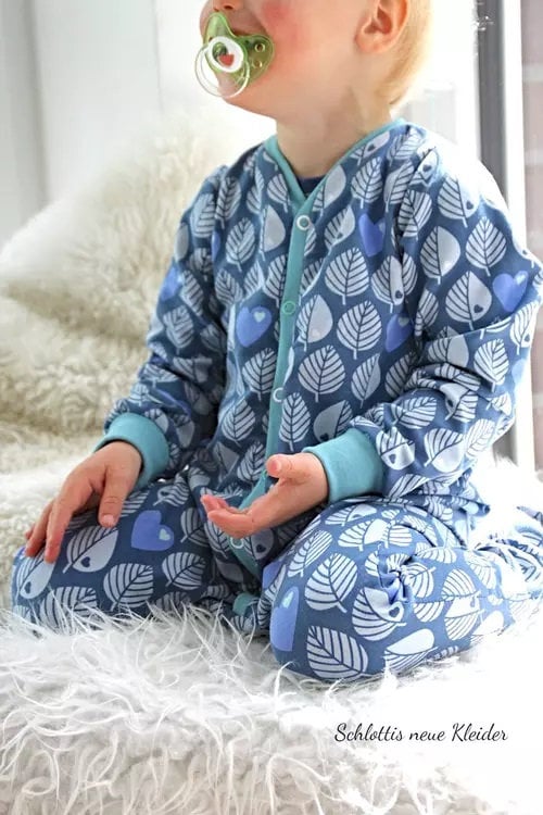 A romper for babies and toddlers, with or without sleeves. You can sew the romper with either a zipper or a button placket. The pattern is perfect for jersey or summer sweat fabric.