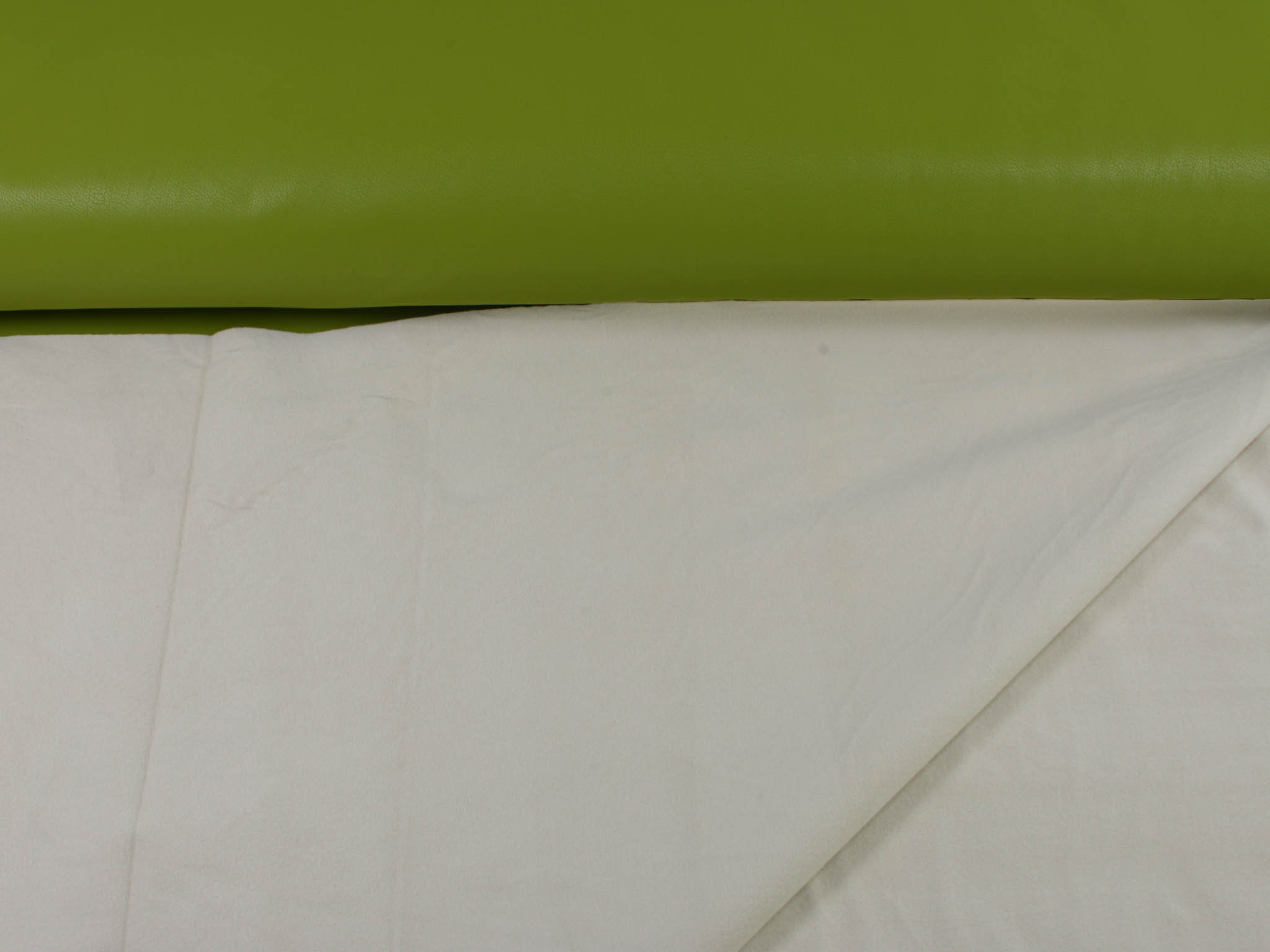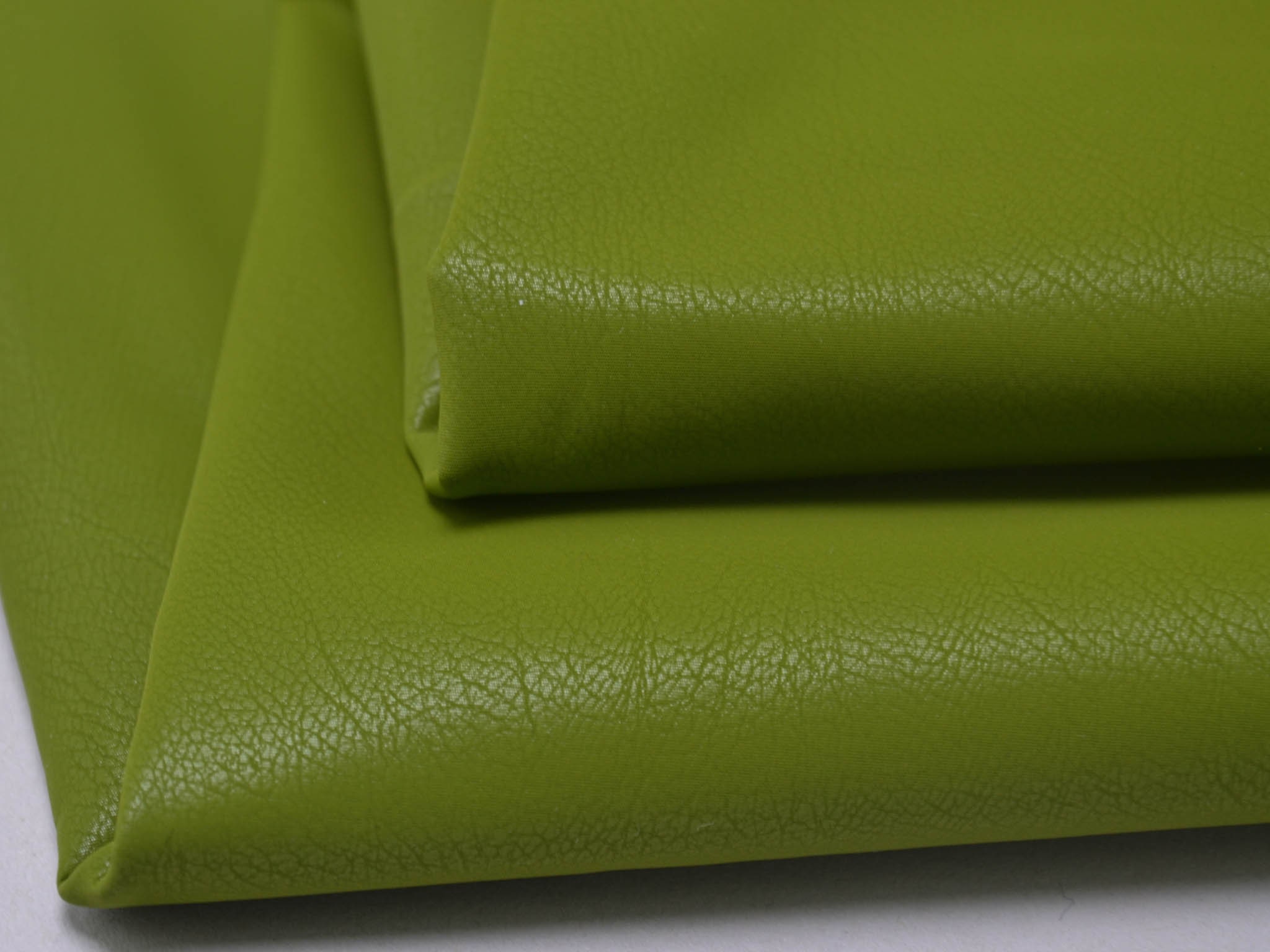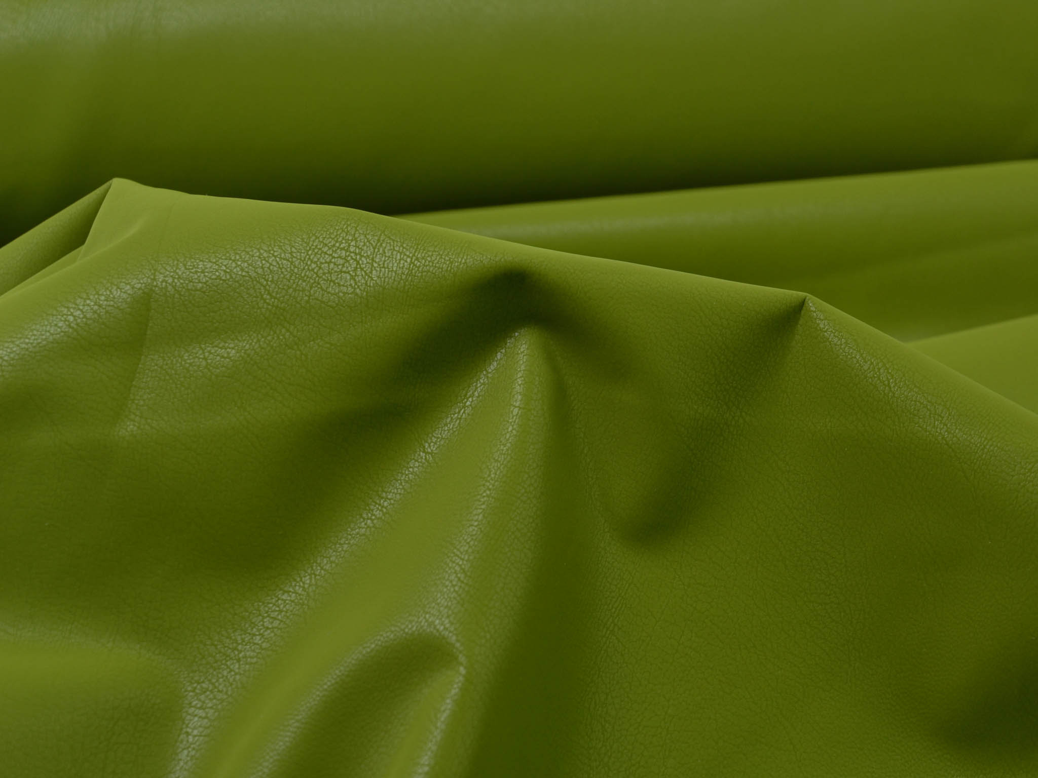 Green faux leather from Fibre Mood. The fabric has a slight stretch. It's perfect for trousers, dresses, skirts, and much more.