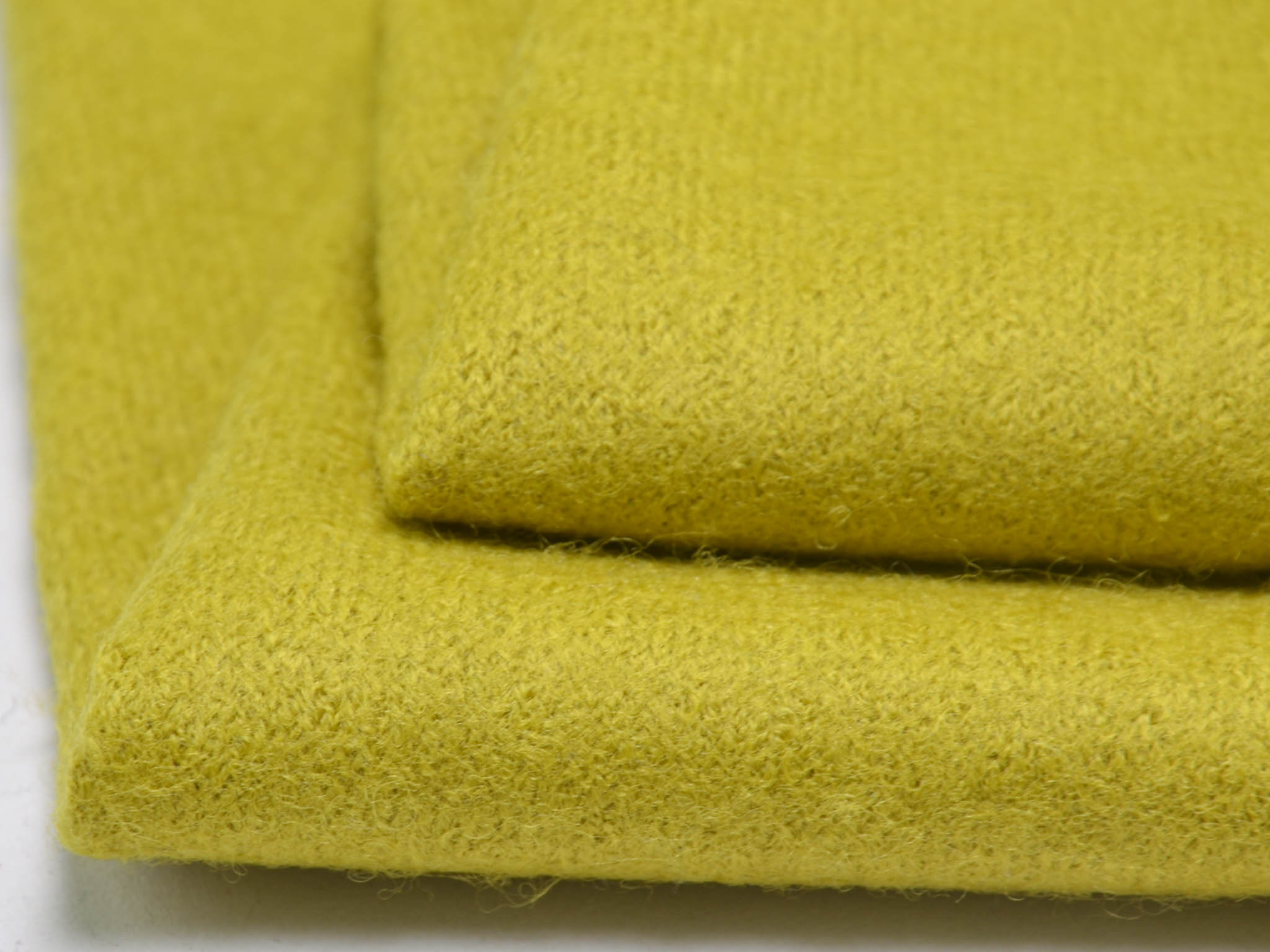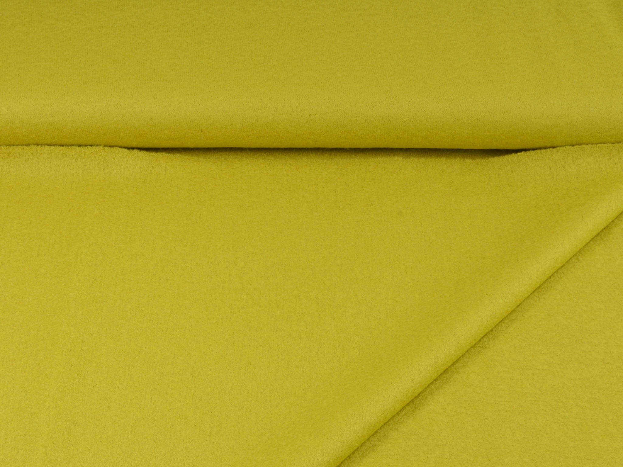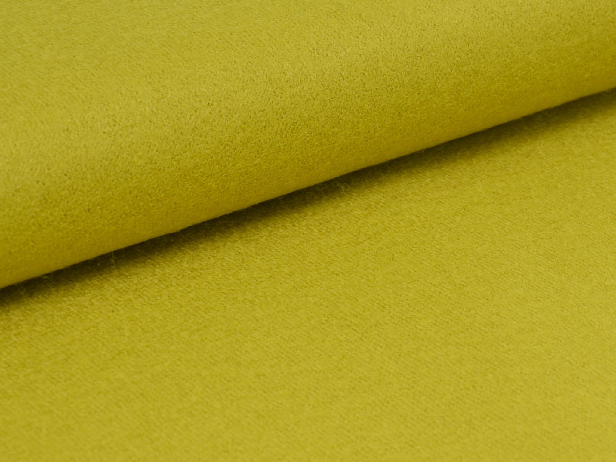 Dünner Mantelstoff aus 100% Schurwolle in modischem, frischem limetten-grün. Der Italienische Wollstoff eignet sich wunderbar zum Nähen von Jacken, Mänteln und Röcken. Der Stoff ist dünn und leicht körnig.