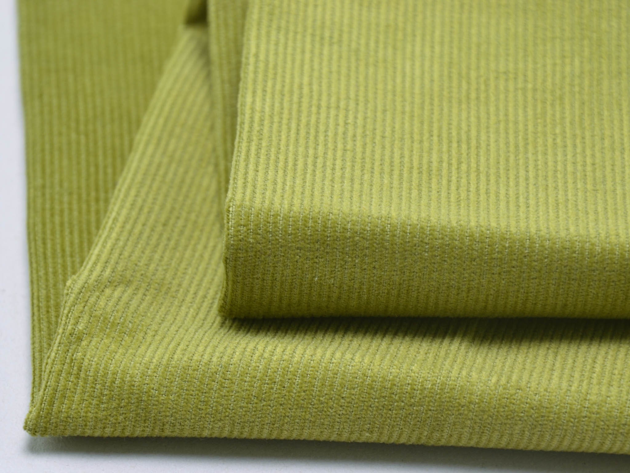 Very high-quality green cotton baby corduroy from Westfalenstoffe. The fabric is suitable for sewing pants, shirts, dresses, pillows, home decor, and much more.