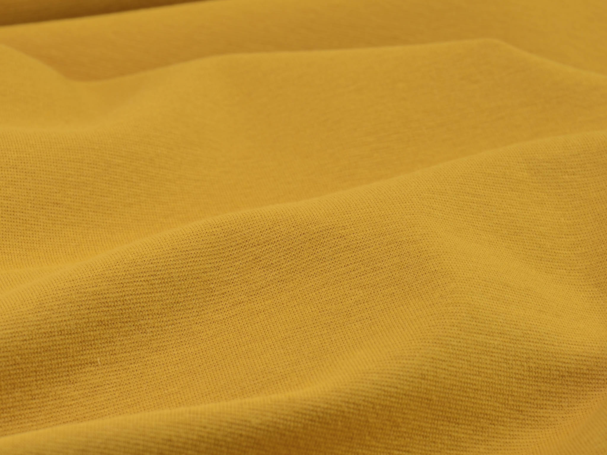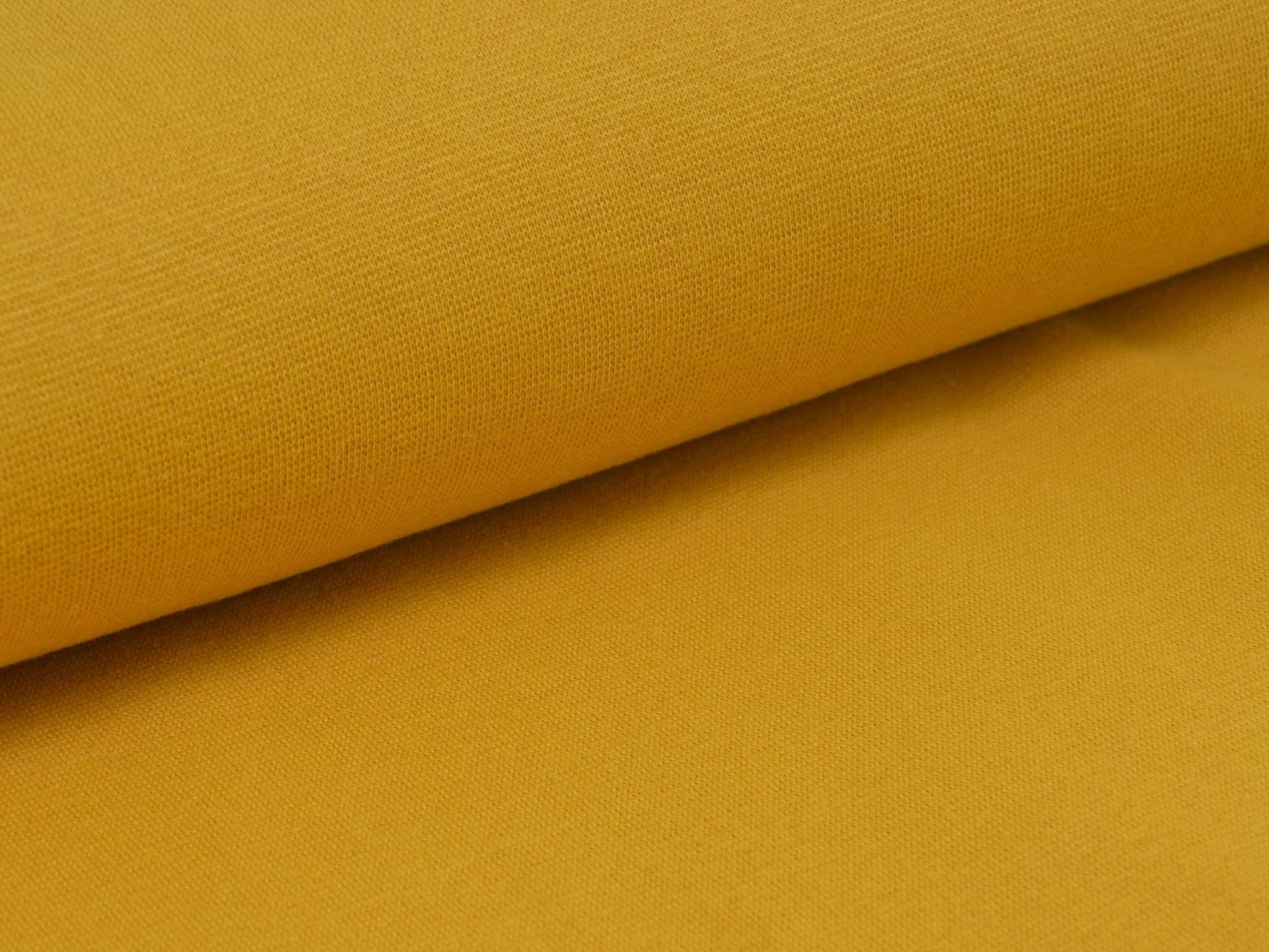 Hochwertiger, glatter, feiner Bündchenstoff in uni gelb. Der Stoff eignet sich wunderbar als Saum-, Ärmel- und Halsabschluss. Bitte beachte, bei der Ware handelt es sich um einen Schlauch.