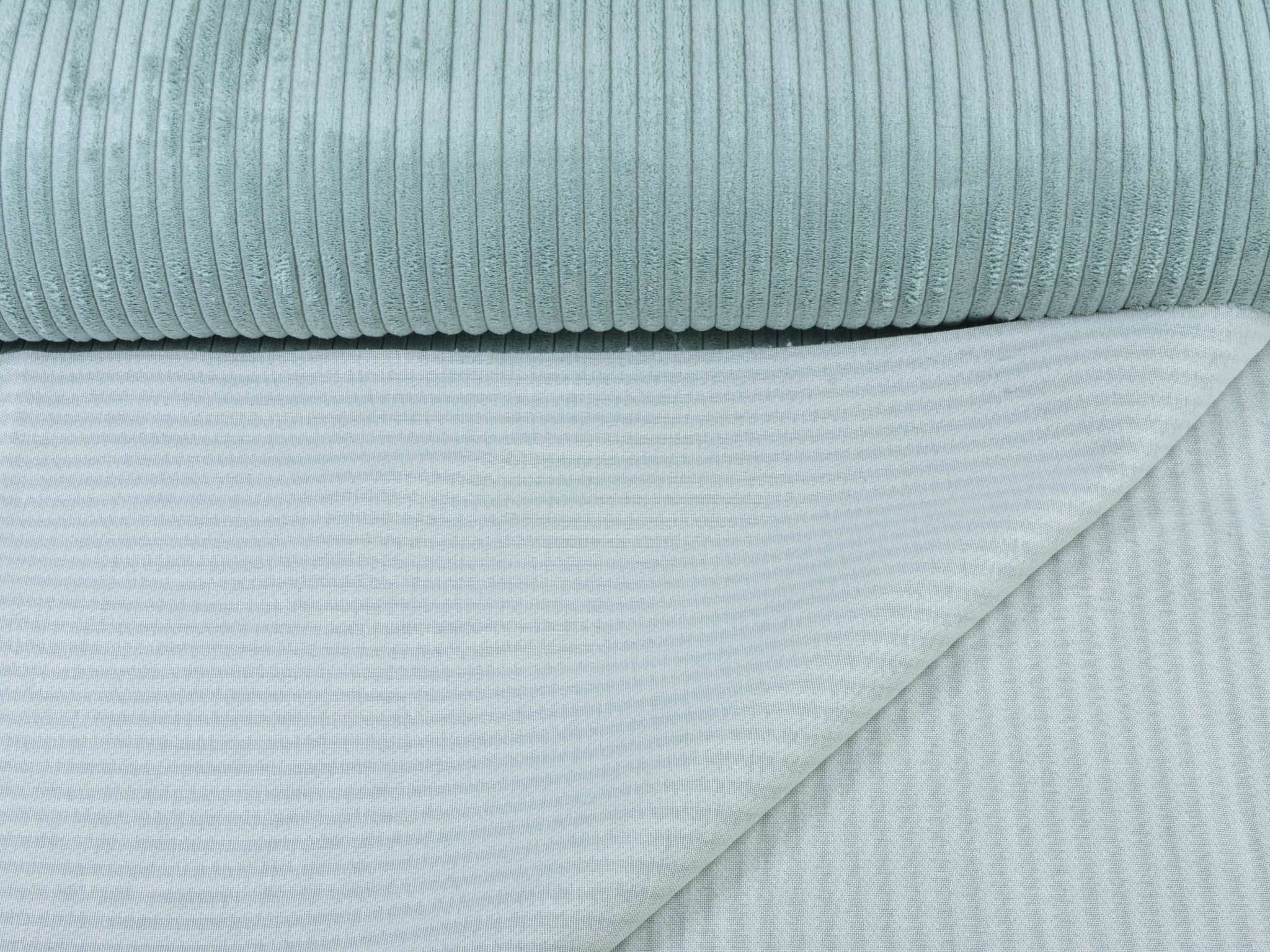 Breiter Cordstoff in der Farbe mint. Eine Rippe ist ca. 1 cm breit. Der Kord fühlt sich samtig und weich an. Du kannst ihn zum Polstern von Sesseln, Stühlen und Sofas verwenden. Nähe dir auch stylische Bauchtaschen, Shopper, Kissen, Schminktäschchen und vieles mehr aus dem tollen Stoff.