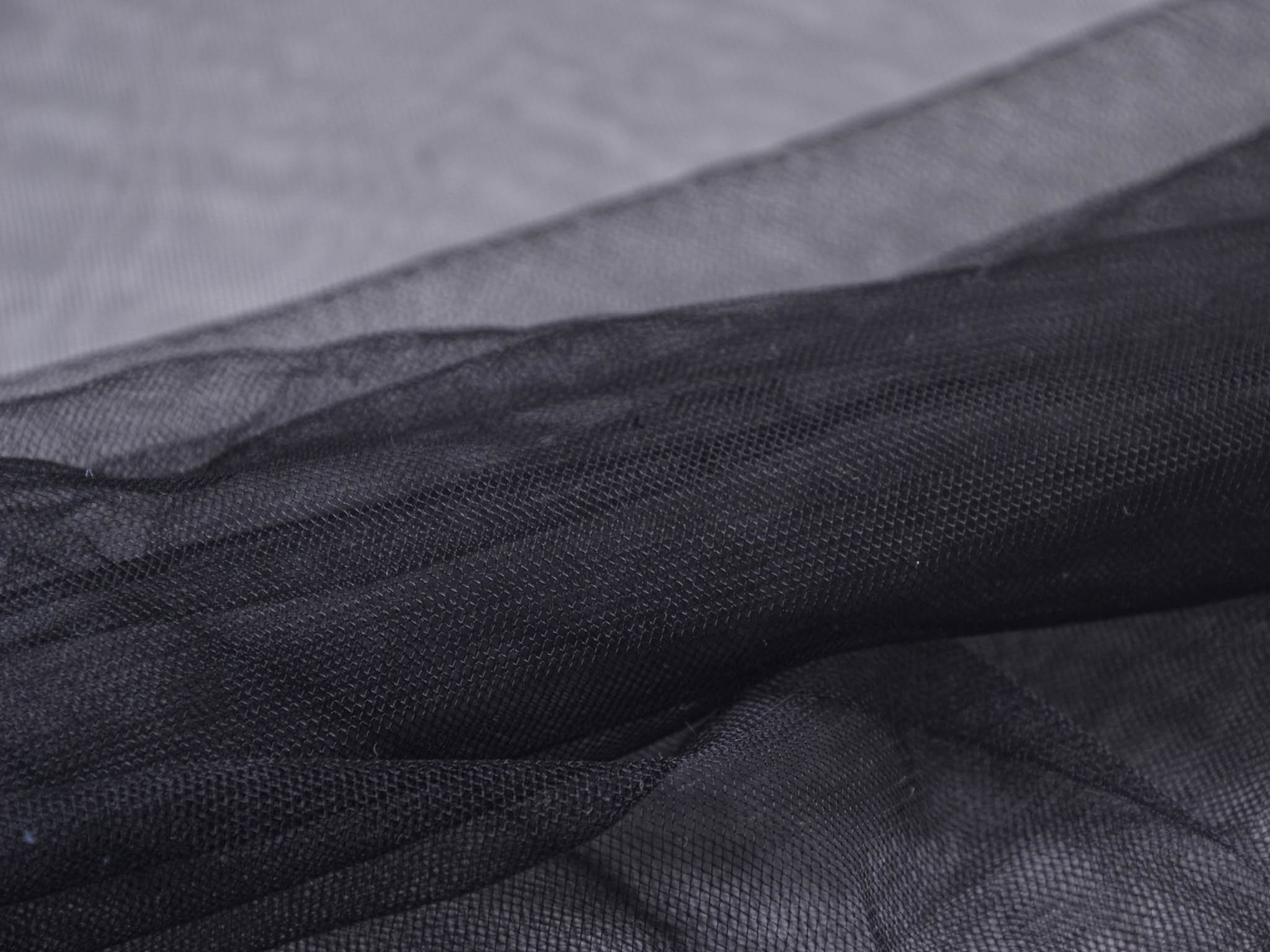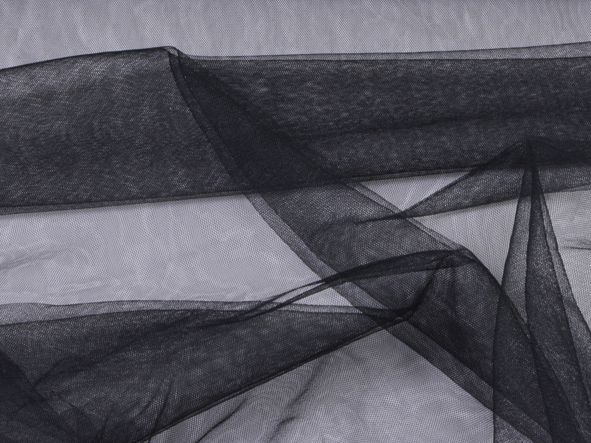 Sehr weicher, feiner und dünner Tüll in uni schwarz. Der Stoff ist elastisch und hat einen fließenden Fall. Du kannst ihn zum Nähen von Röcken, Kleidern und Accessoires verwenden