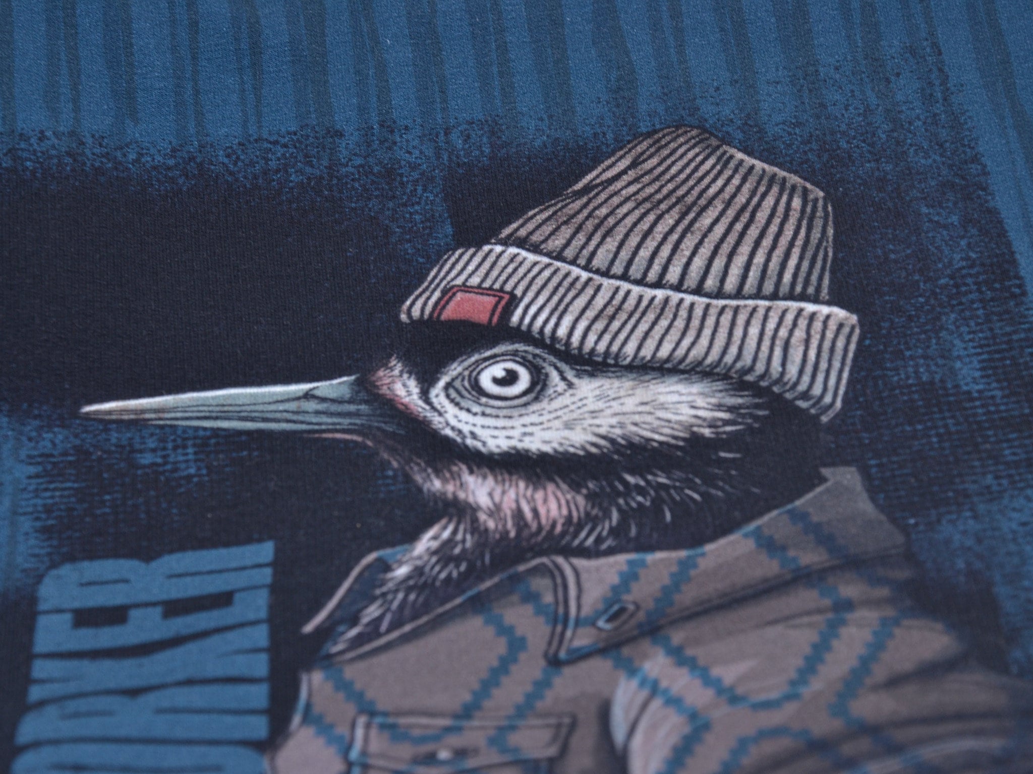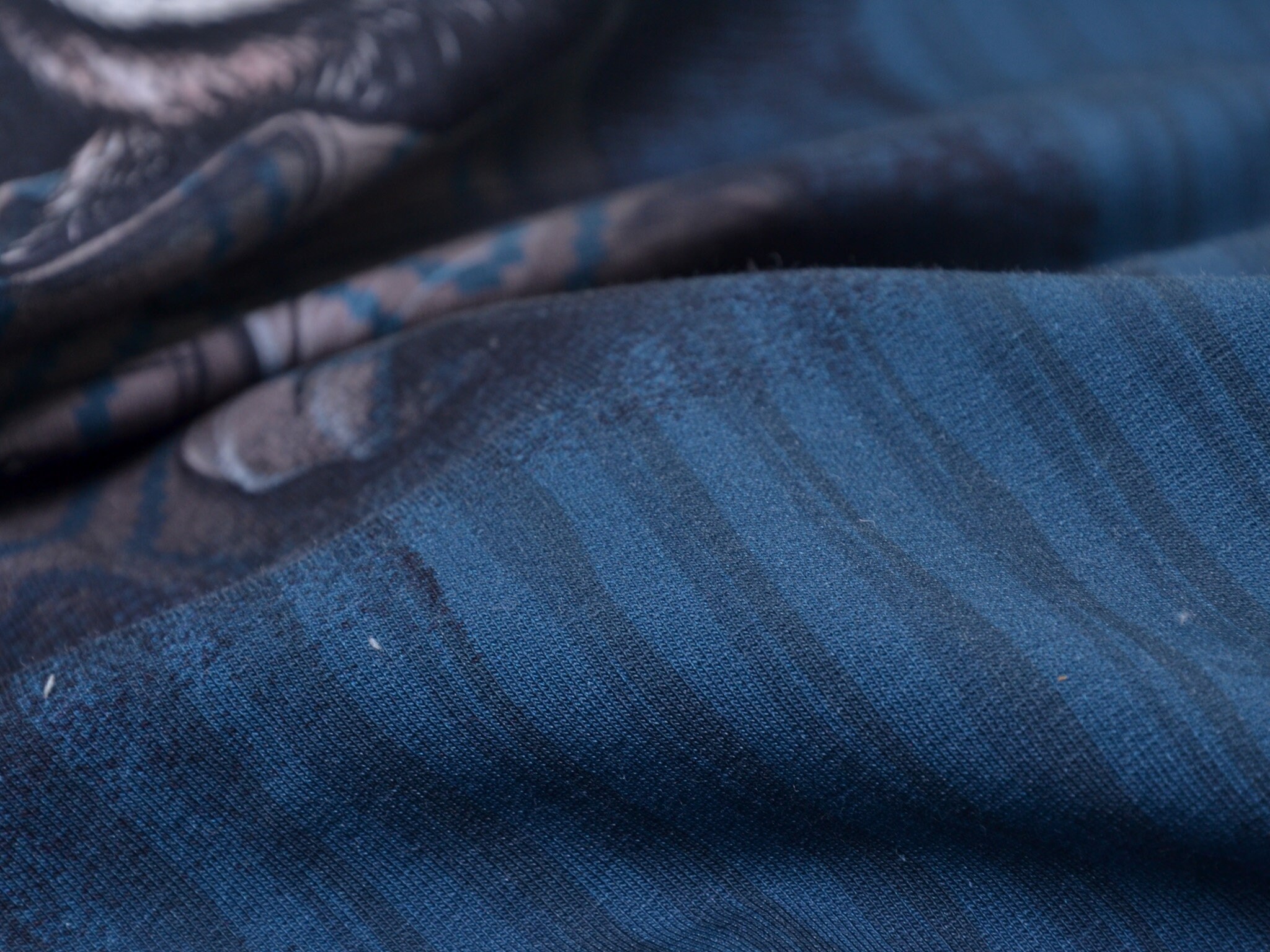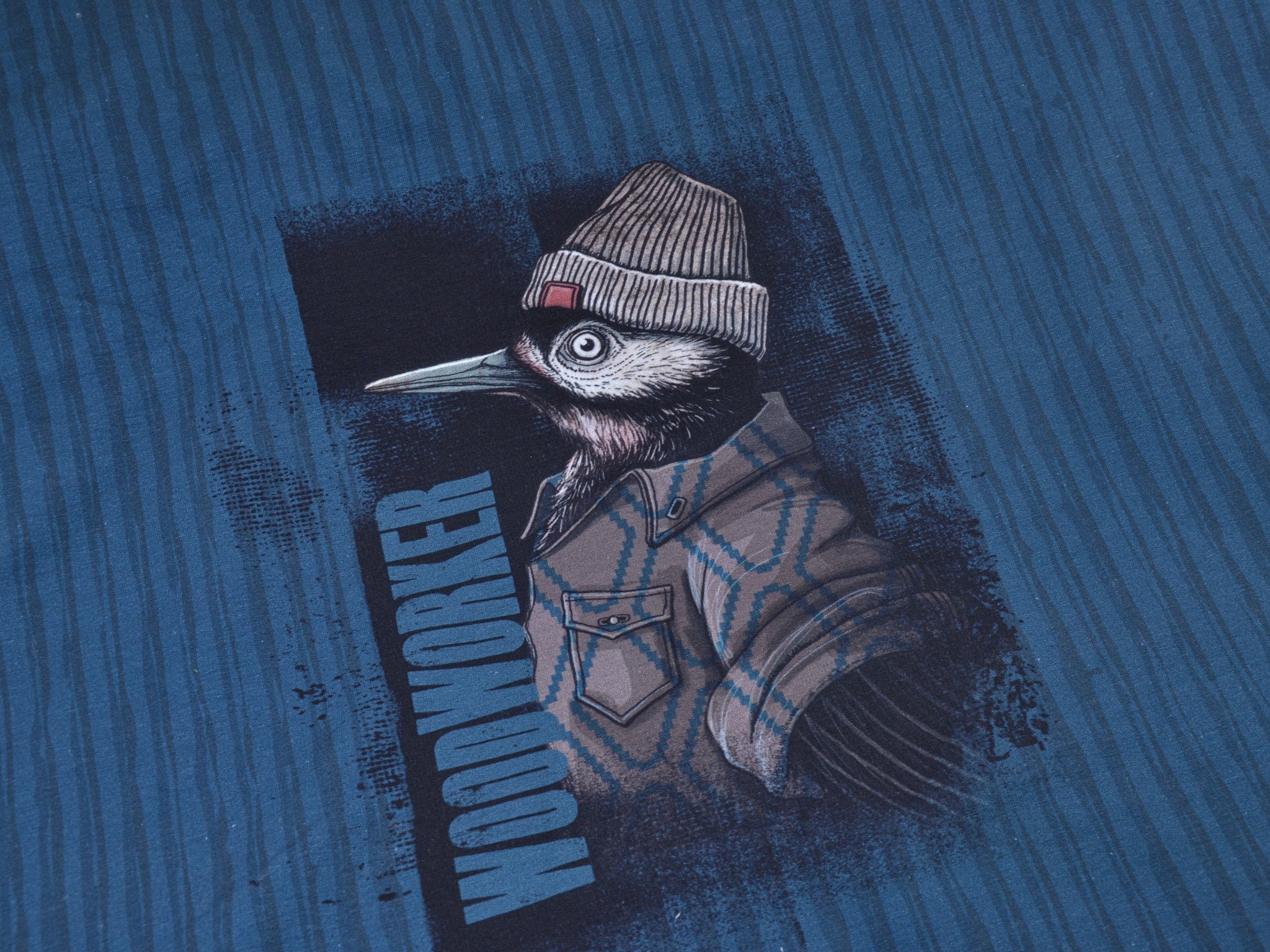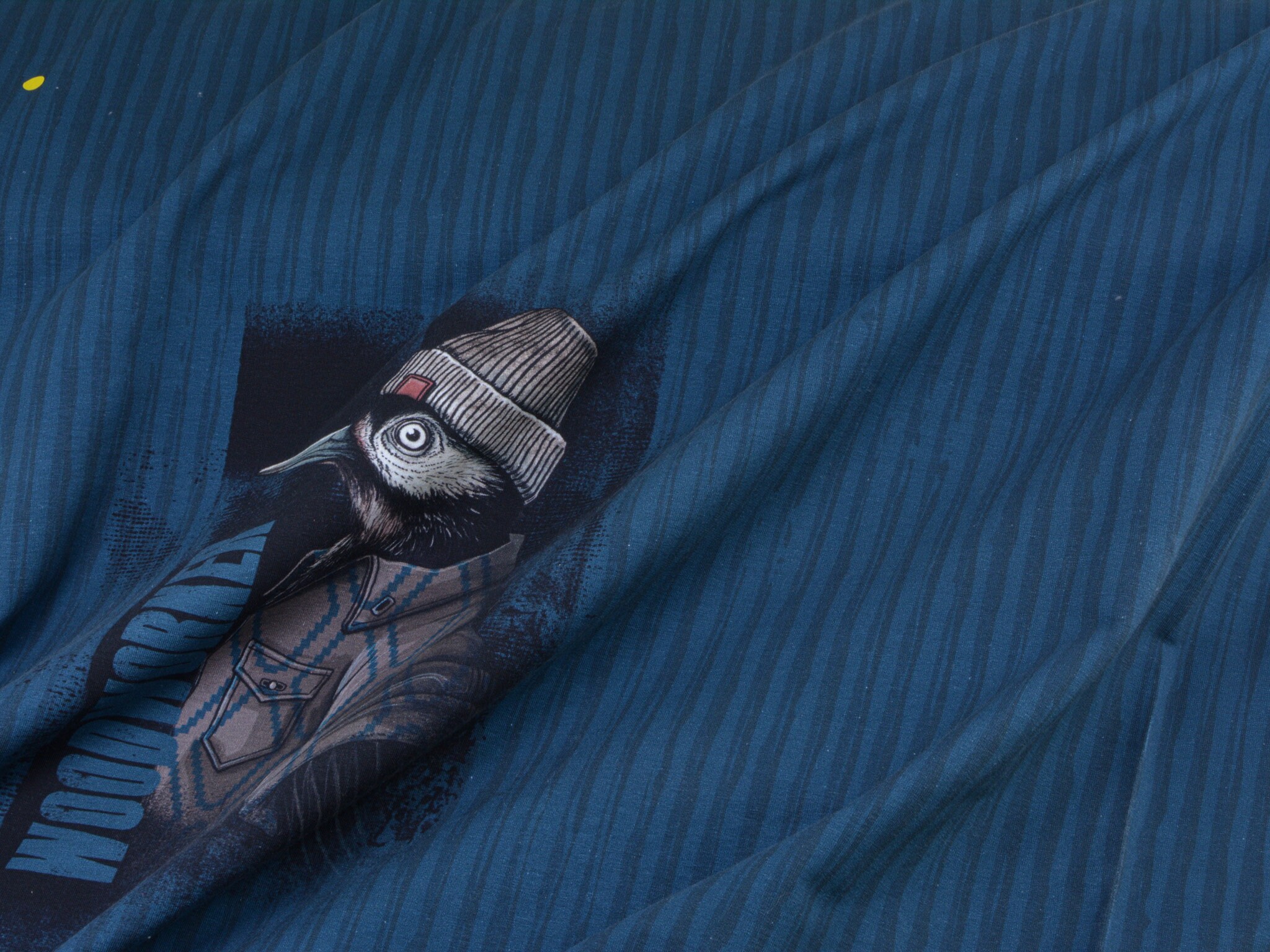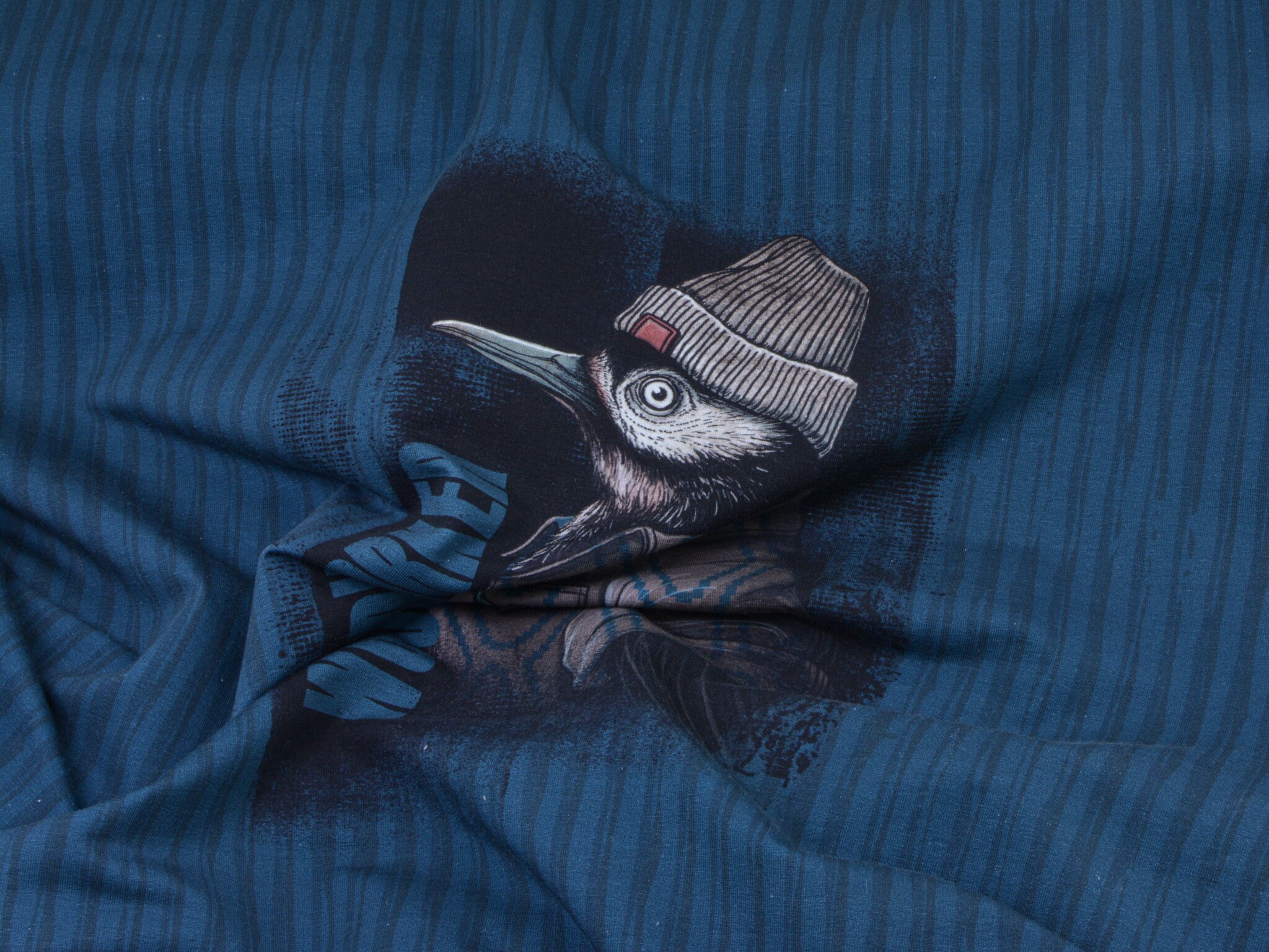Sweat-Panel (French Terry) aus Baumwolle in dunkelblau. Der Druck zeigt Längsstreifen und einen großen Raben. Der Rabe ist ca. 30-35 cm hoch und 22 cm breit. Du kannst aus dem Panel tolle T-Shirts nähen. Kombiniere ihn mit anderen Sweats oder French Terrys und du kannst Langarmshirts und Kleider daraus nähen. Ein Panel ist ca. 85 cm lang.
