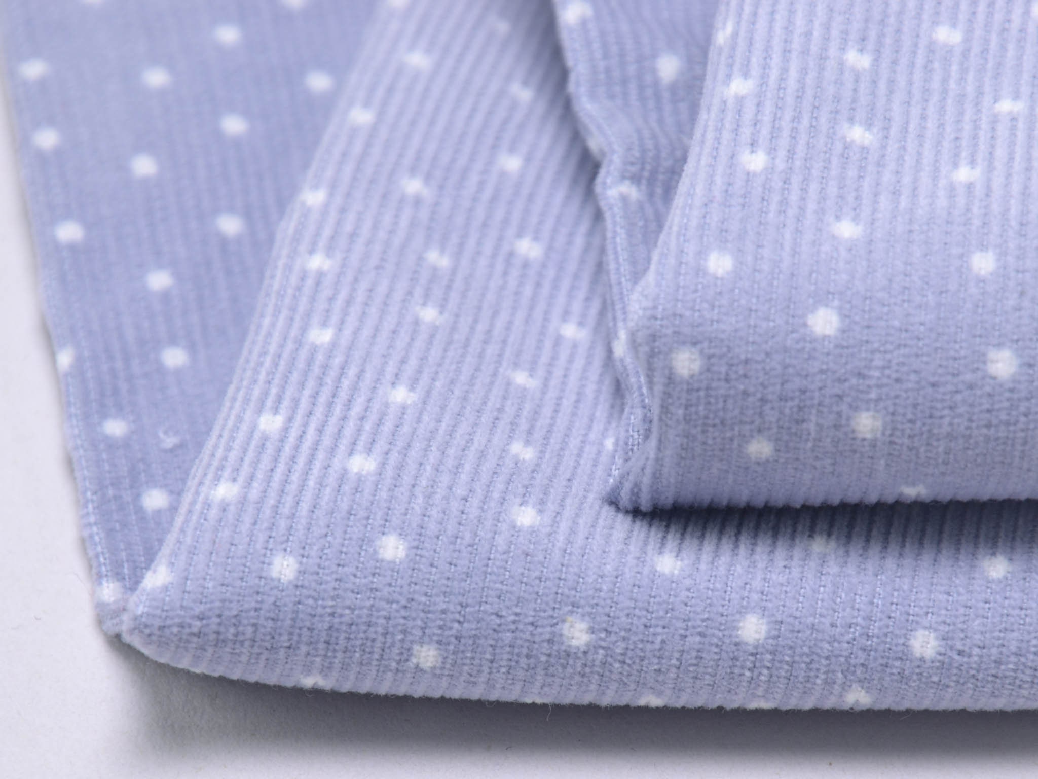 Very high-quality cotton baby corduroy in light gray with white dots from Westfalenstoffe. This fabric is suitable for sewing pants, shirts, dresses, pillows, home decor, and much more.