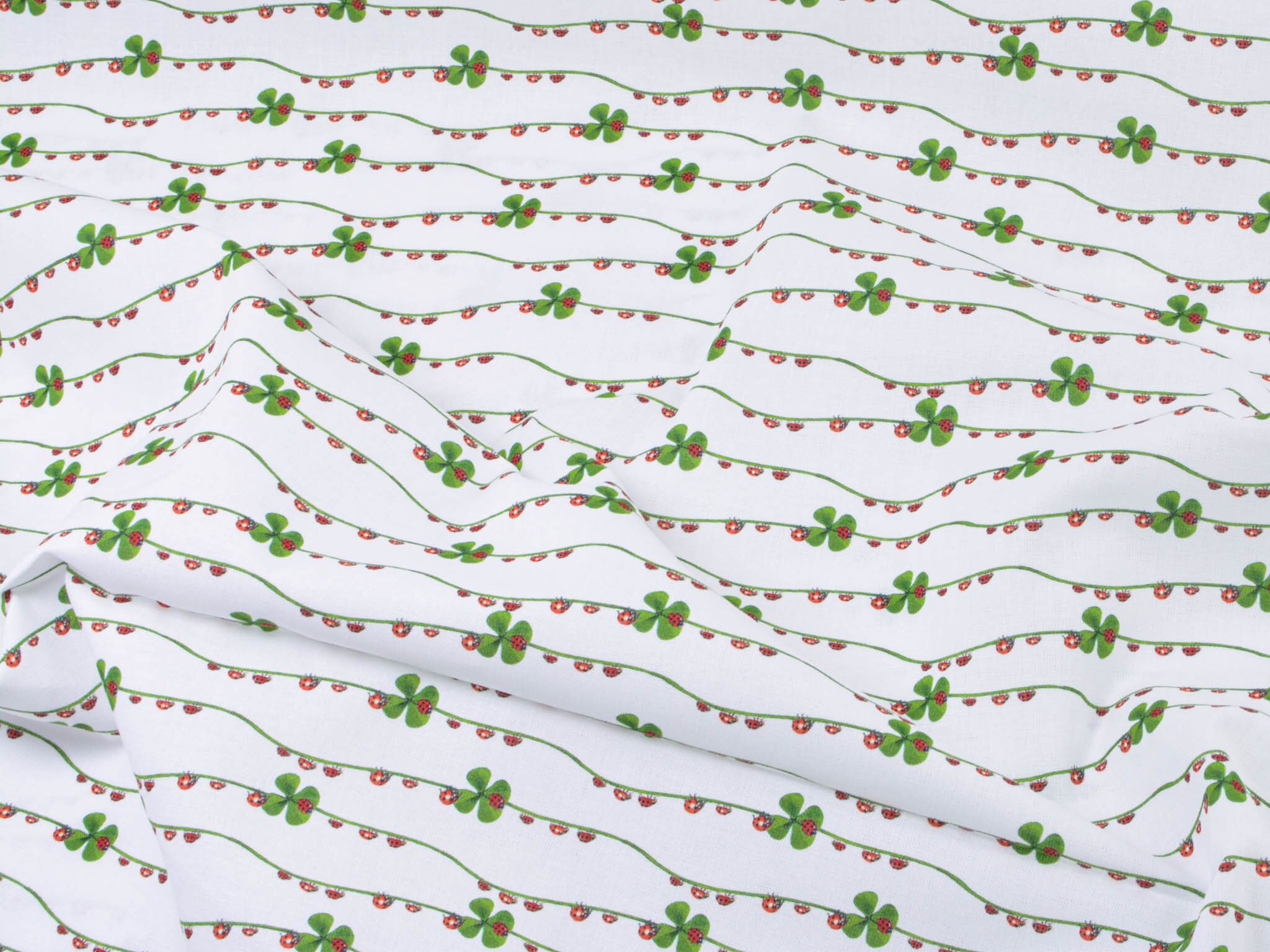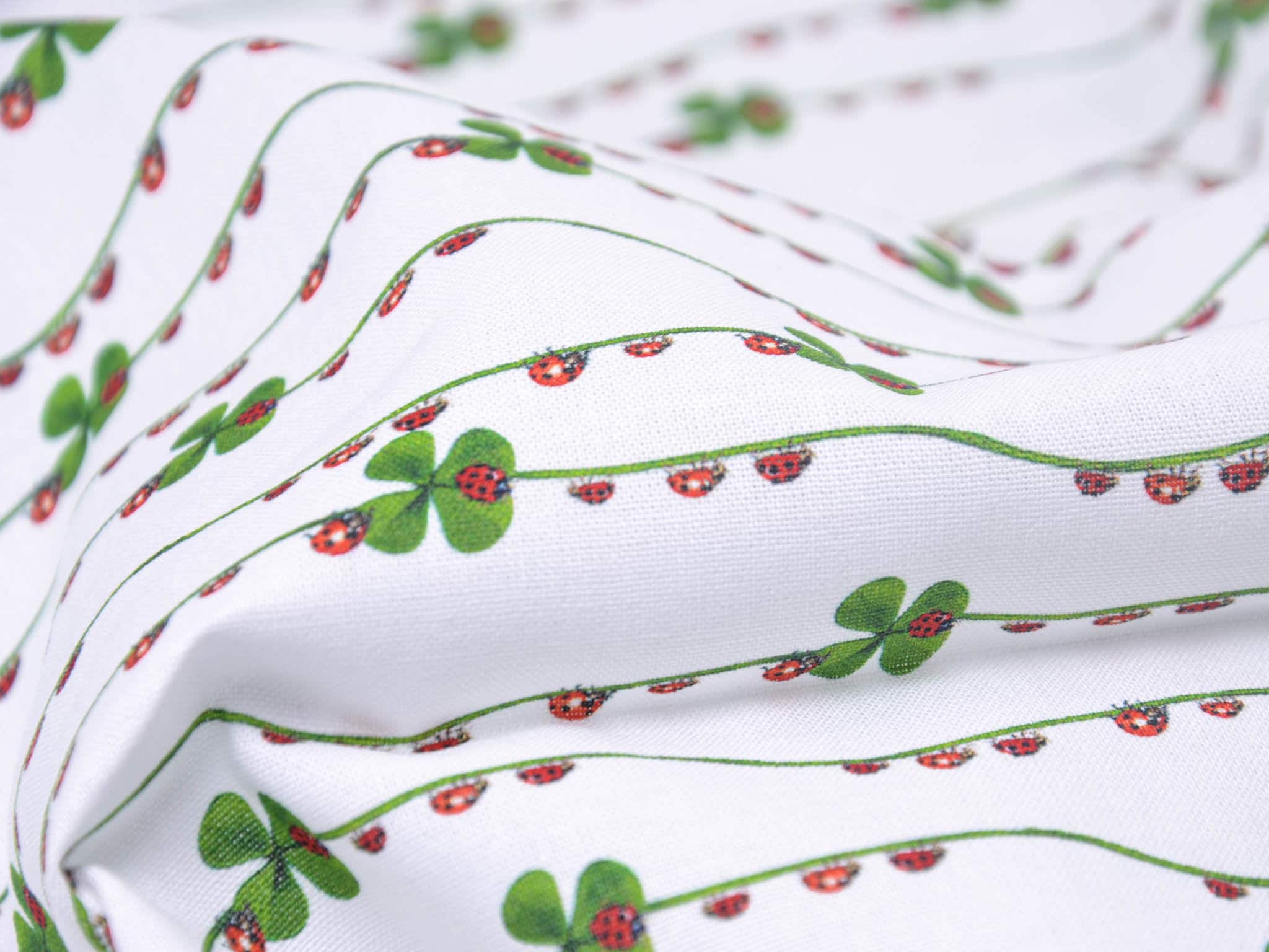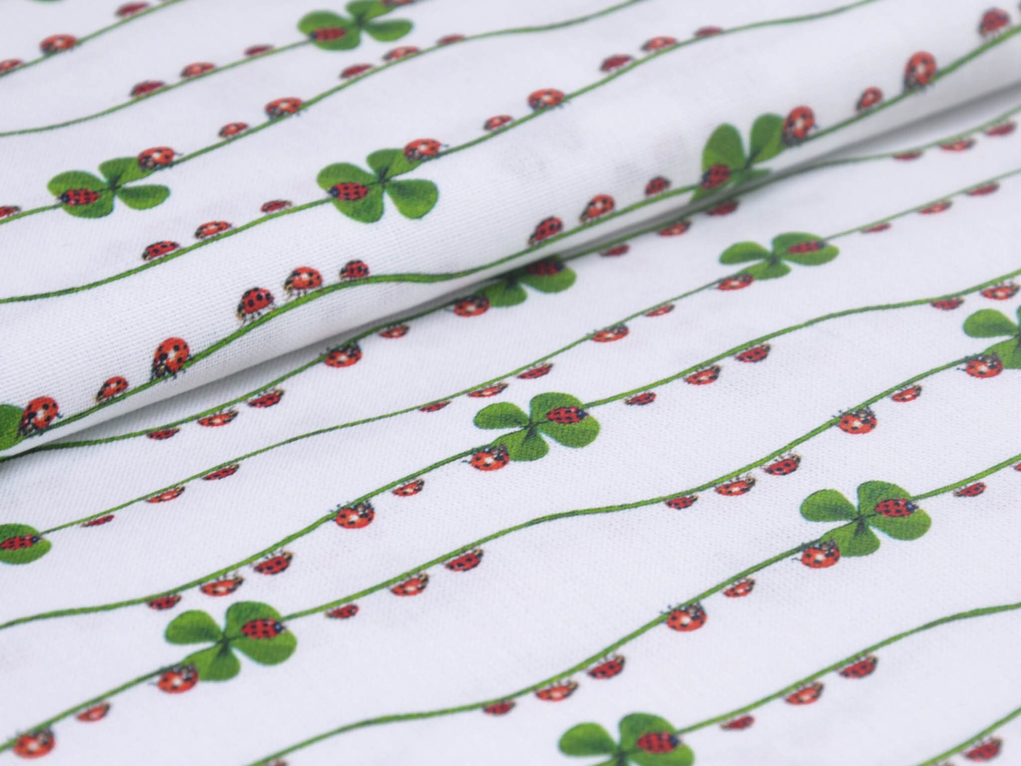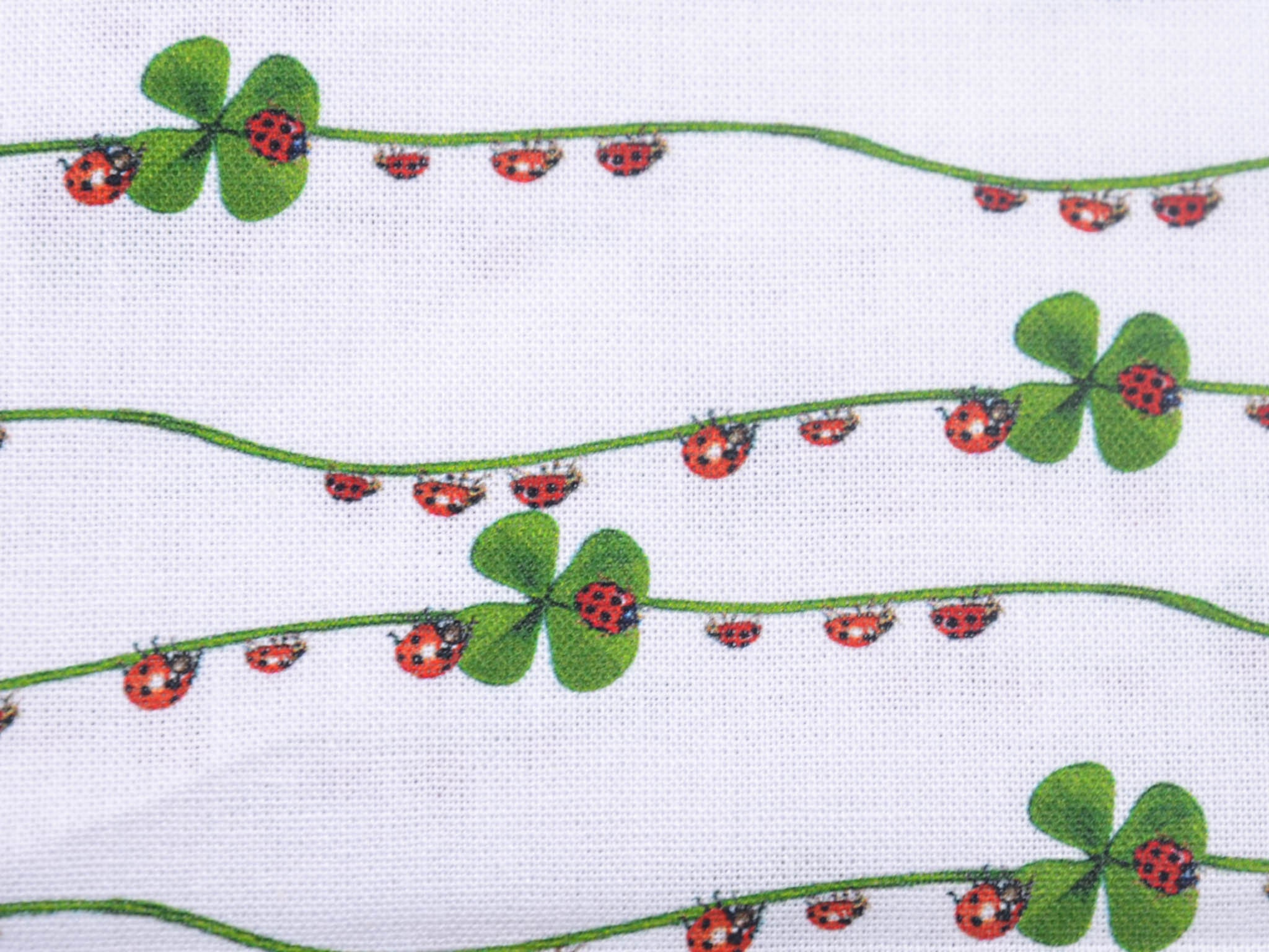Sehr hochwertiger Druckstoff Canterbury von Westfalenstoffe. Der Stoff zeigt grüne Kleeblätter mit kleinen Marienkäfern. Der Stoff eignet sich zum Nähen von Bettwäsche, Kissen, Deko und vielem mehr. Die Westfalenstoffe lassen sich wunderbar miteinander kombinieren.