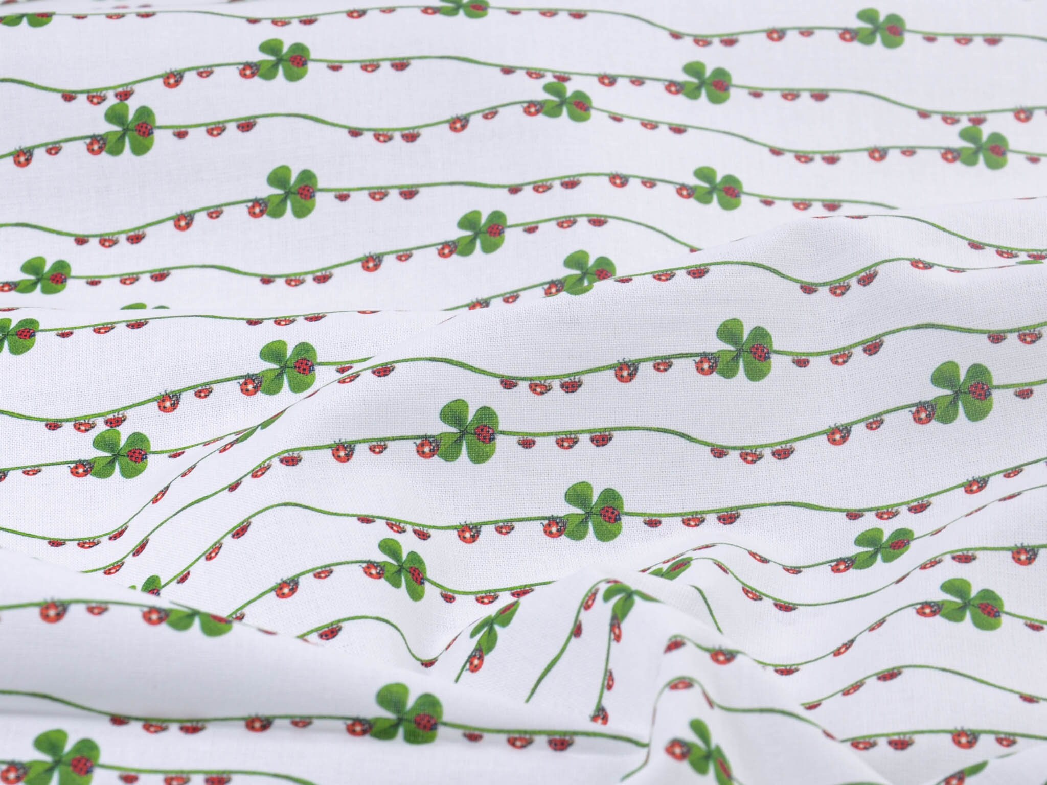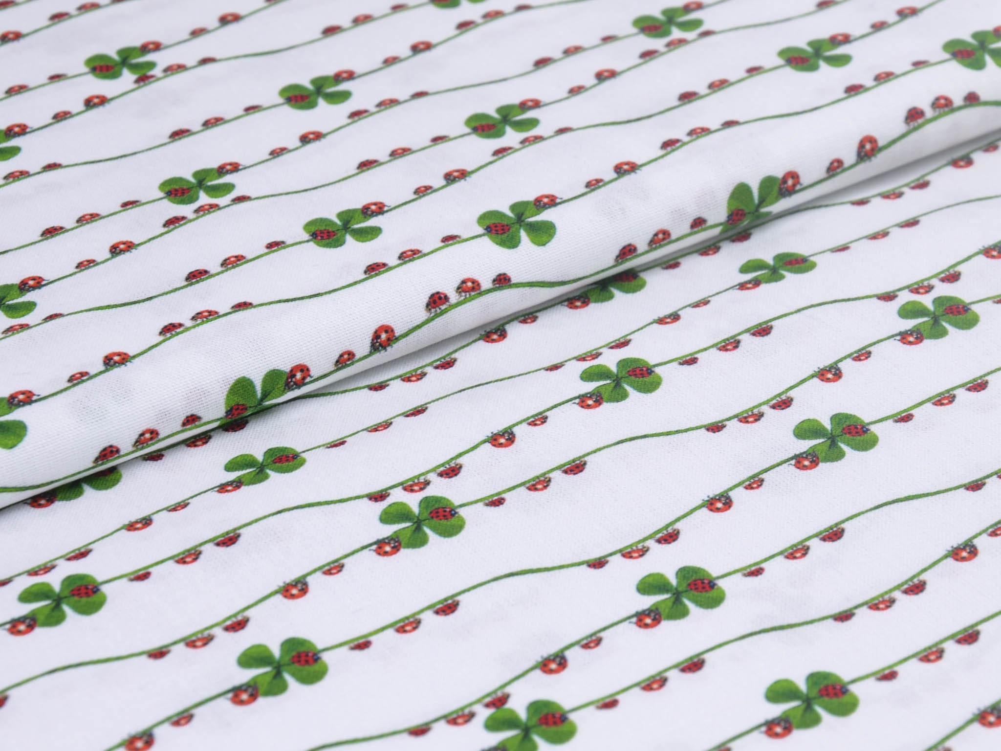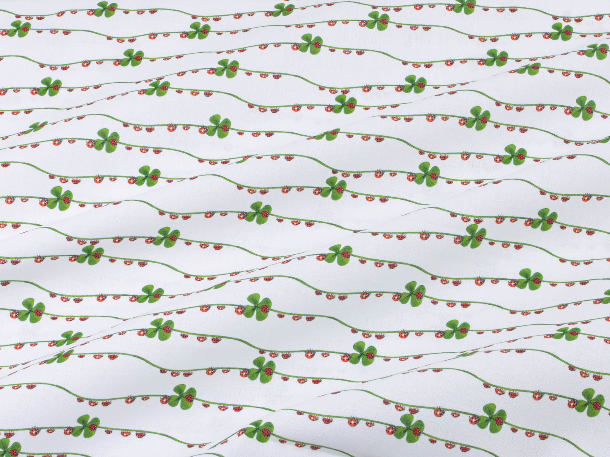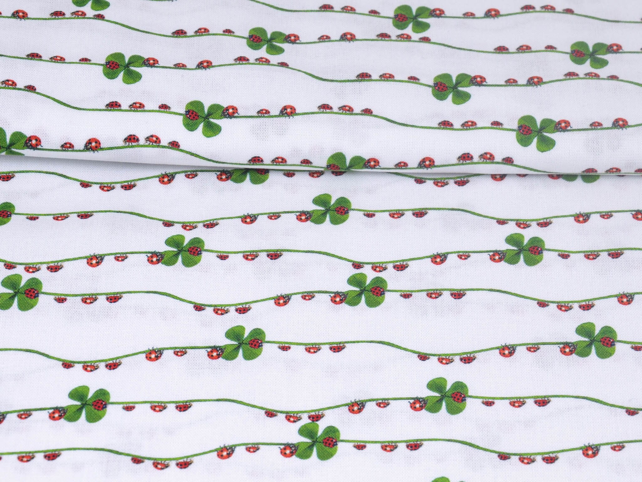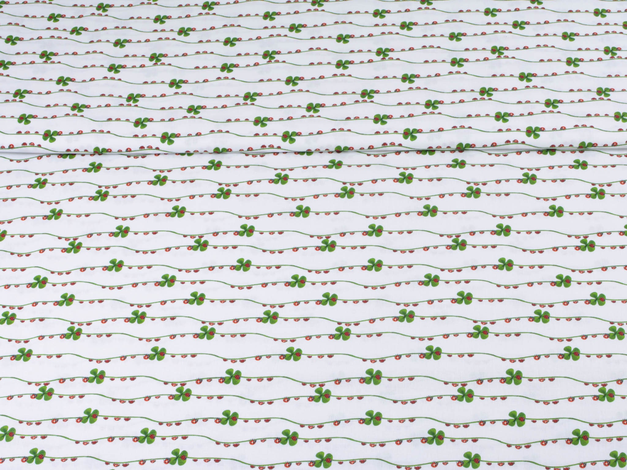 Sehr hochwertiger Druckstoff Canterbury von Westfalenstoffe. Der Stoff zeigt grüne Kleeblätter mit kleinen Marienkäfern. Der Stoff eignet sich zum Nähen von Bettwäsche, Kissen, Deko und vielem mehr. Die Westfalenstoffe lassen sich wunderbar miteinander kombinieren.