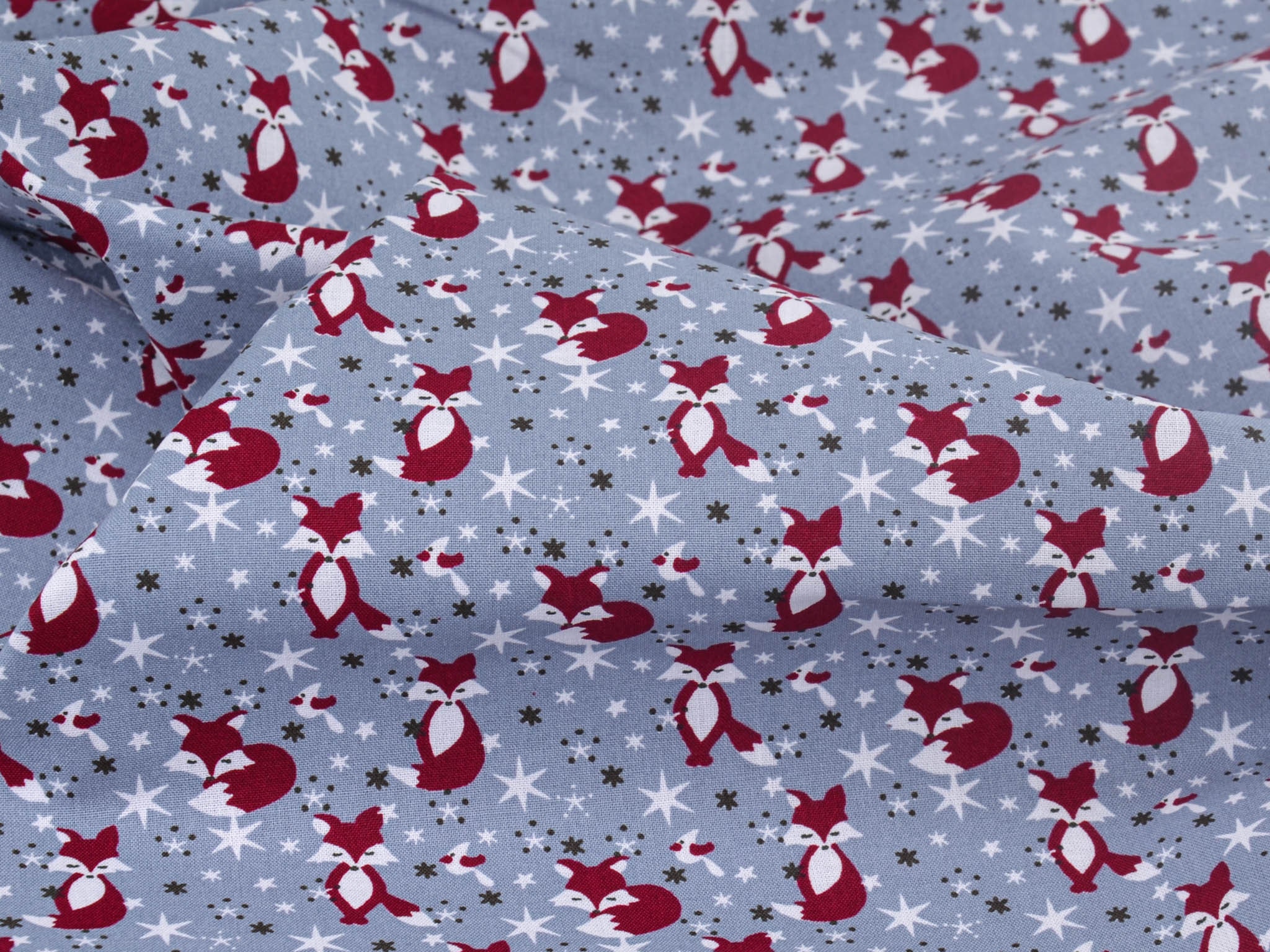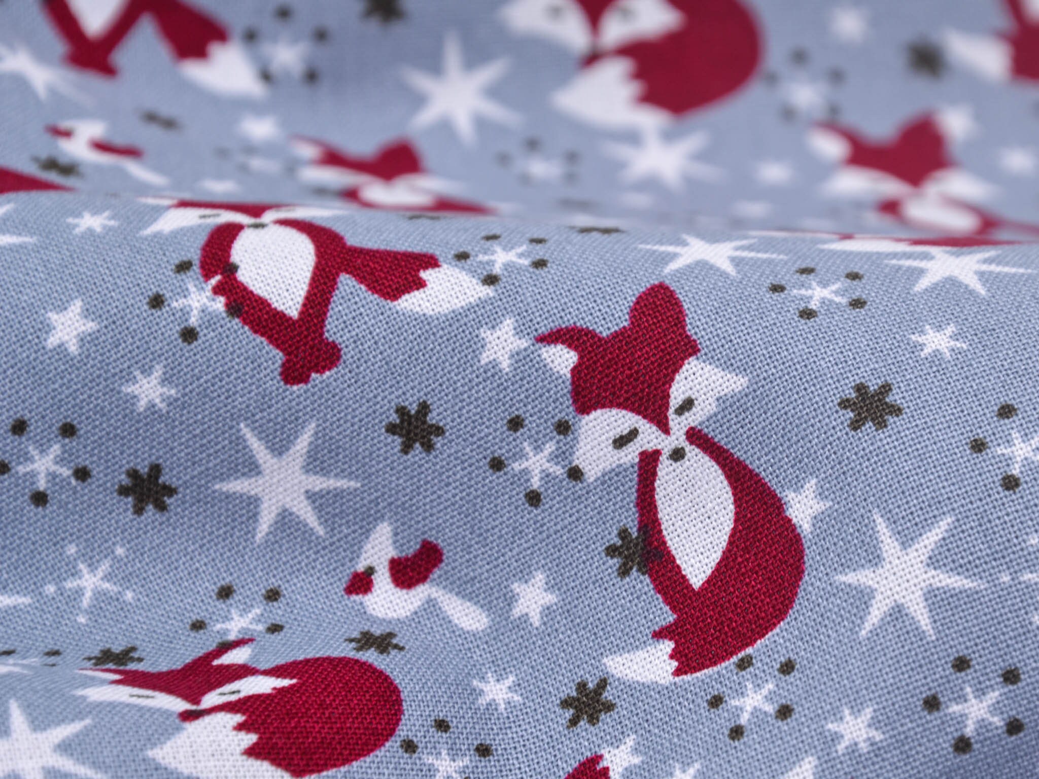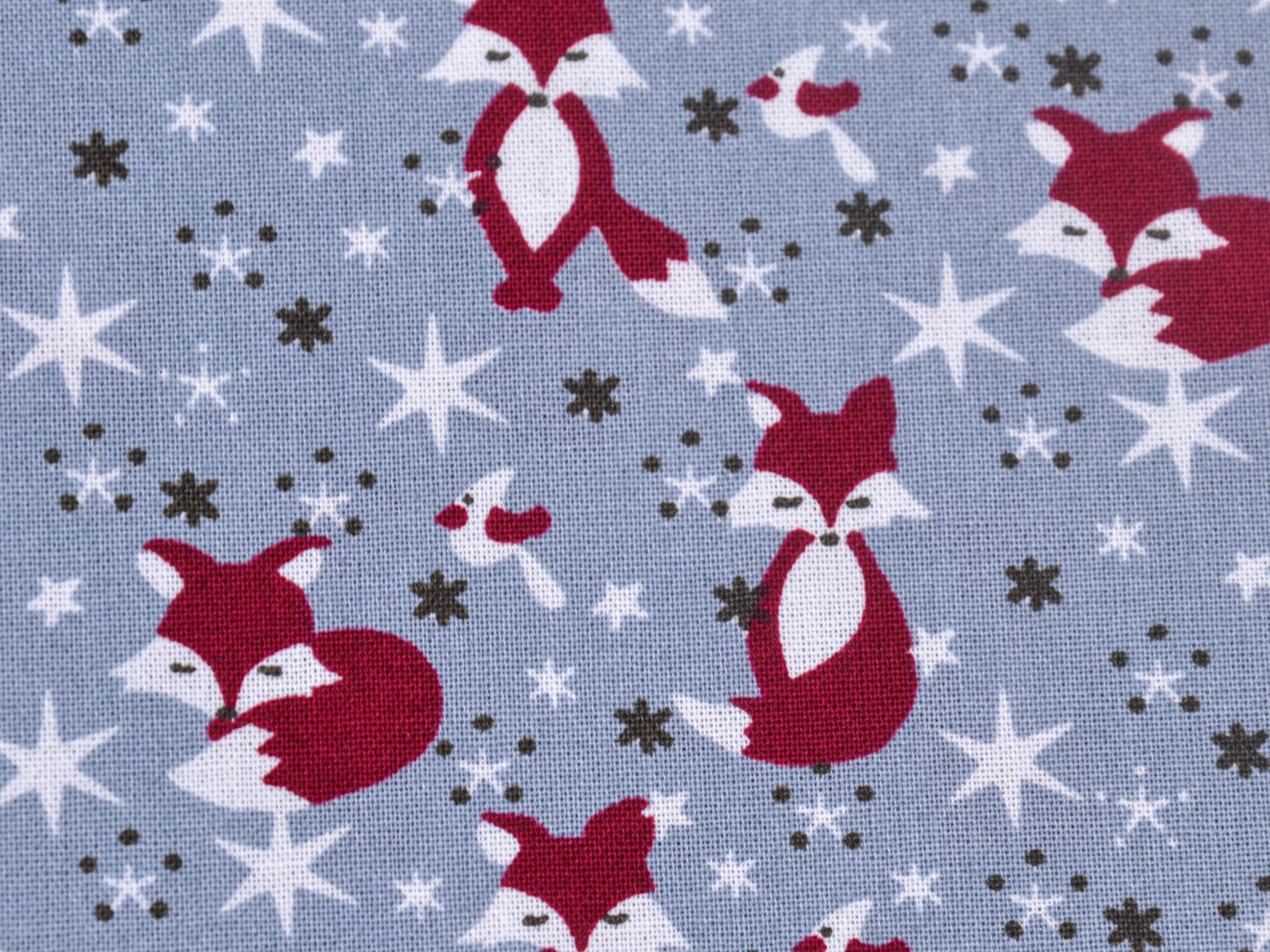 Sehr hochwertiger Druckstoff Kitzbühel von Westfalenstoffe. Grauer Stoff mit roten Fuchsen, Sternen und Vögelchen. Der Stoff eignet sich zum Nähen von Bettwäsche, Kissen, Deko und vielem mehr. Die Westfalenstoffe lassen sich wunderbar miteinander kombinieren.