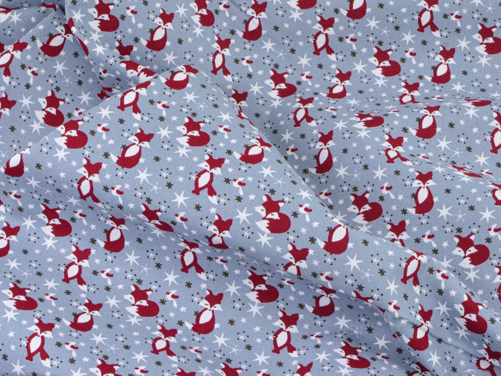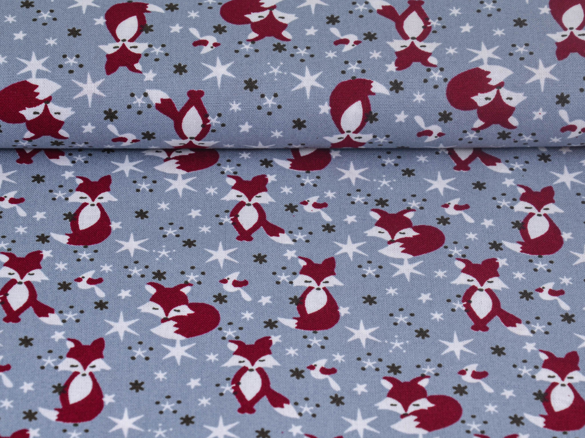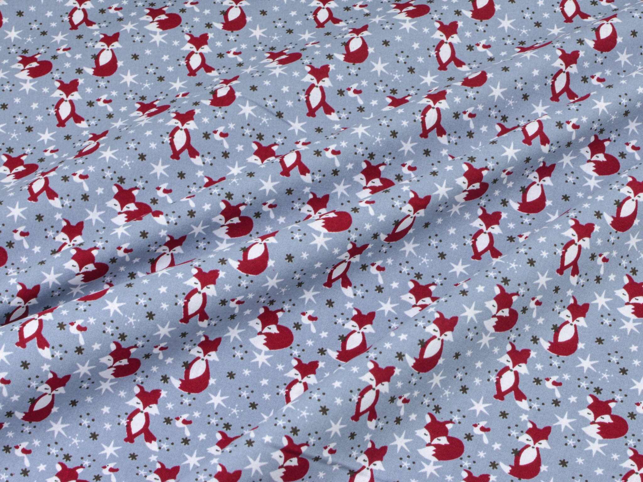 Sehr hochwertiger Druckstoff Kitzbühel von Westfalenstoffe. Grauer Stoff mit roten Fuchsen, Sternen und Vögelchen. Der Stoff eignet sich zum Nähen von Bettwäsche, Kissen, Deko und vielem mehr. Die Westfalenstoffe lassen sich wunderbar miteinander kombinieren.