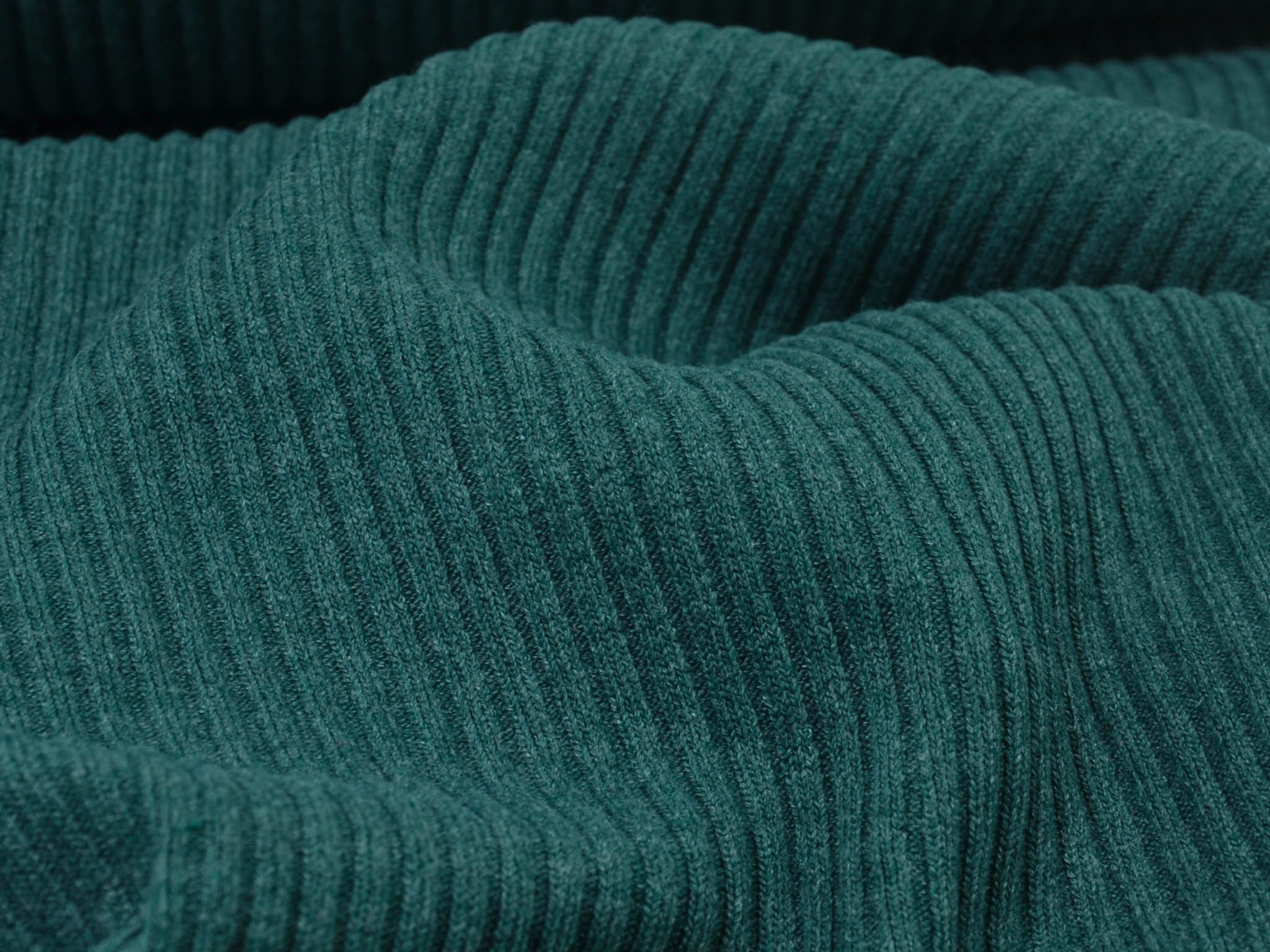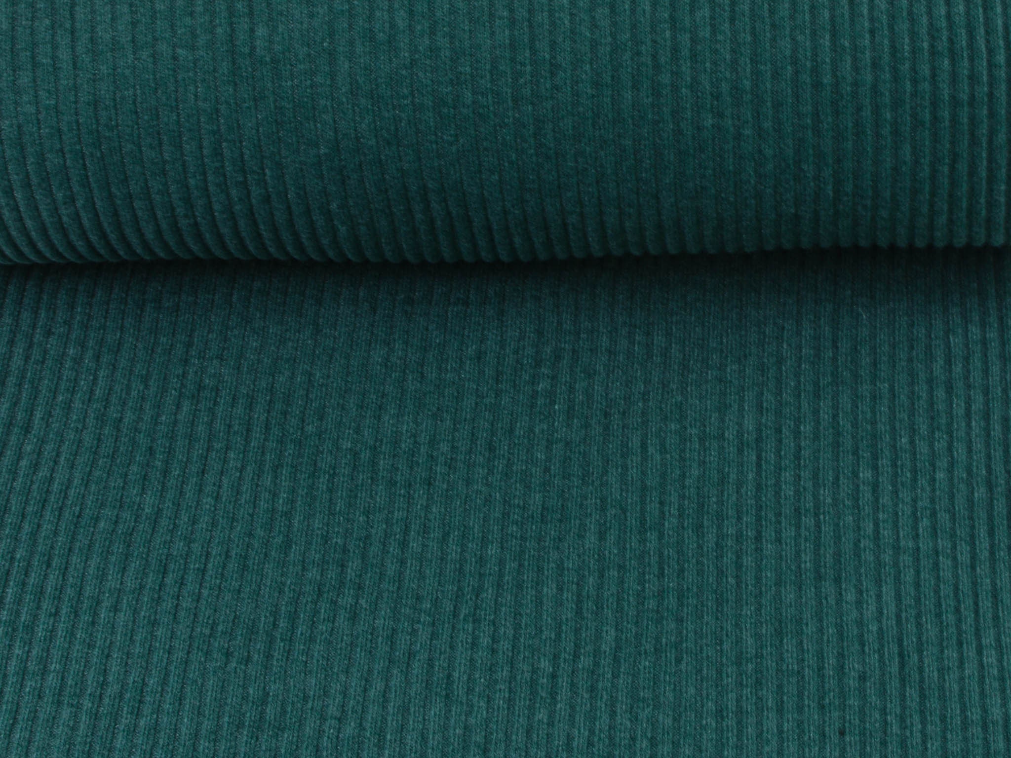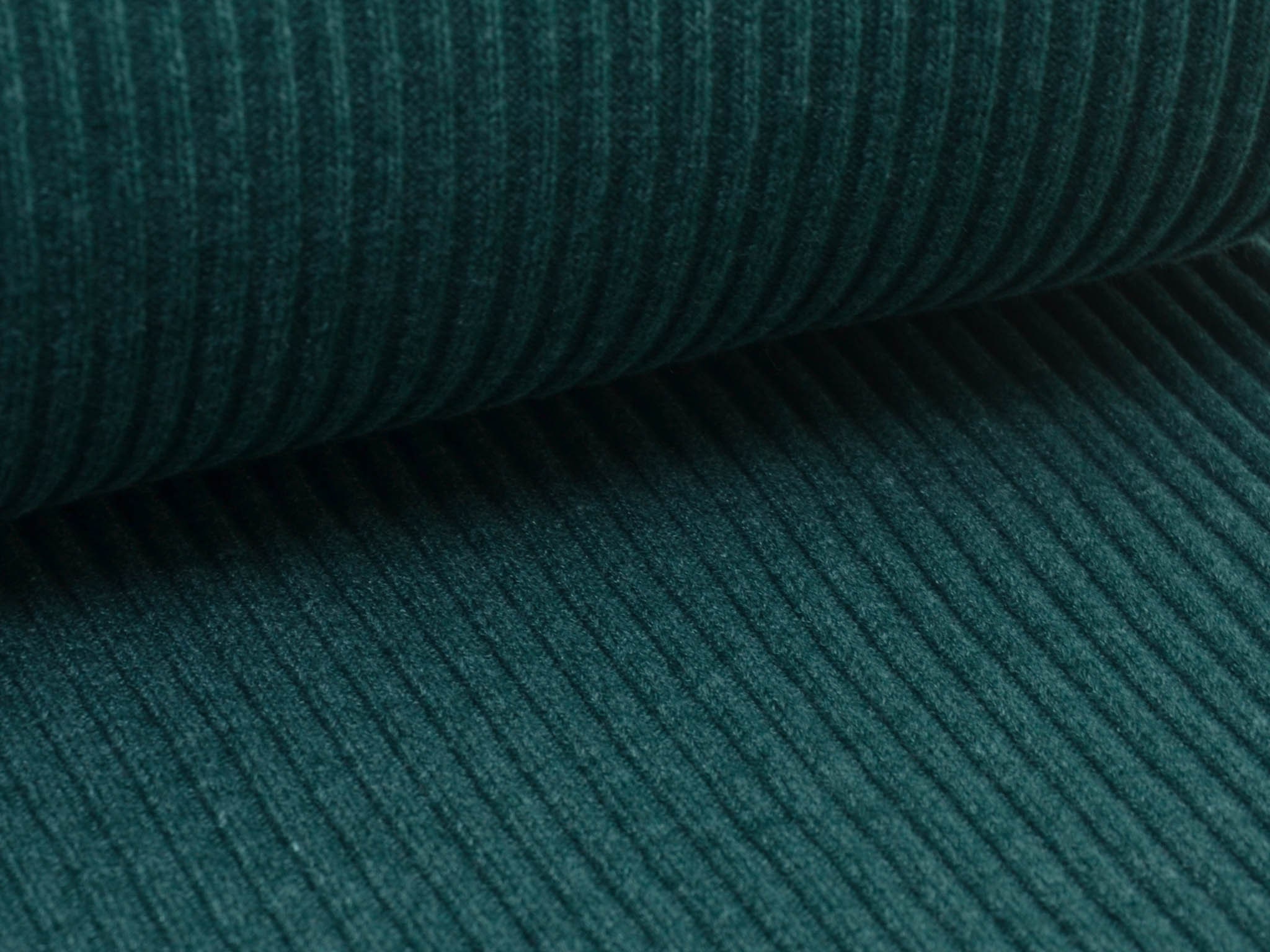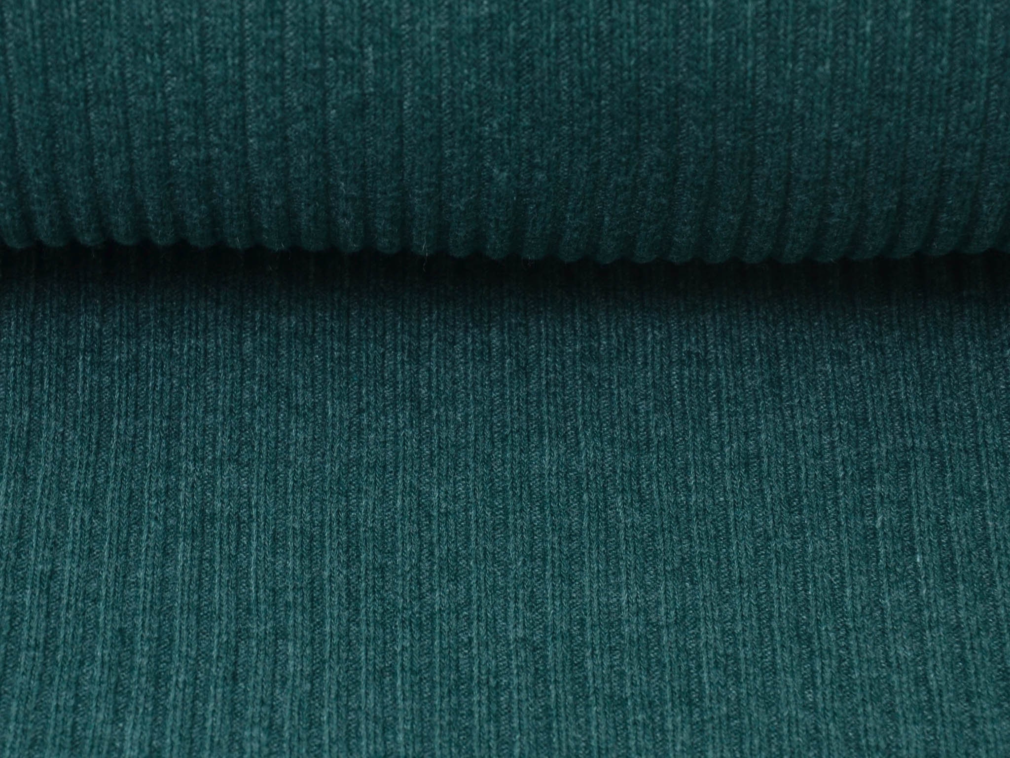 Bündchenstoff Grobstrick in faschengrün, blau-grün meliert. Das Bündchen ist ideal zum Nähen von Säumen an Hoodies, Röcken, Ärmeln, Hosen und vielem mehr. Du kannst aus dem Grobstrick auch wunderbar Beanies nähen.