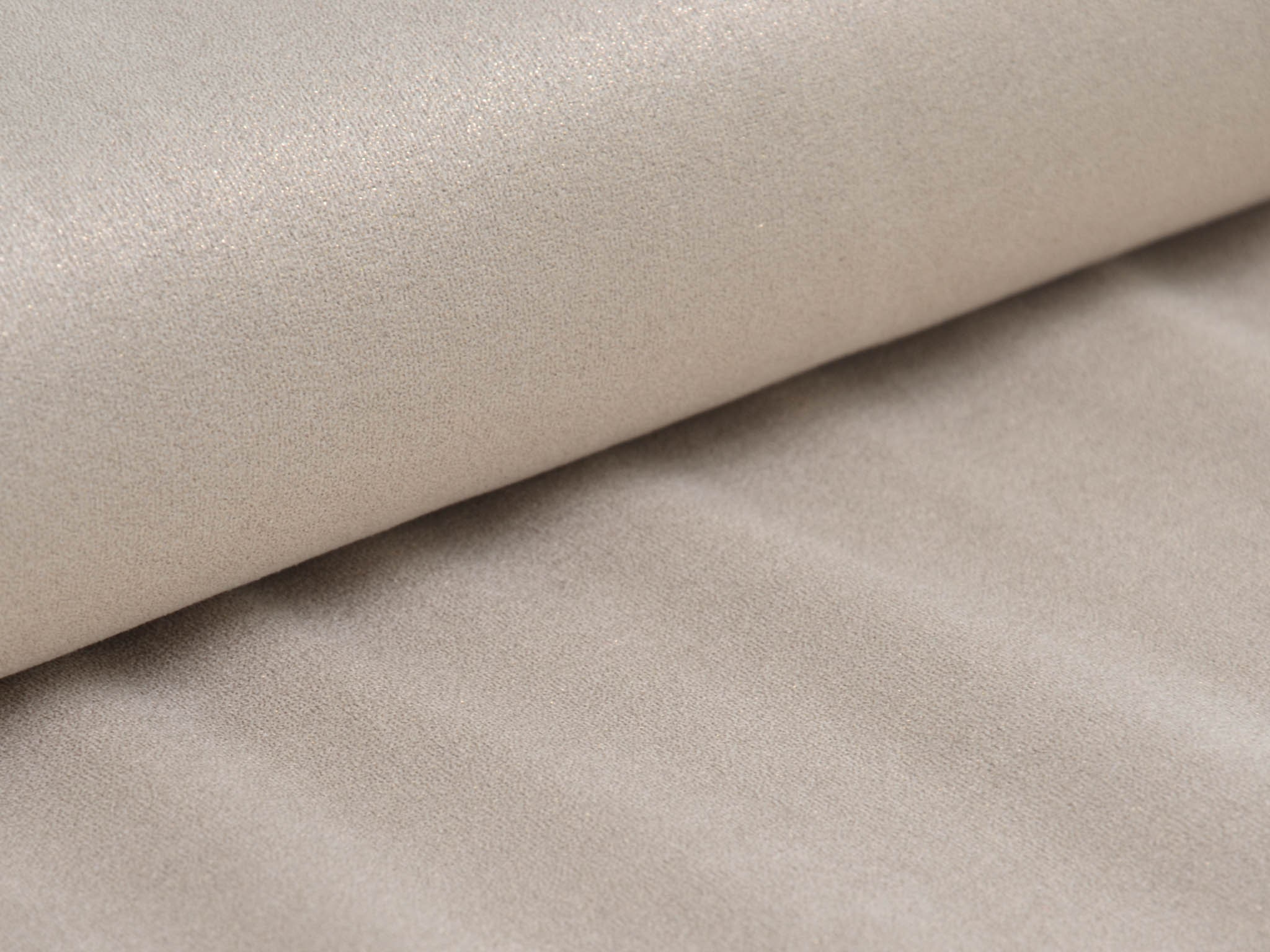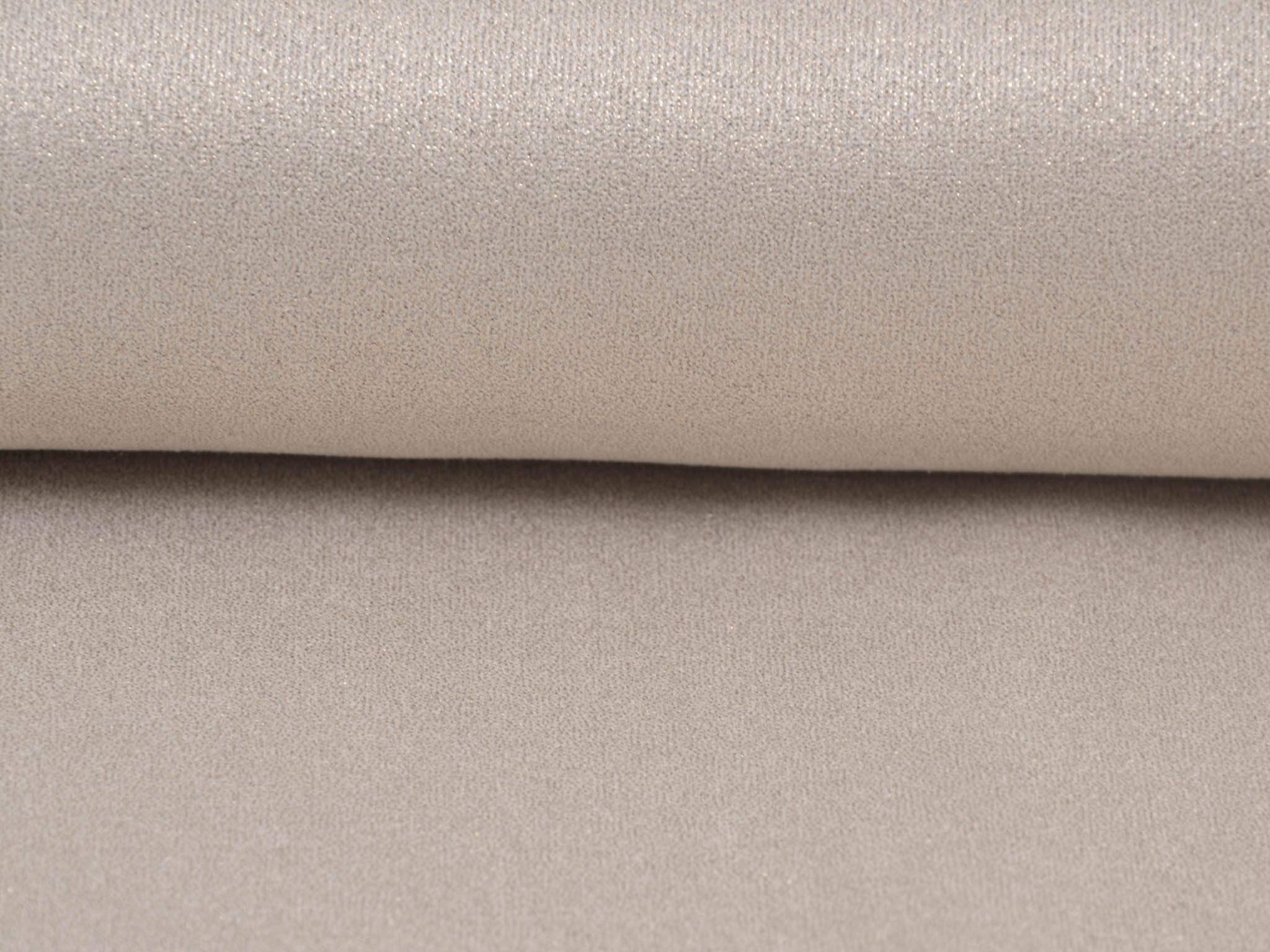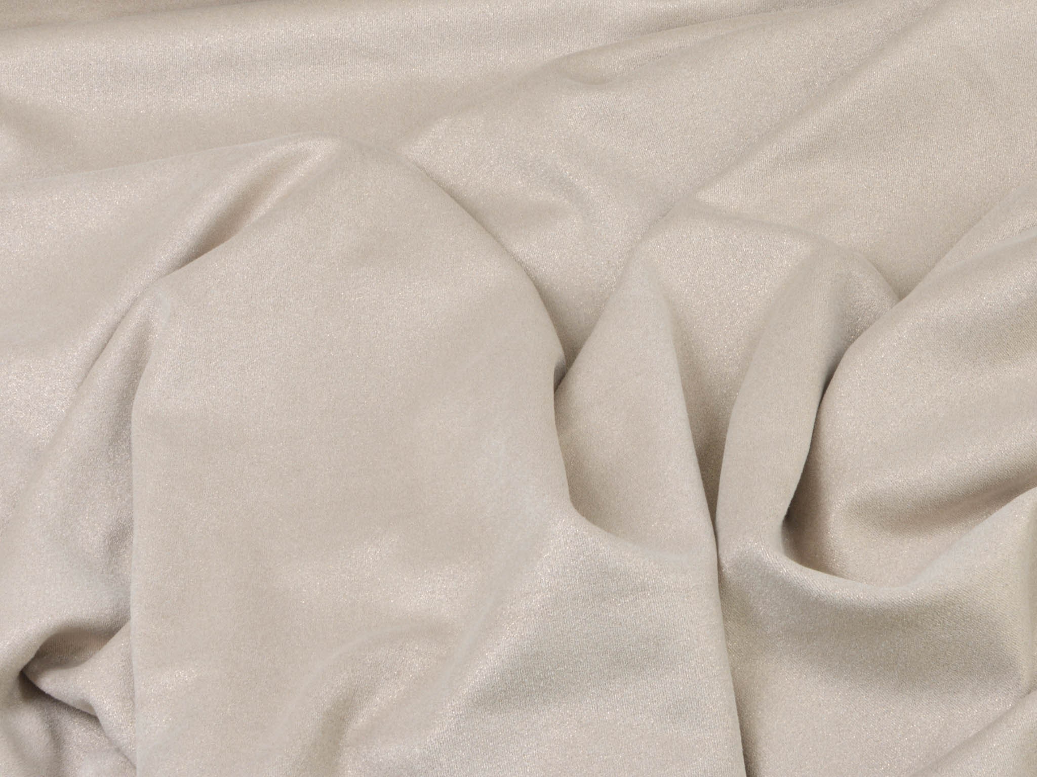 Dünner, weich fallender Velourstoff in beige mit Glitzer in gold. Der Stoff fühlt sich angenehm weich an. Du kannst daraus Leggings, T-Shirts, Röcke, Kleider und viele mehr nähen. Er ist sehr elastisch.