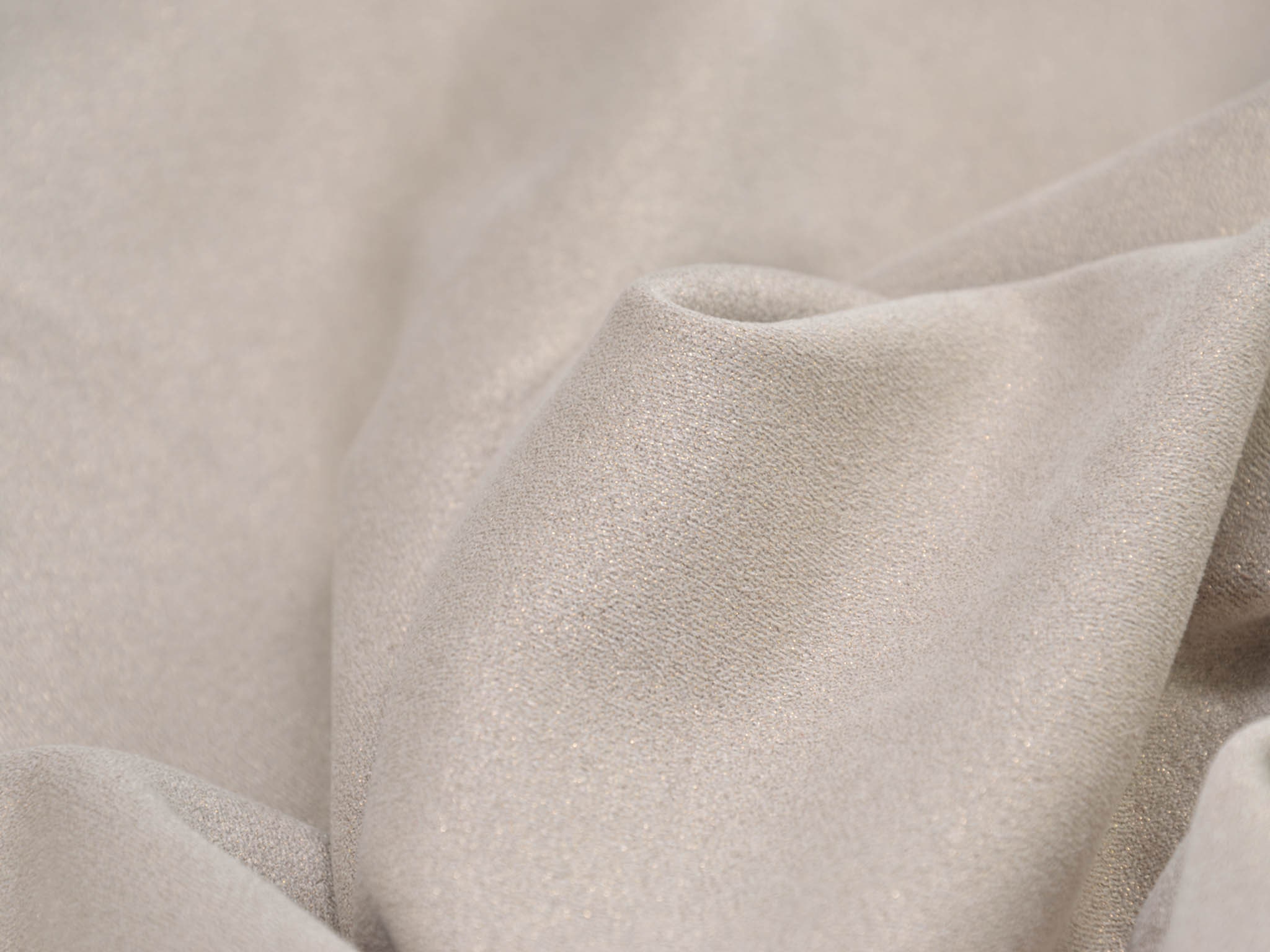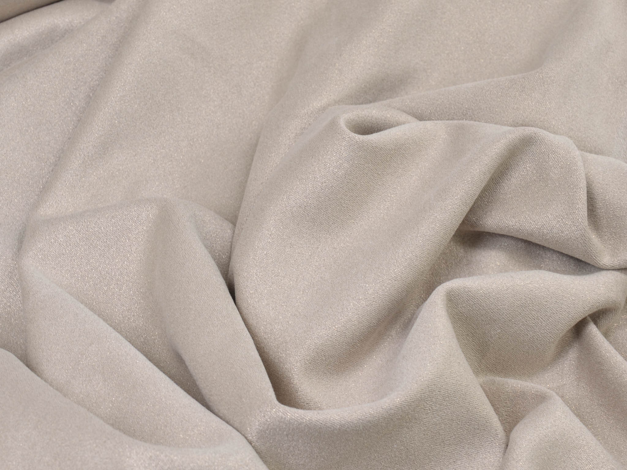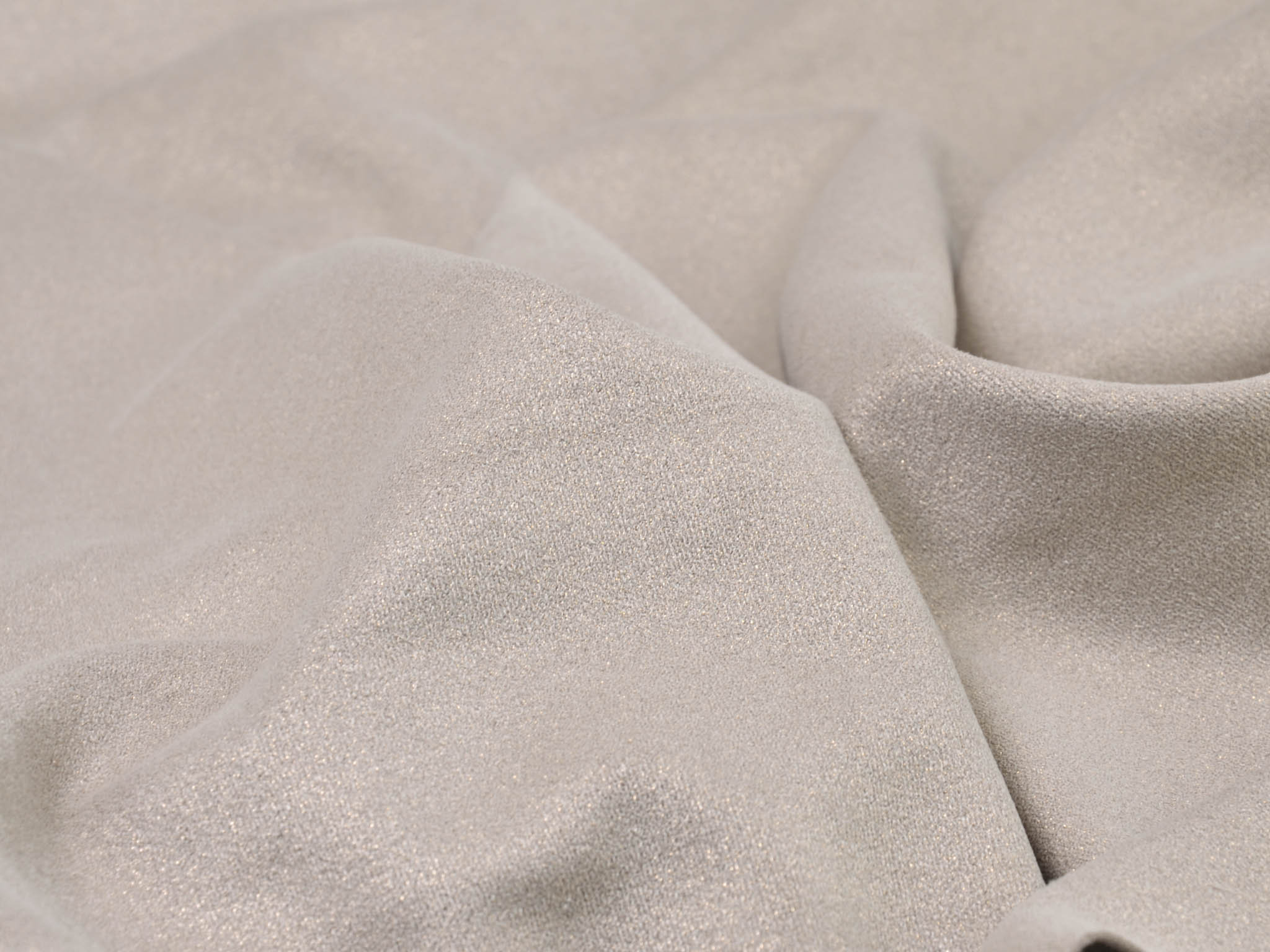 Dünner, weich fallender Velourstoff in beige mit Glitzer in gold. Der Stoff fühlt sich angenehm weich an. Du kannst daraus Leggings, T-Shirts, Röcke, Kleider und viele mehr nähen. Er ist sehr elastisch.