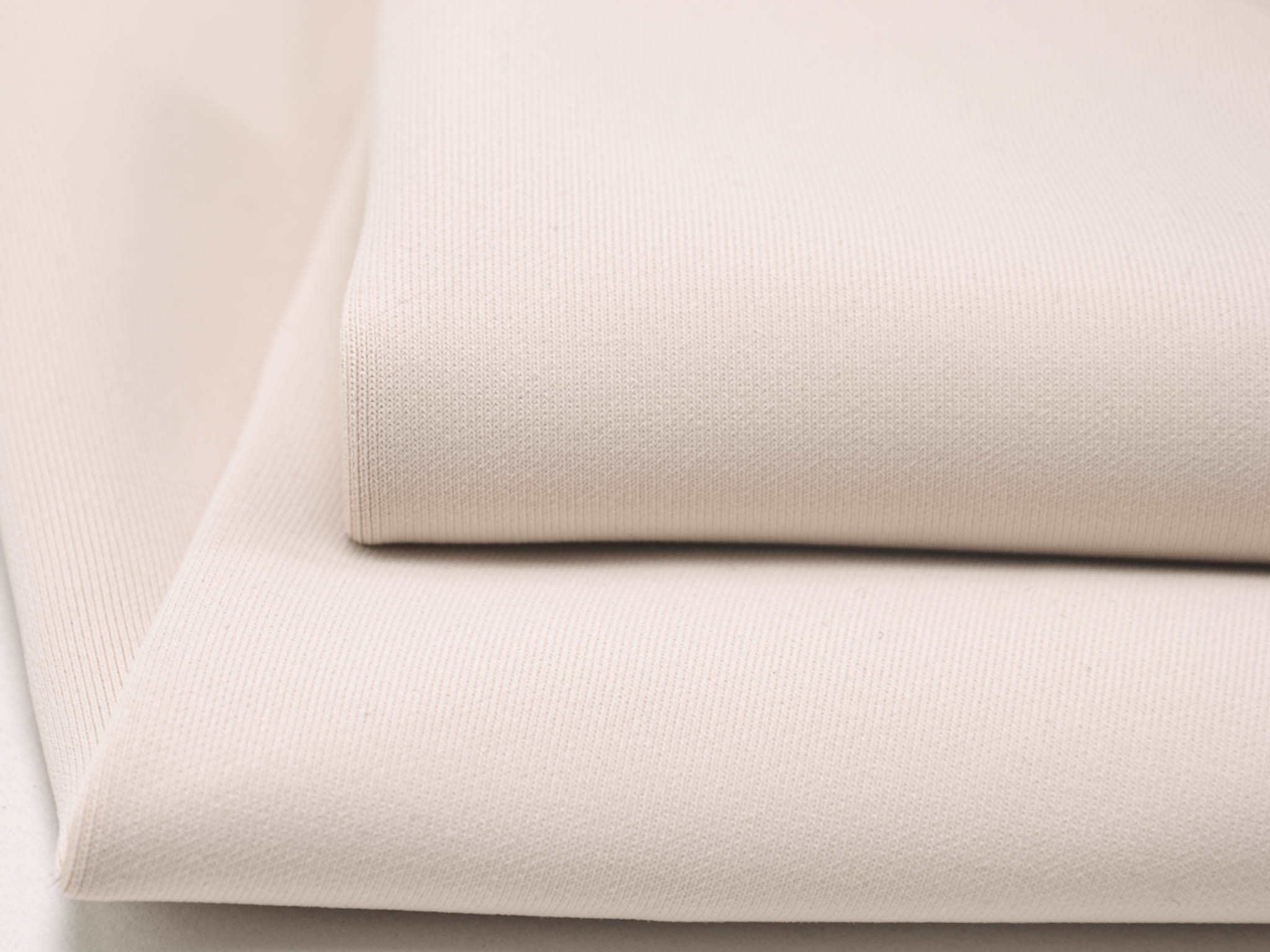 Bi-elastischer Jersey in beige. Du kannst aus dem Jersey tolle Hosen, Röcke und Kleider nähen. Er ist etwas dicker und fester als ein Standard Baumwolljersey.