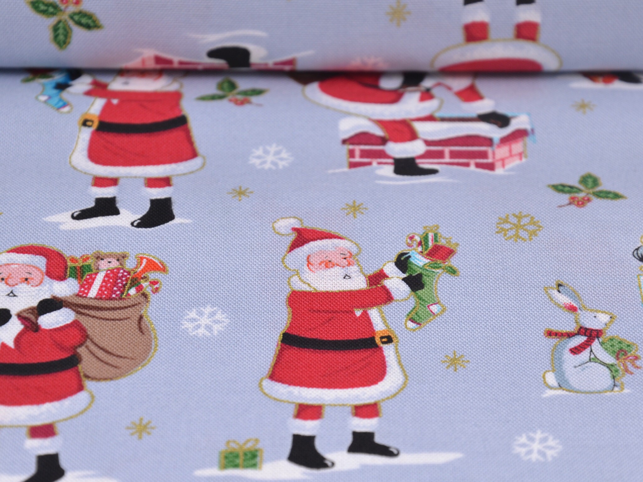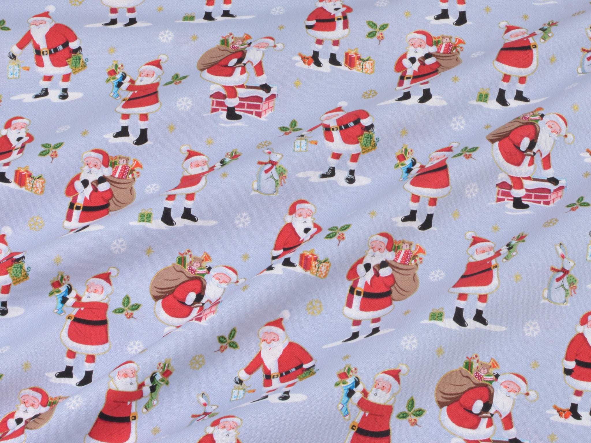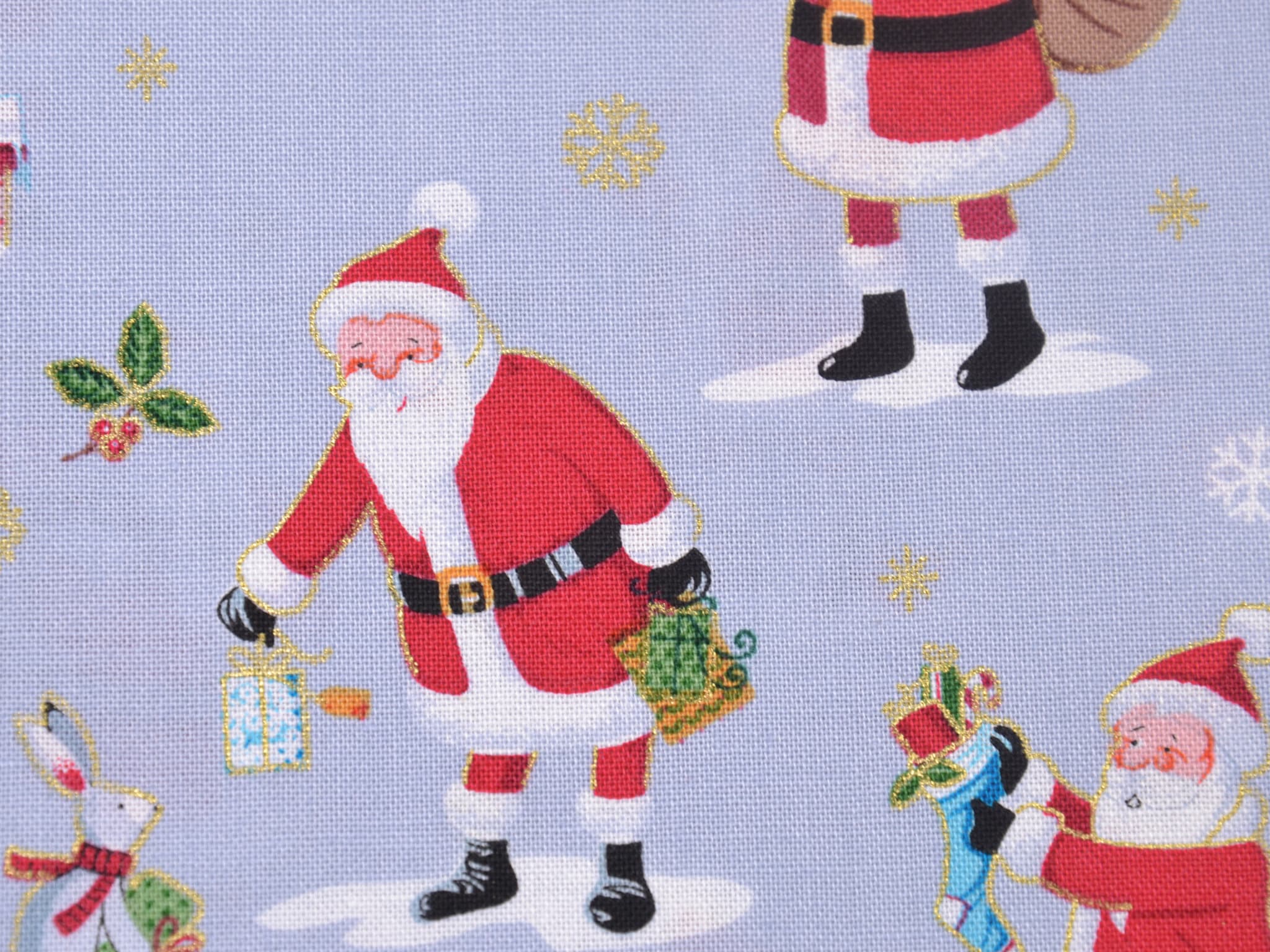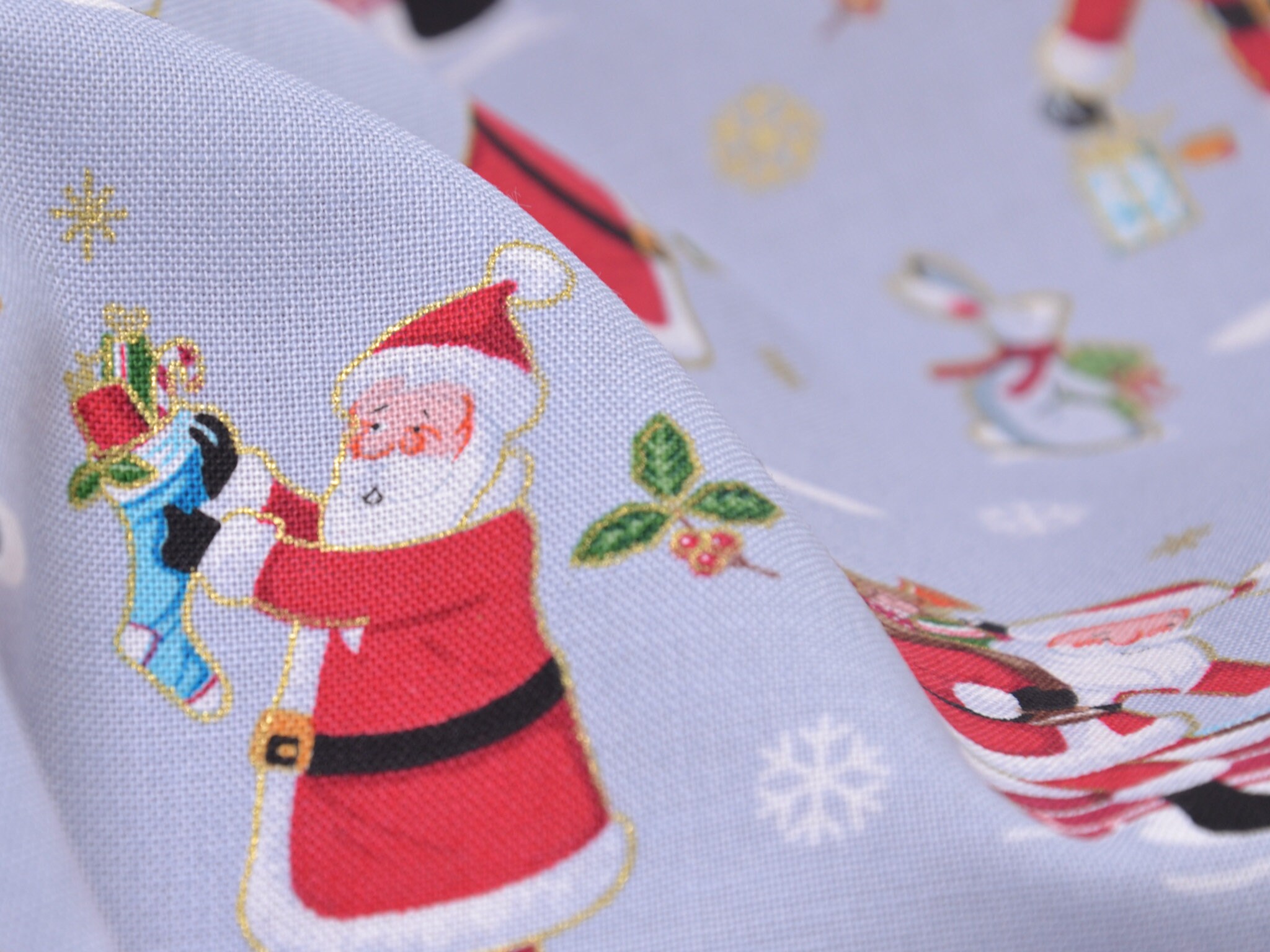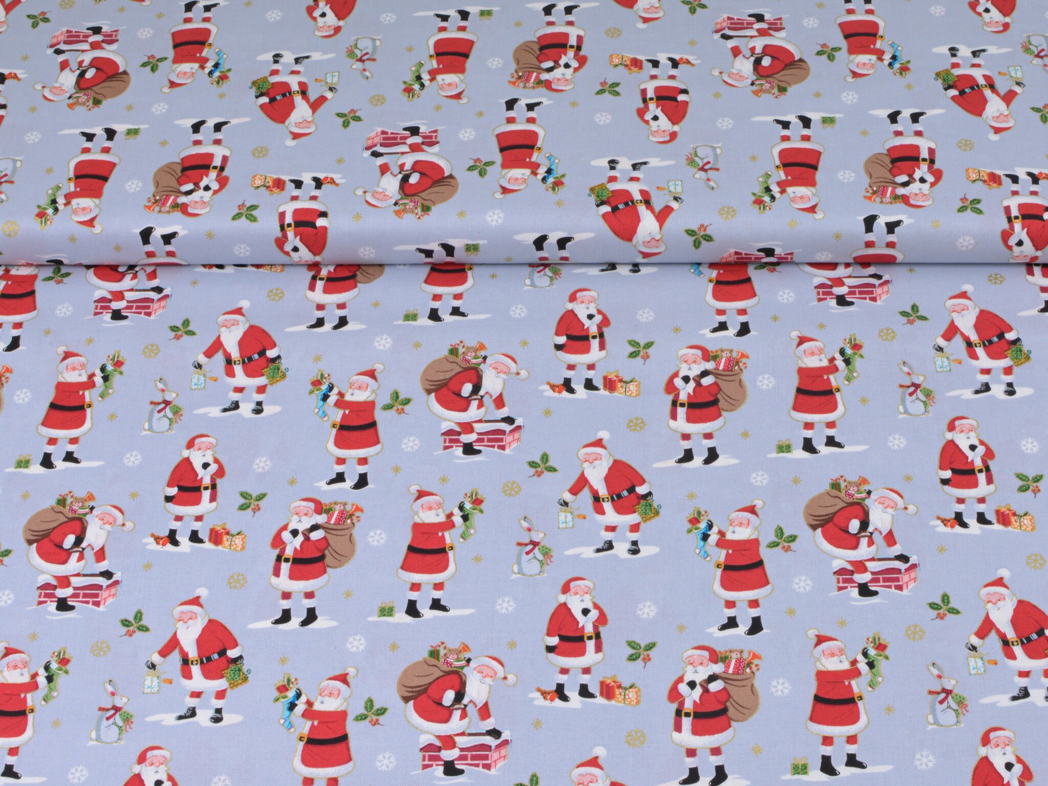 Hochwertiger Baumwollstoff der Firma Makower UK. Der Patchworkstoff aus Baumwolle ist hellgrau mit roten Weihnachtsmännern. Du kannst daraus Kissen, Utensilos, Taschenfutter und vieles mehr nähen.
