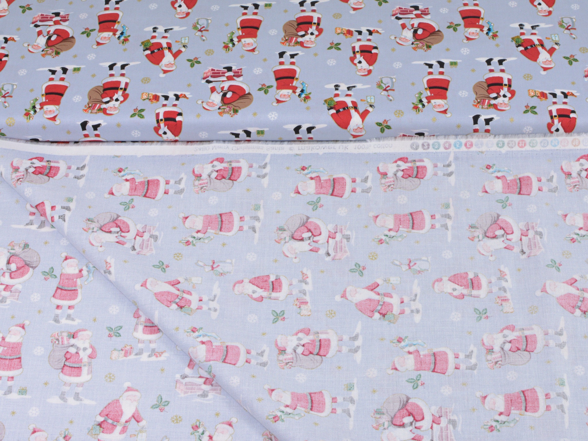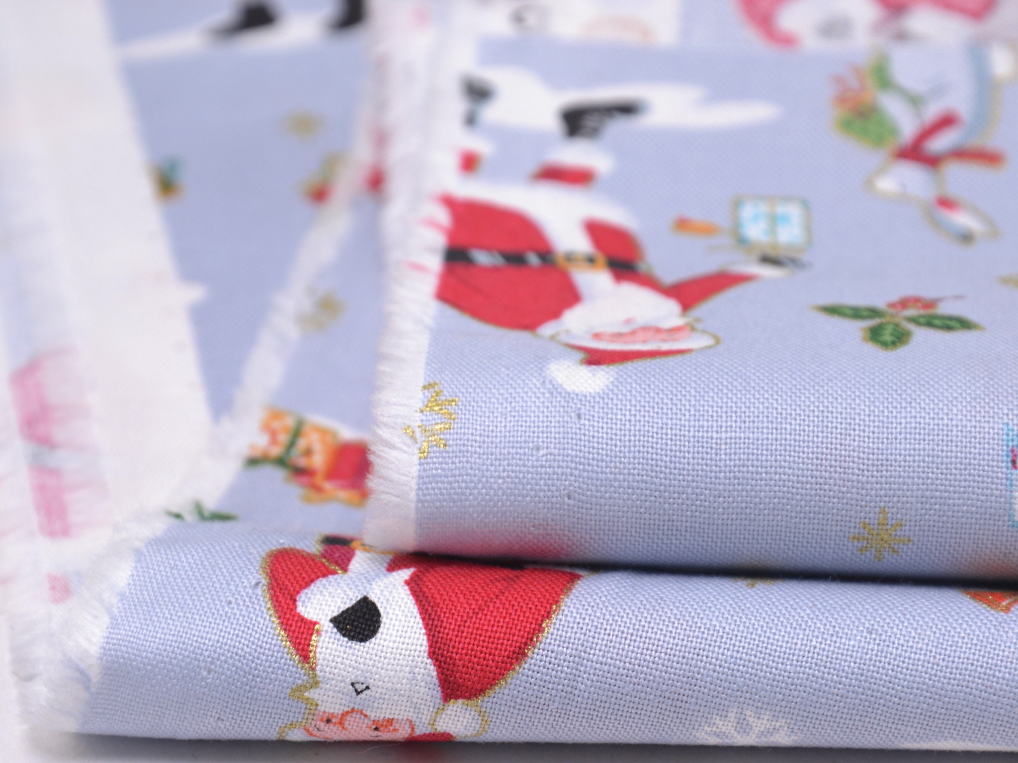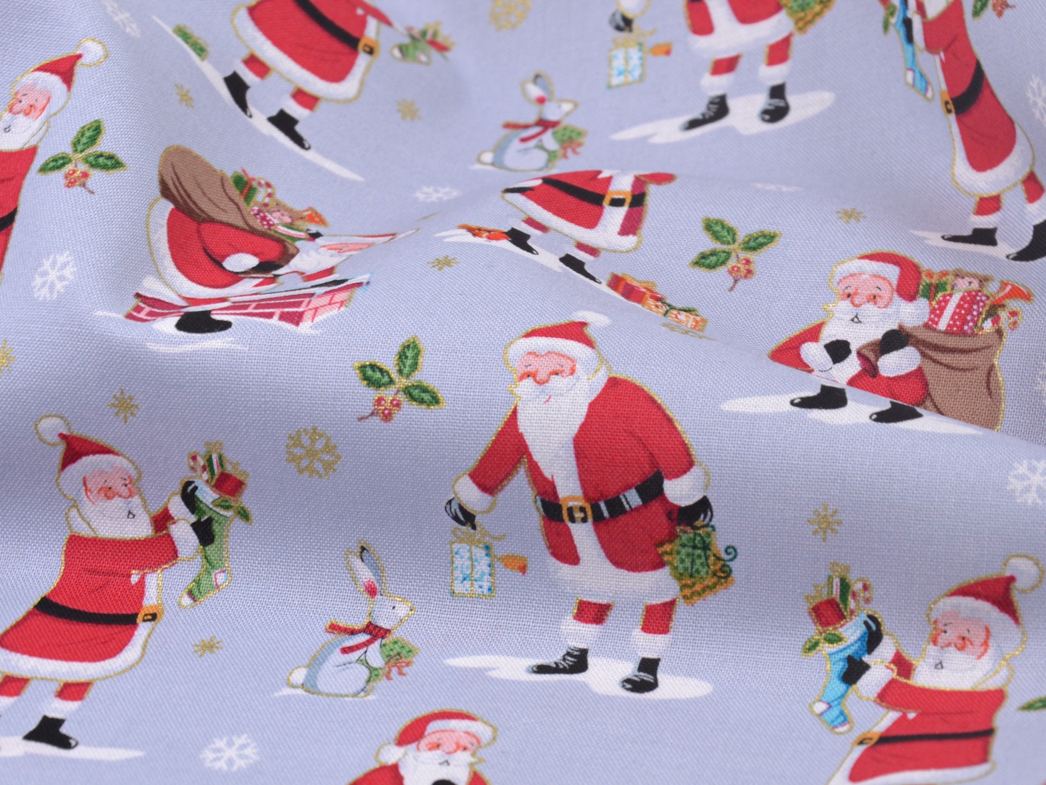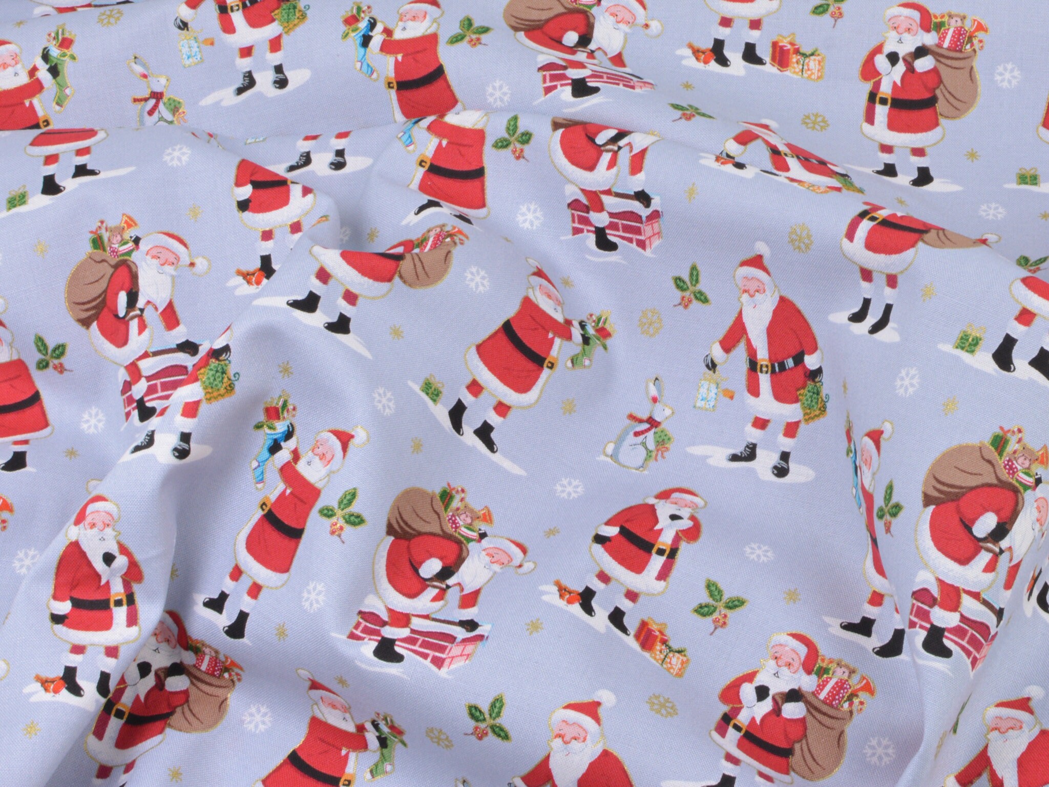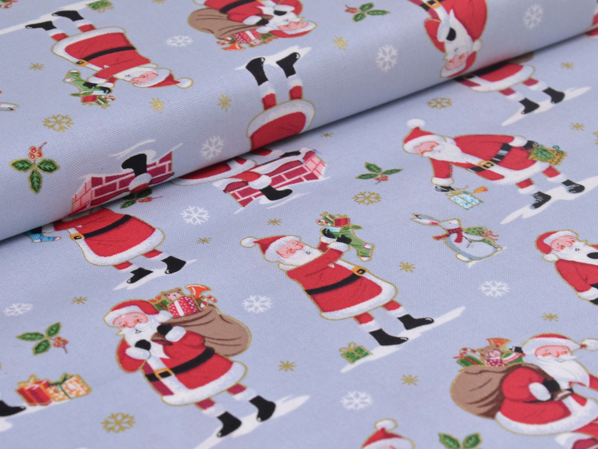 Hochwertiger Baumwollstoff der Firma Makower UK. Der Patchworkstoff aus Baumwolle ist hellgrau mit roten Weihnachtsmännern. Du kannst daraus Kissen, Utensilos, Taschenfutter und vieles mehr nähen.