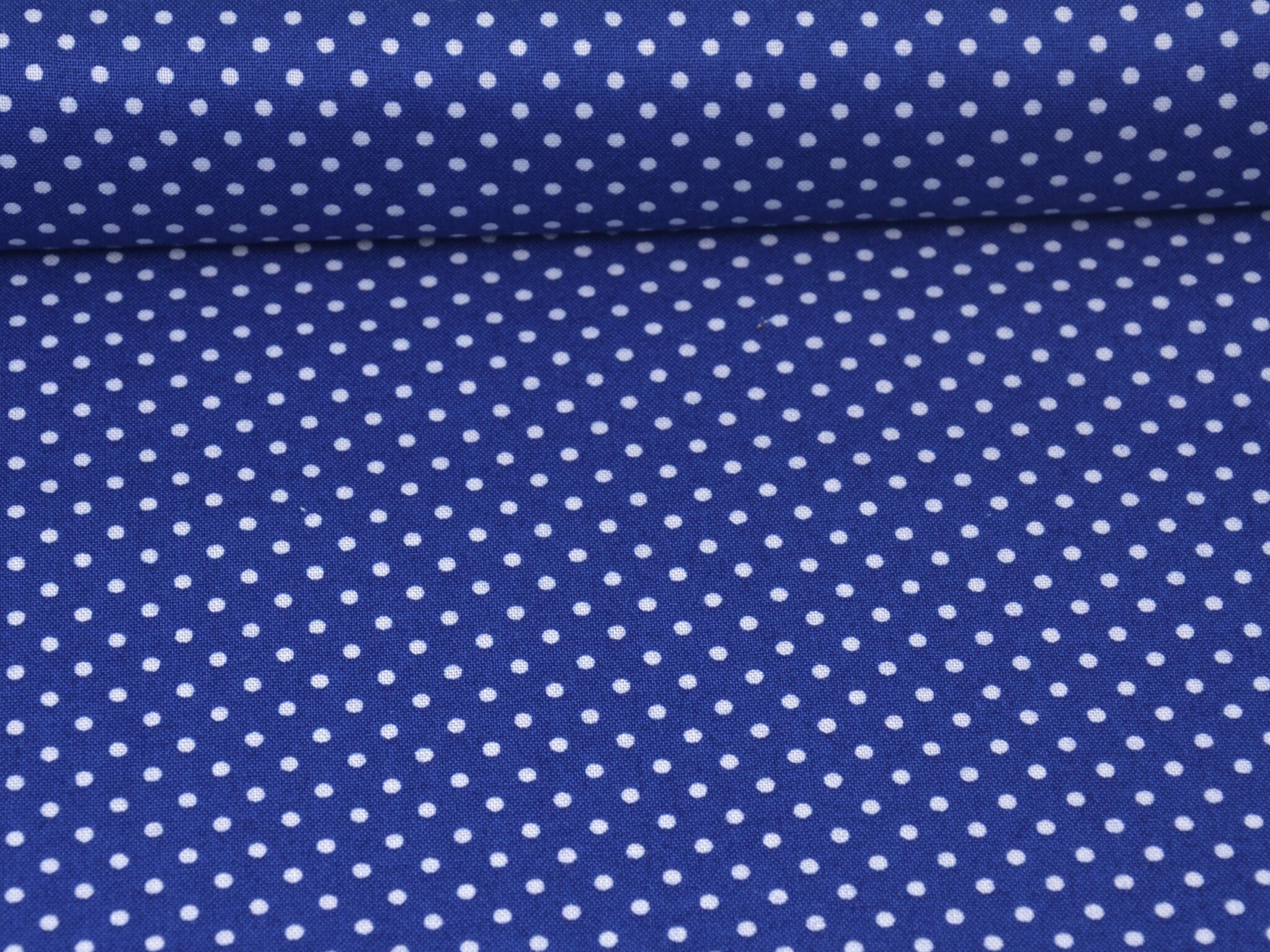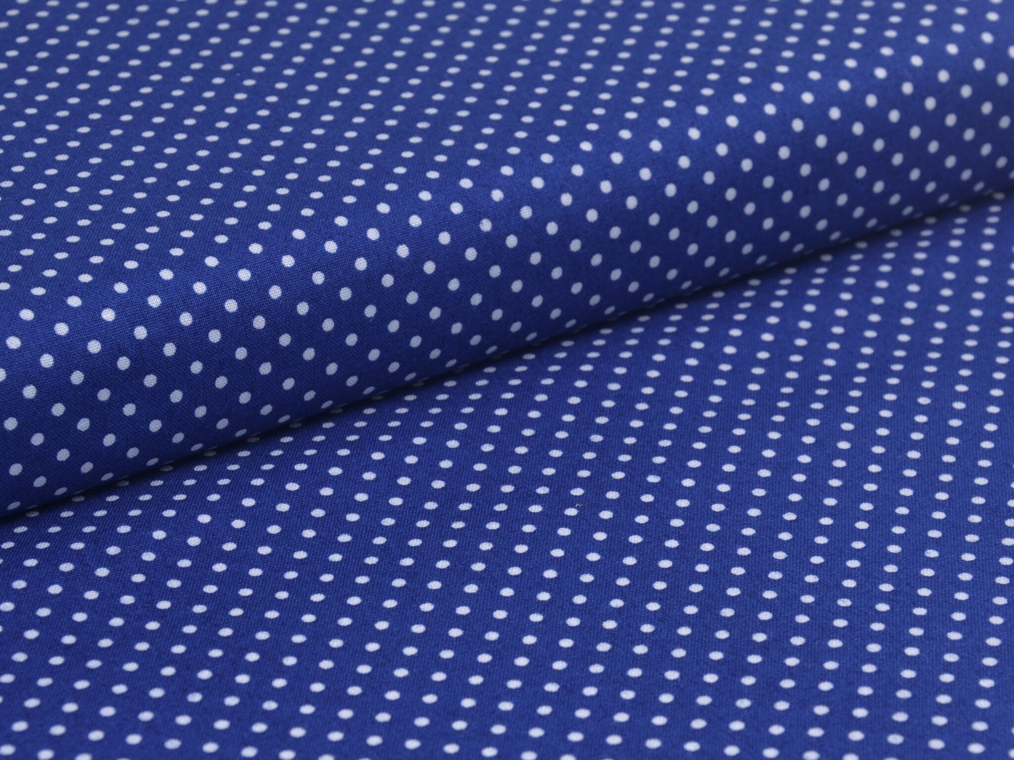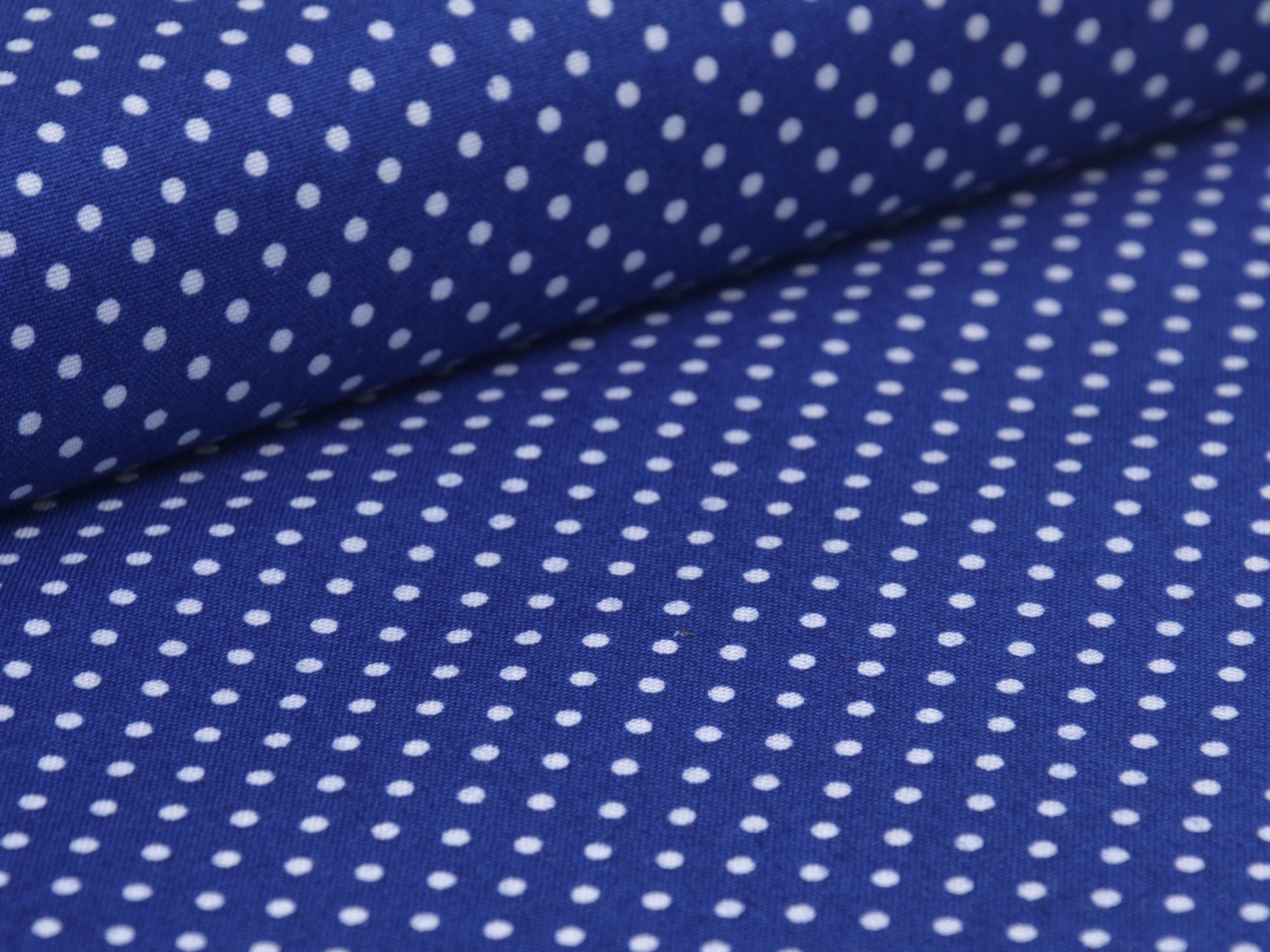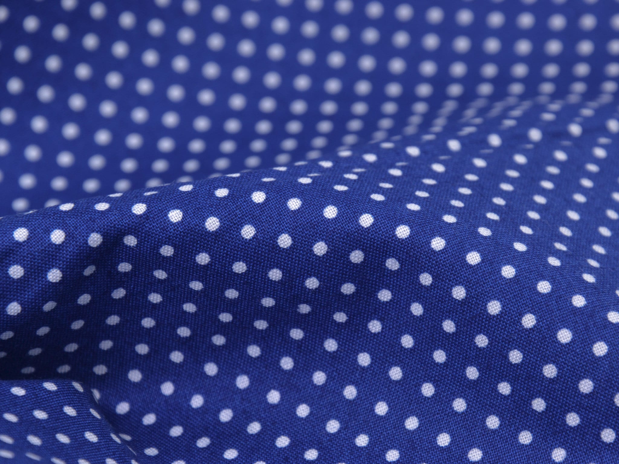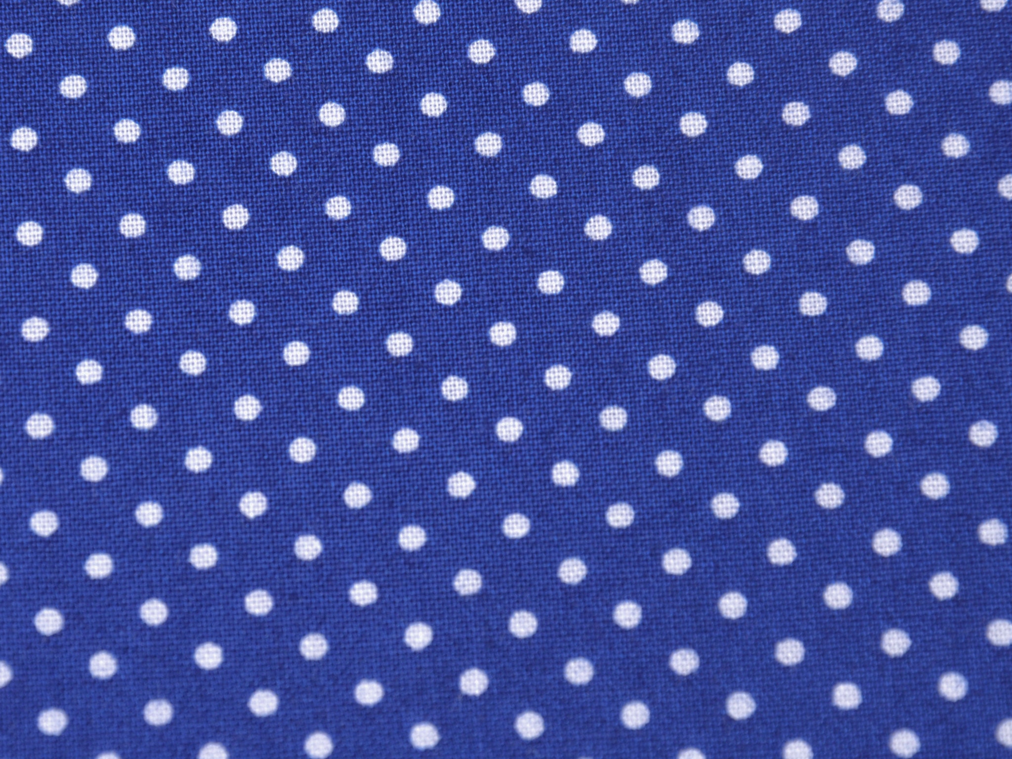 Hochwertiger Baumwollstoff der Firma Makower UK. Der Patchworkstoff aus Baumwolle ist dunkelblau mit weißen Punkten. Du kannst daraus Kissen, Utensilos, Taschenfutter und vieles mehr nähen.