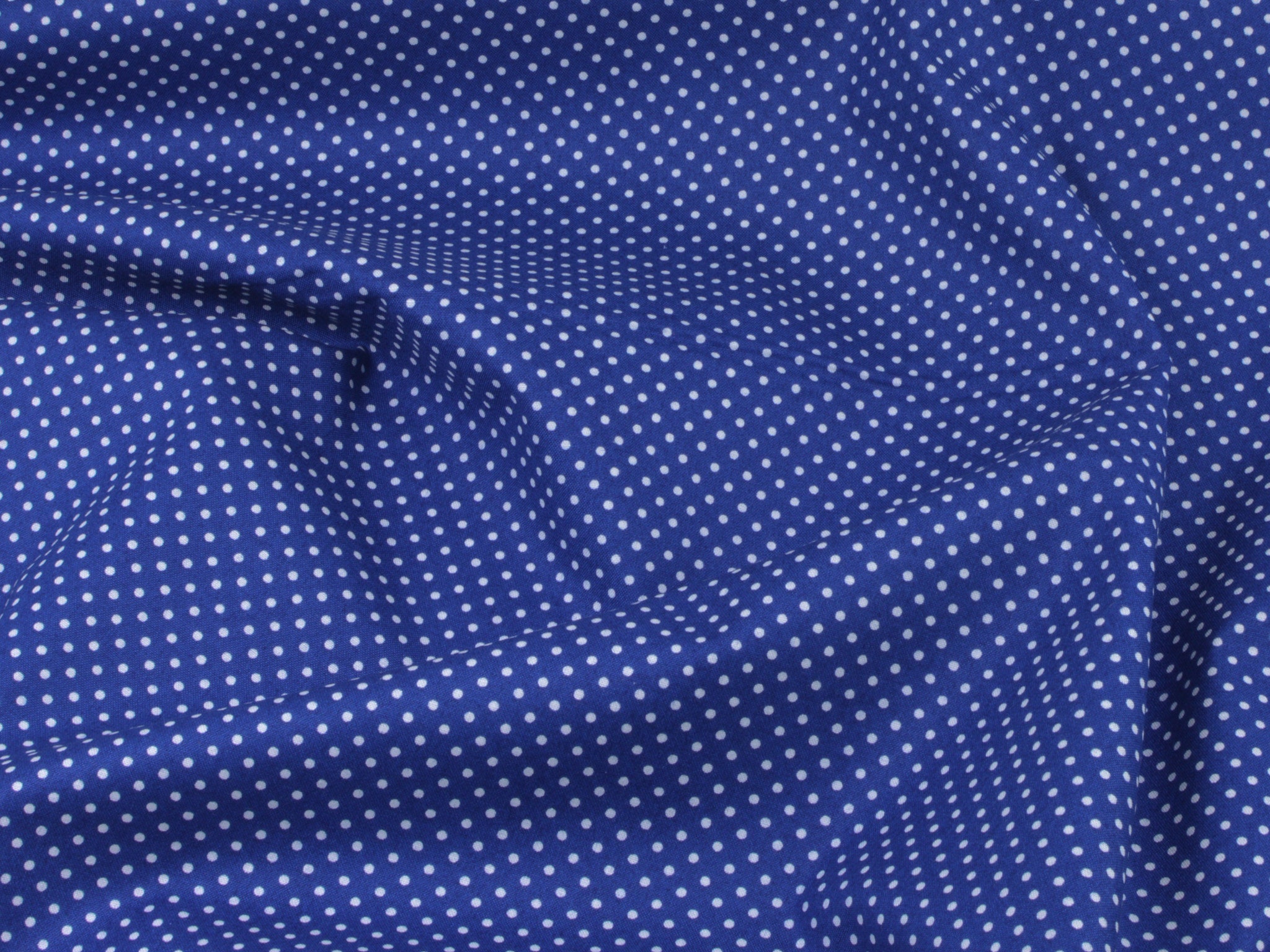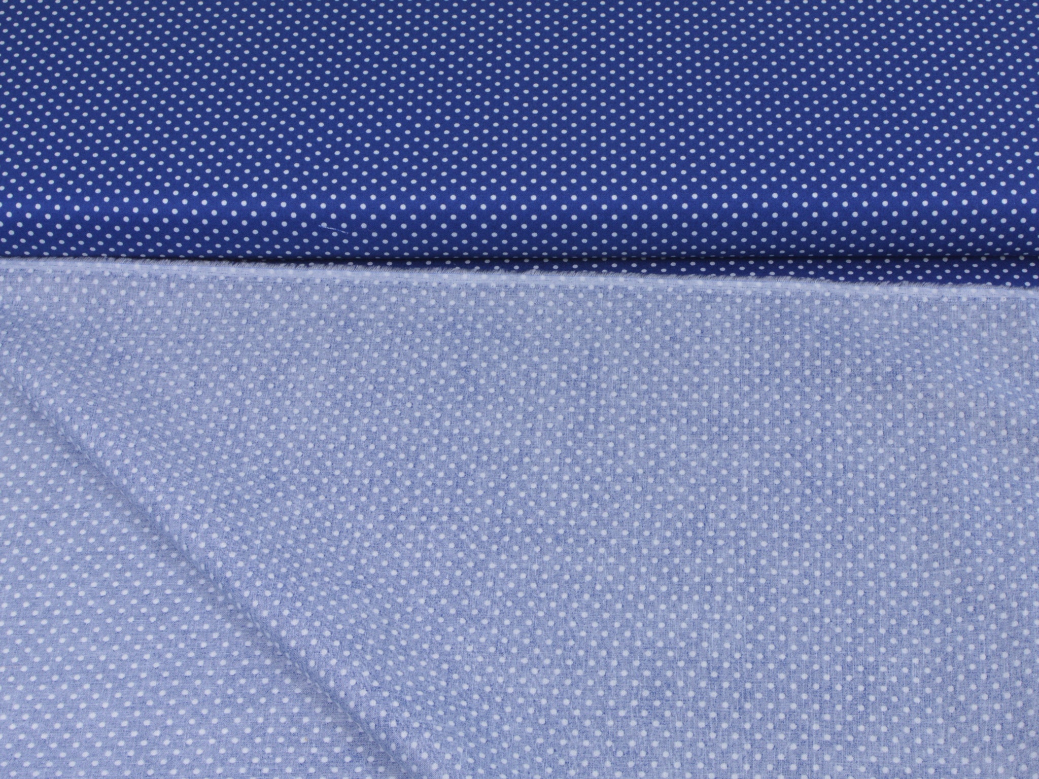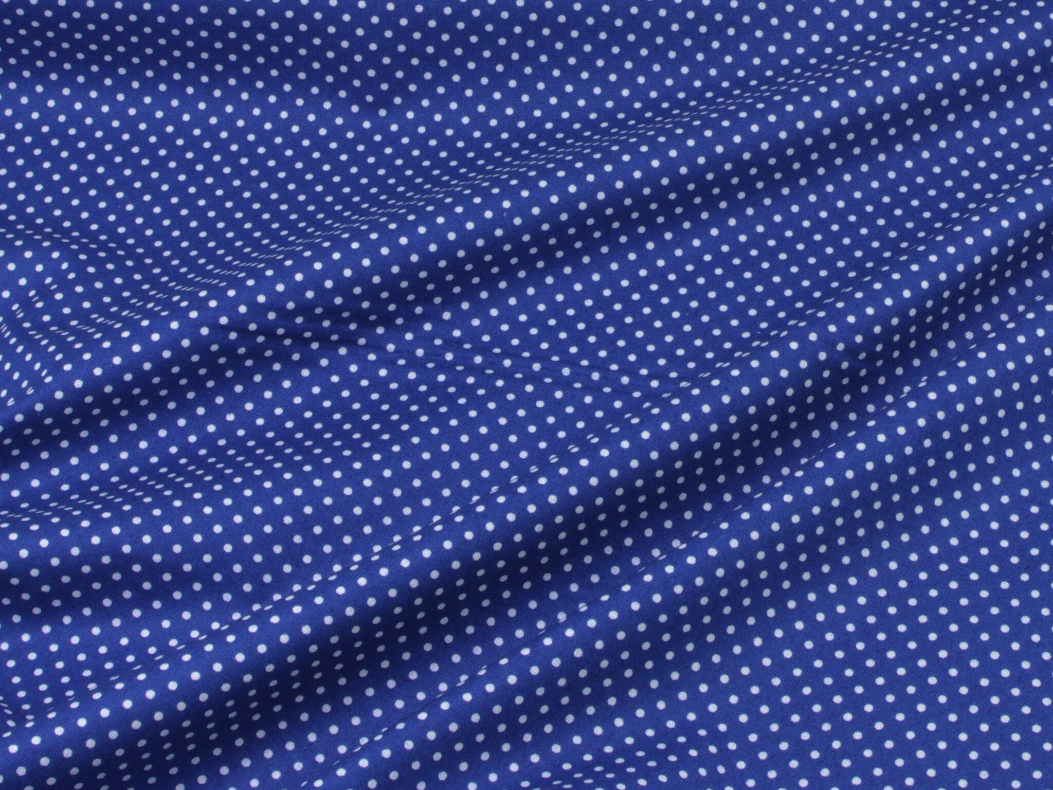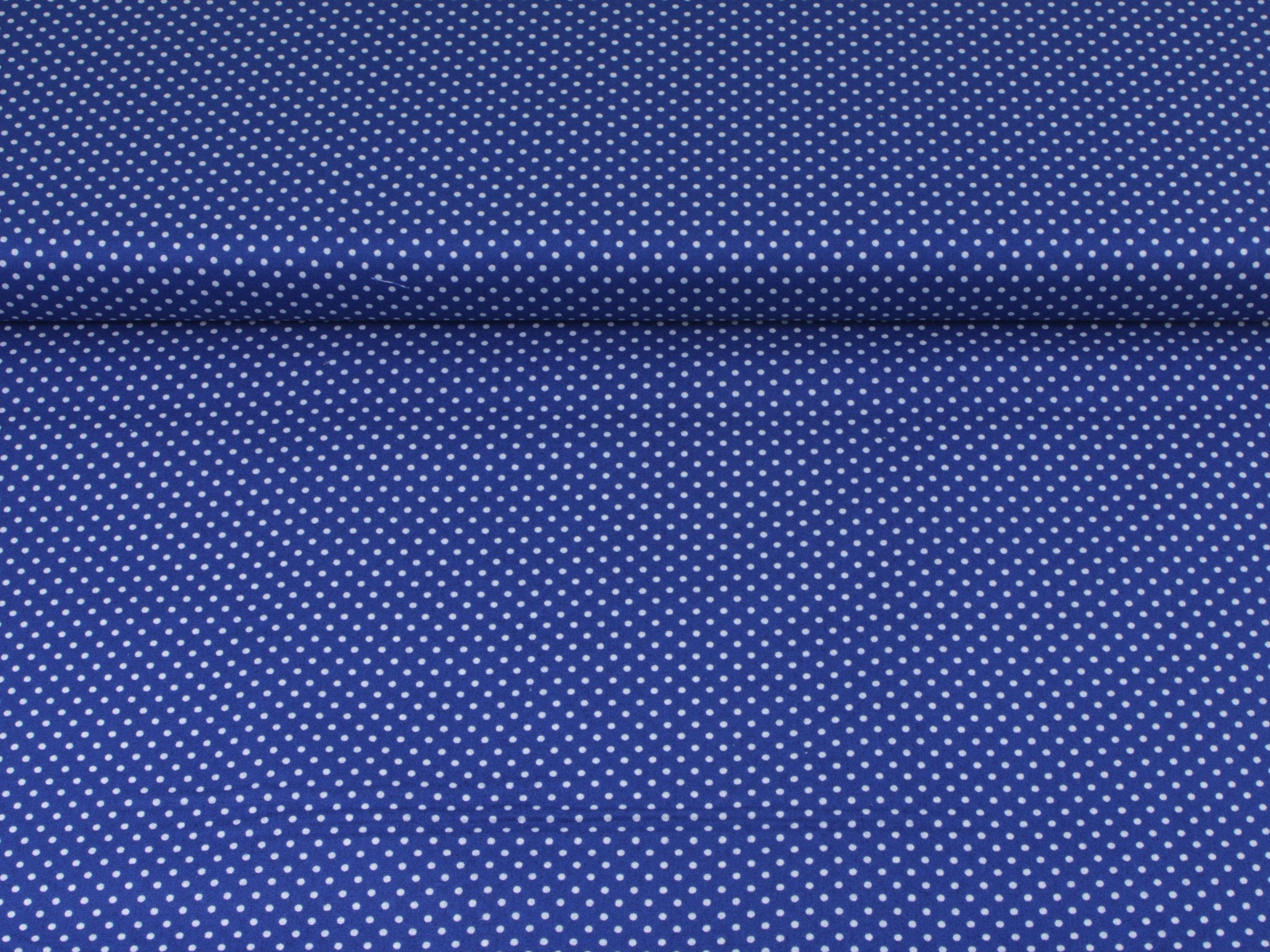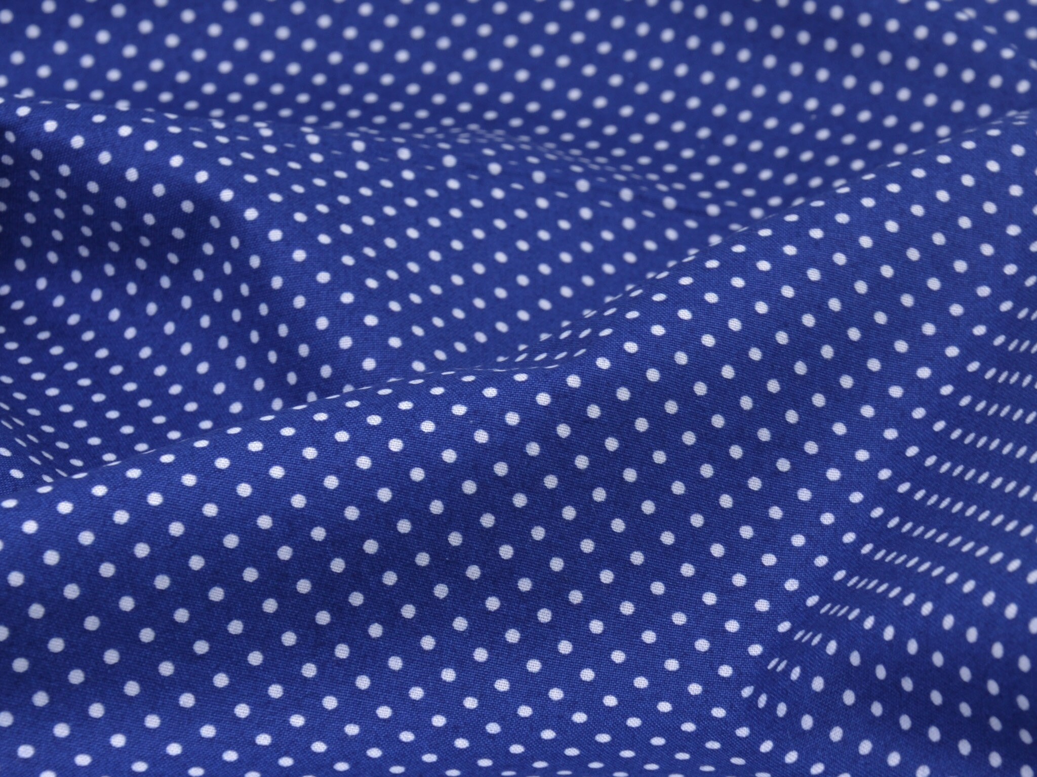 Hochwertiger Baumwollstoff der Firma Makower UK. Der Patchworkstoff aus Baumwolle ist dunkelblau mit weißen Punkten. Du kannst daraus Kissen, Utensilos, Taschenfutter und vieles mehr nähen.