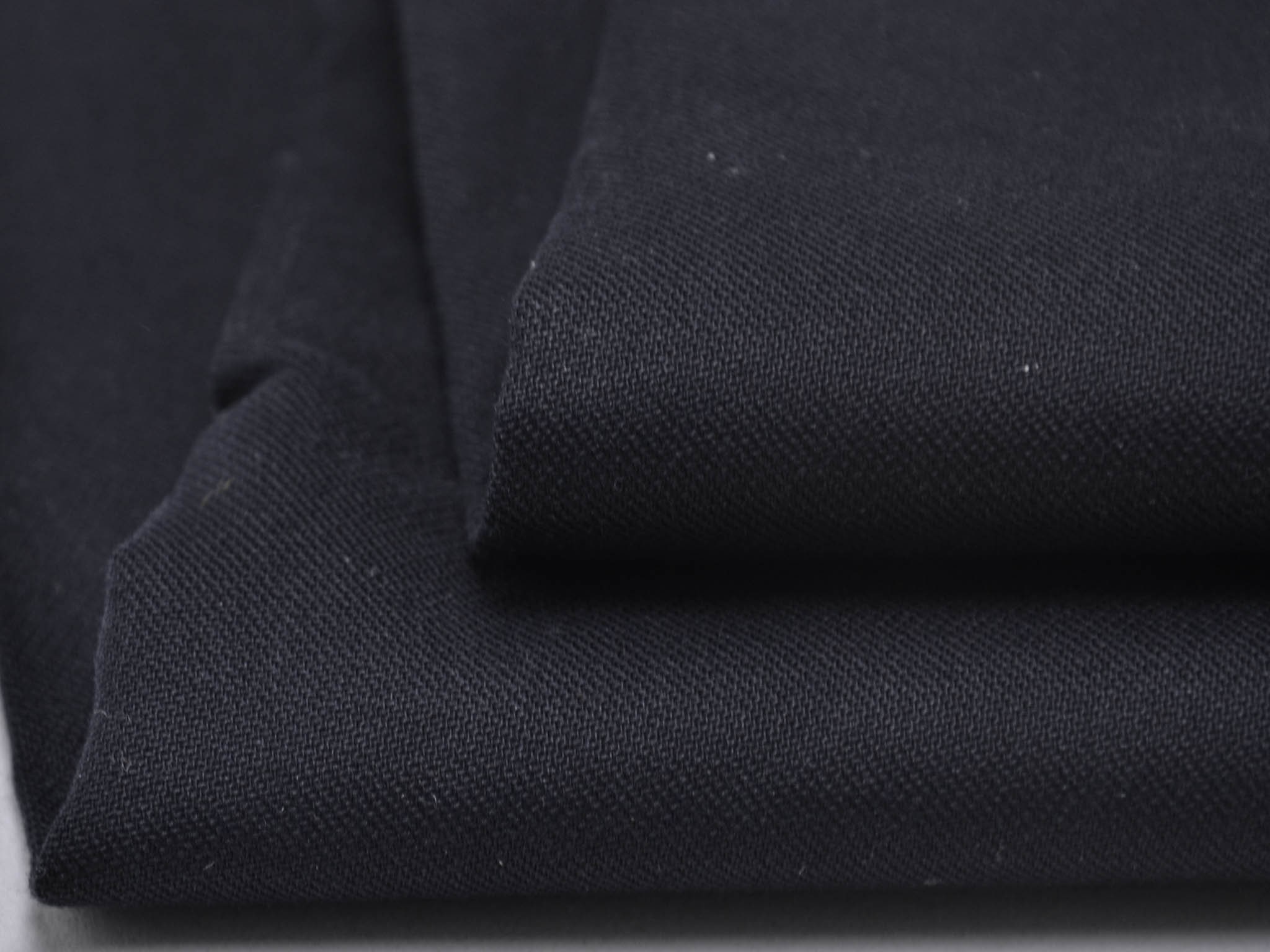 Stretch denim fabric in dark blue. This thin cotton fabric is perfect for sewing jeans, trousers, skirts, dresses, and much more.