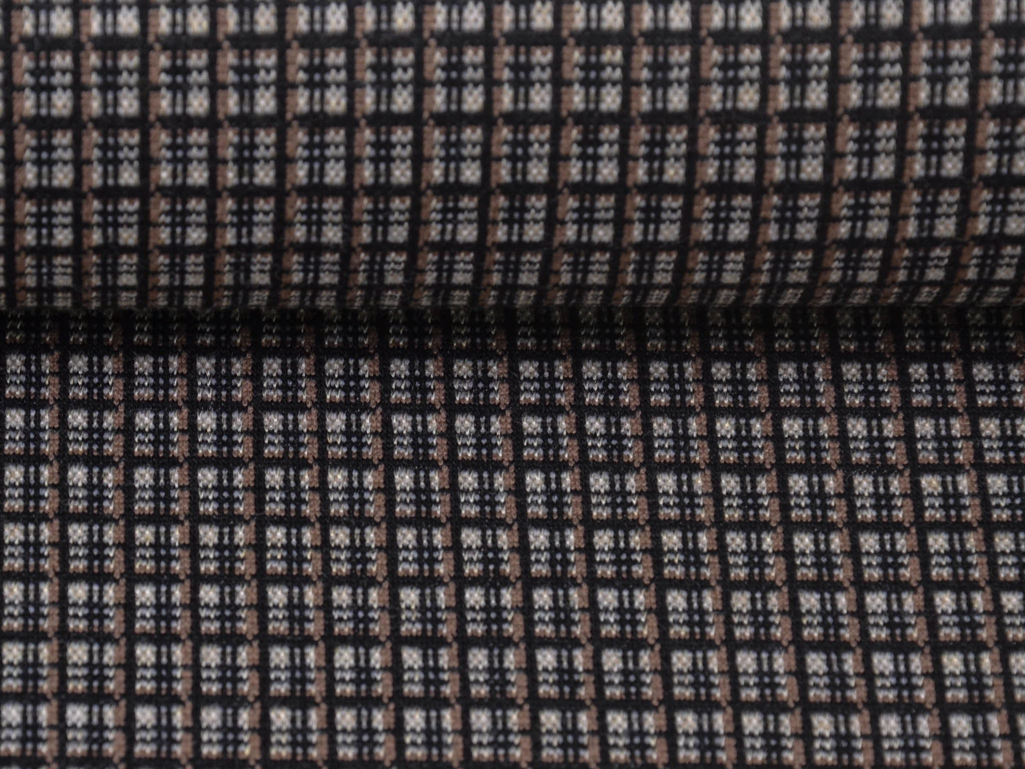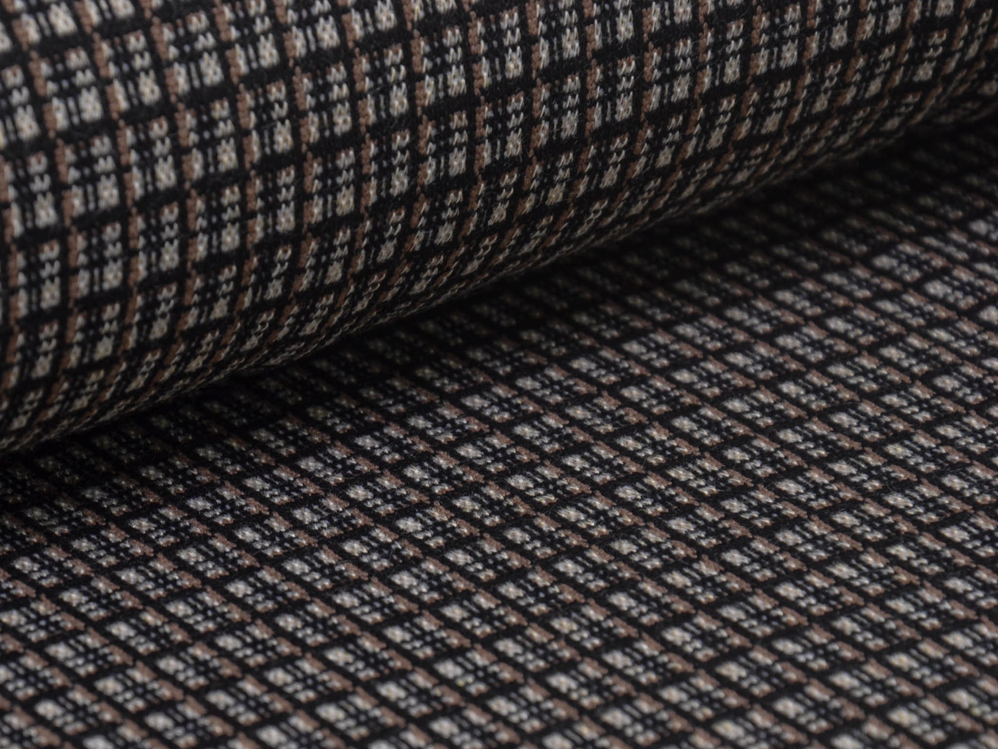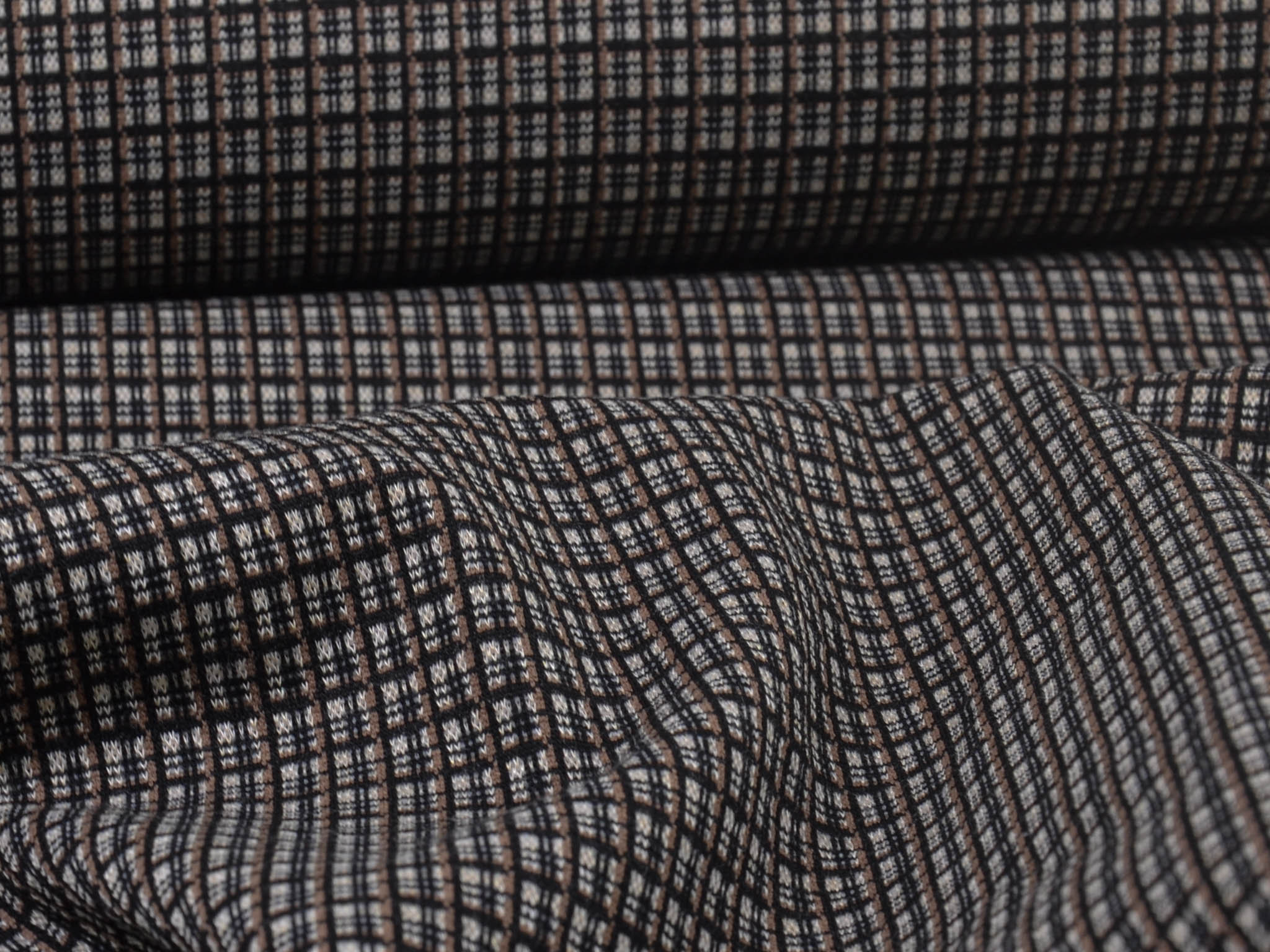 Hochwertiger, fester Jersey aus Viskose im Karomuster. Das Karo ist sehr klein und deshalb leichter in der Verarbeitung. Geeignet ist der Stoff für Hosen, Kleider und Röcke.