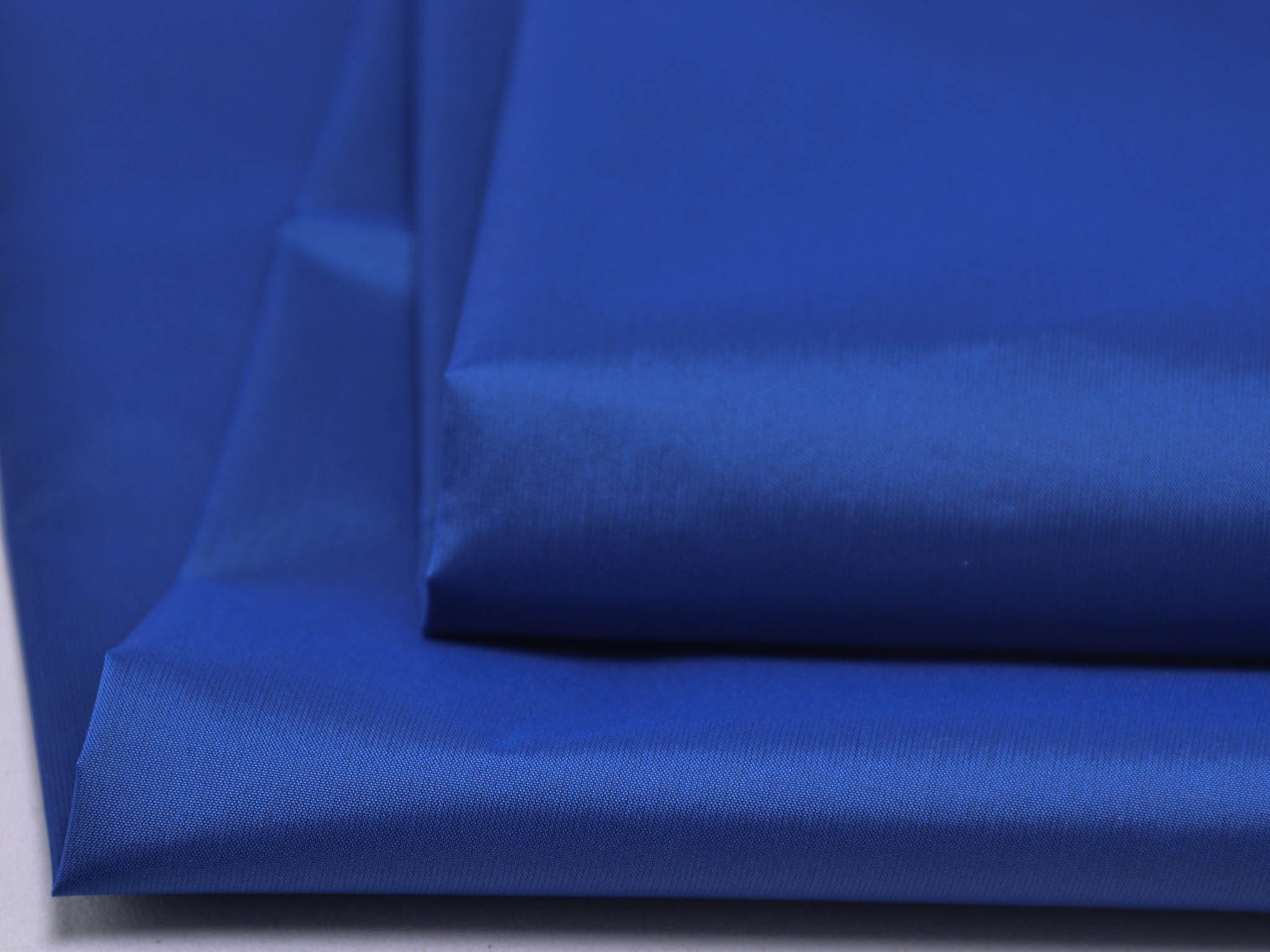 Dünnes, leichtes Polyestergewebe in uni blau. Der Stoff ist wasserabweisend. Du kannst daraus prima Regenjacken, Regencapes, Taschenfutter und vieles mehr nähen.