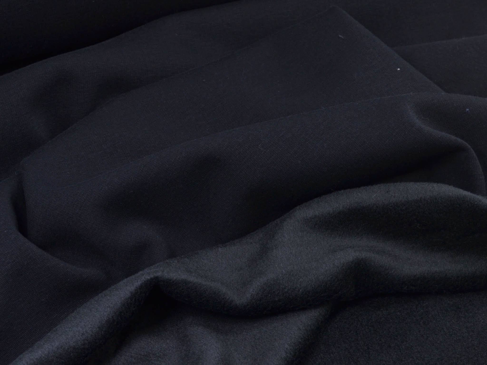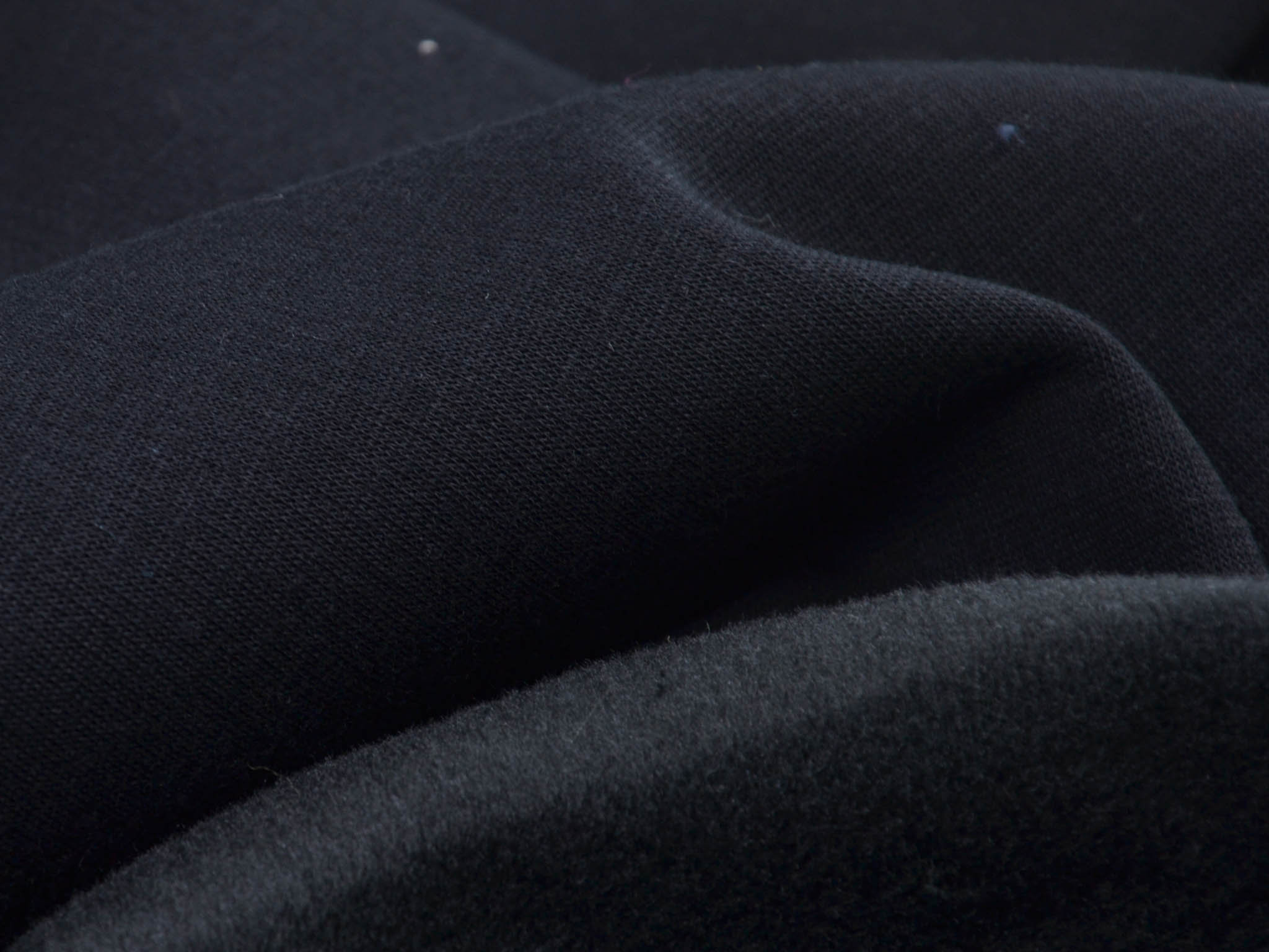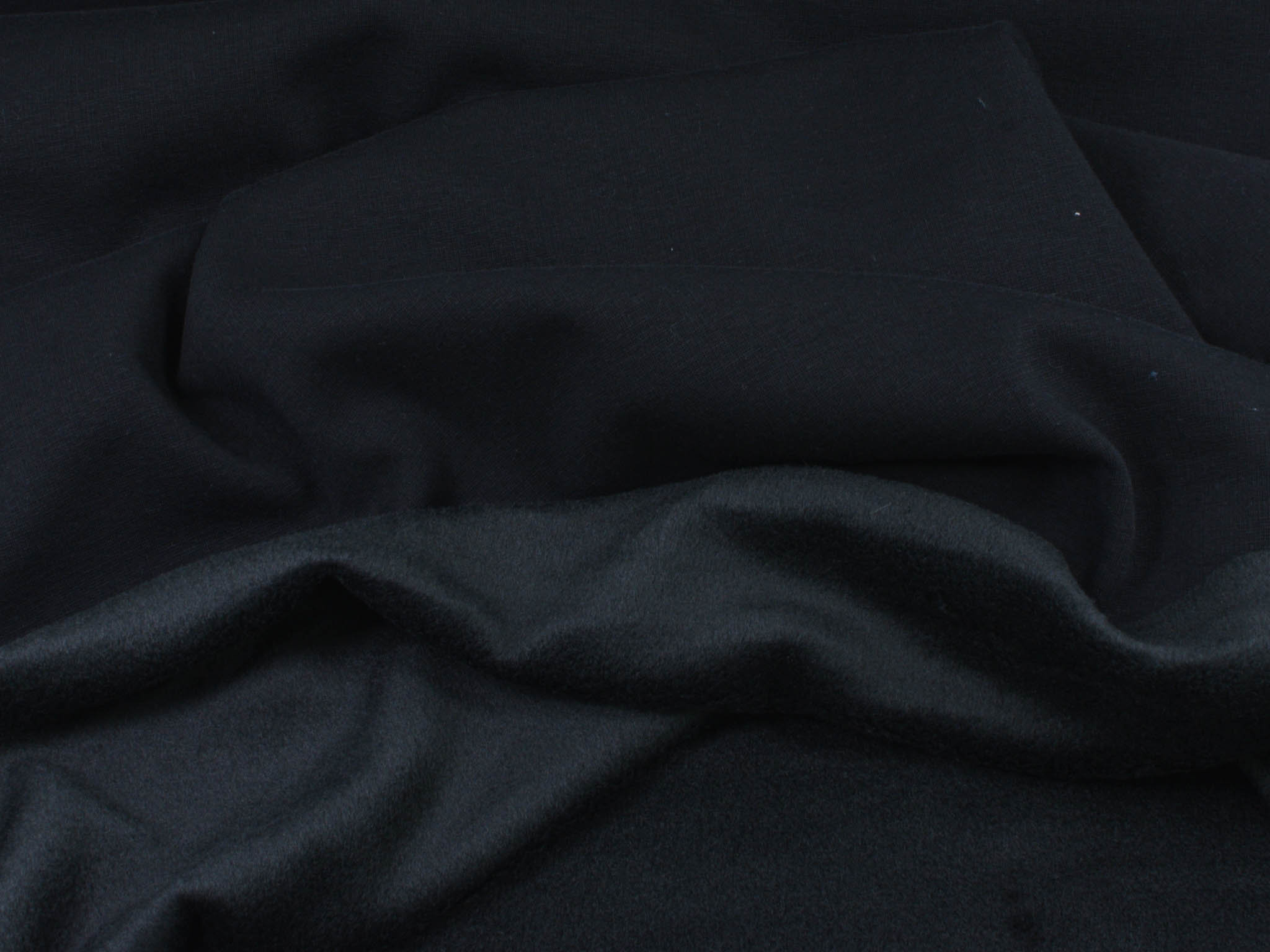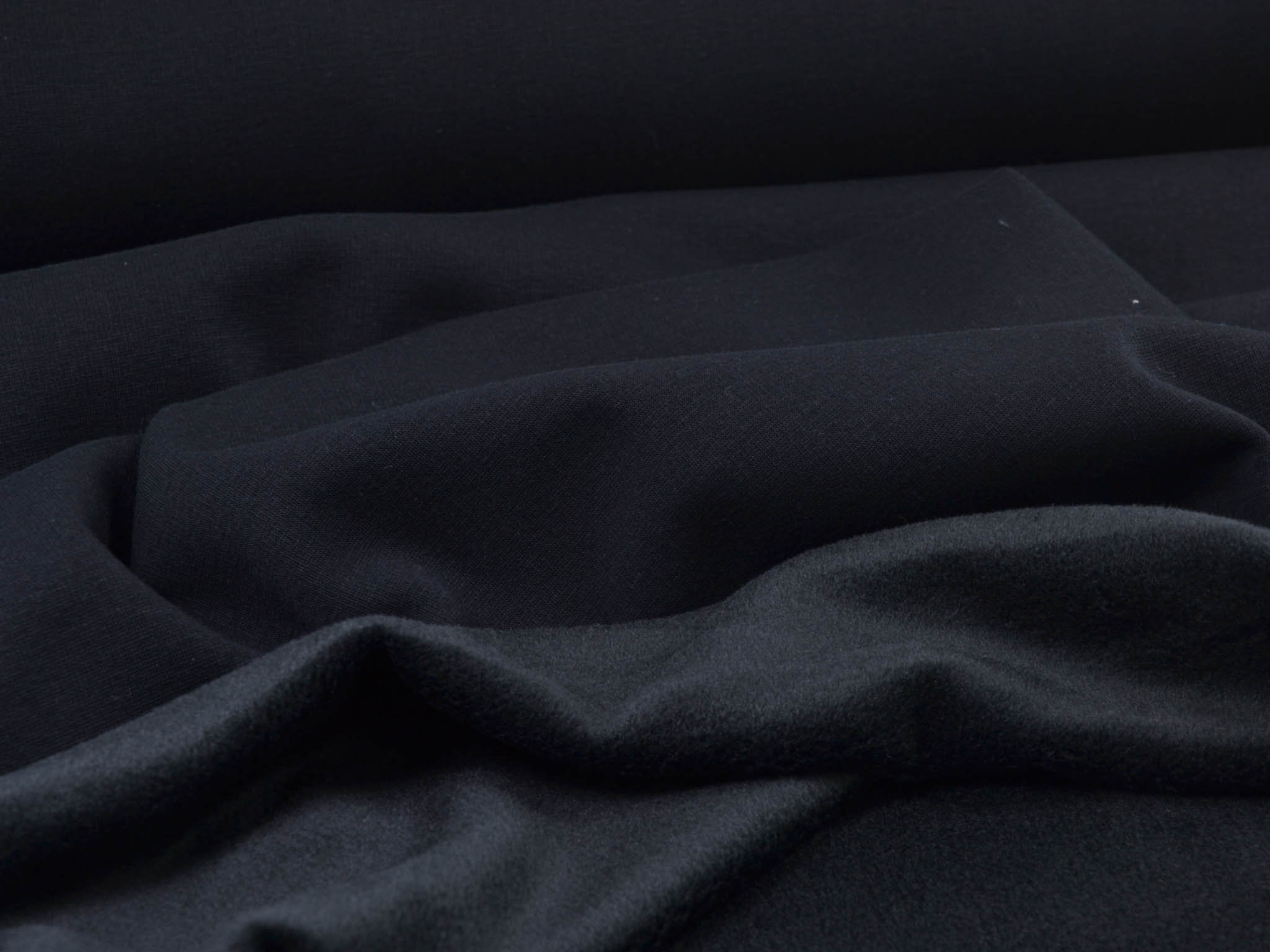 High-quality alpine fleece in solid black. The inside is fluffy and soft. You can sew sweatshirts, sweaters, bloomers, and much more from it.