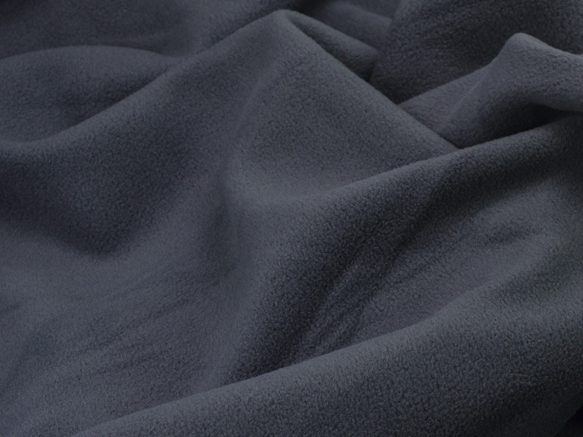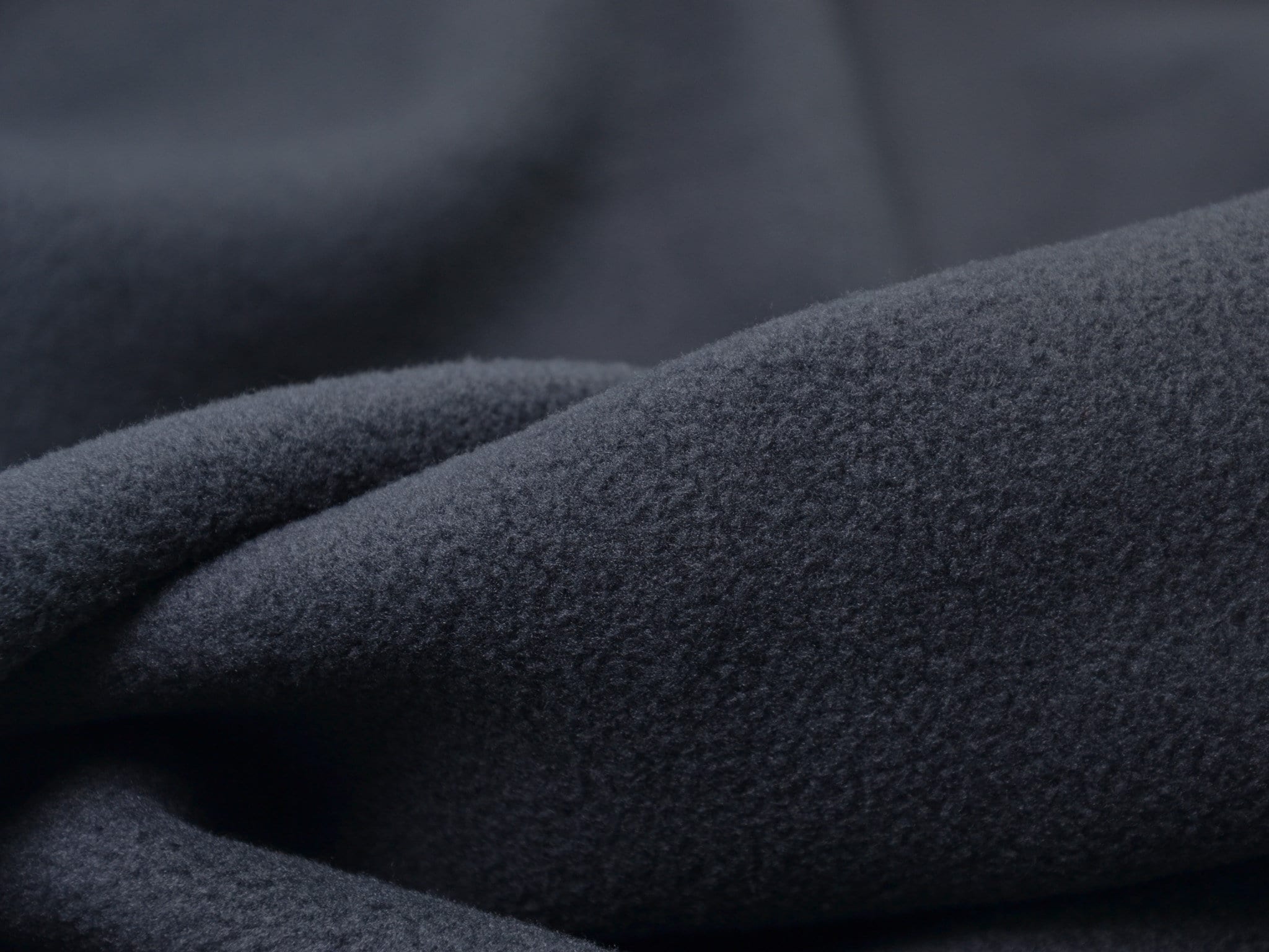Microfleece in solid dark blue. This thin fleece fabric is pleasantly soft and is used for sewing fleece jackets, blankets, sweaters, sleeping bags, and much more.