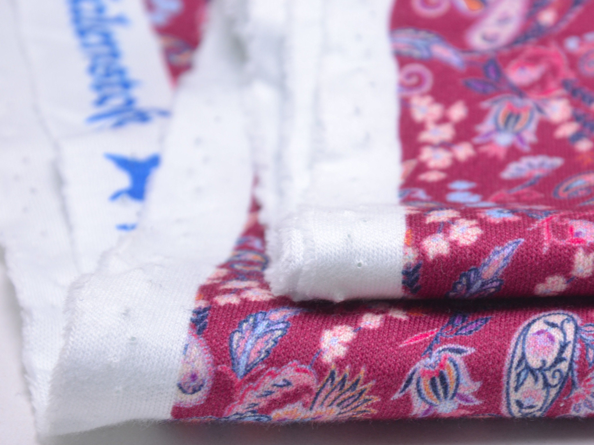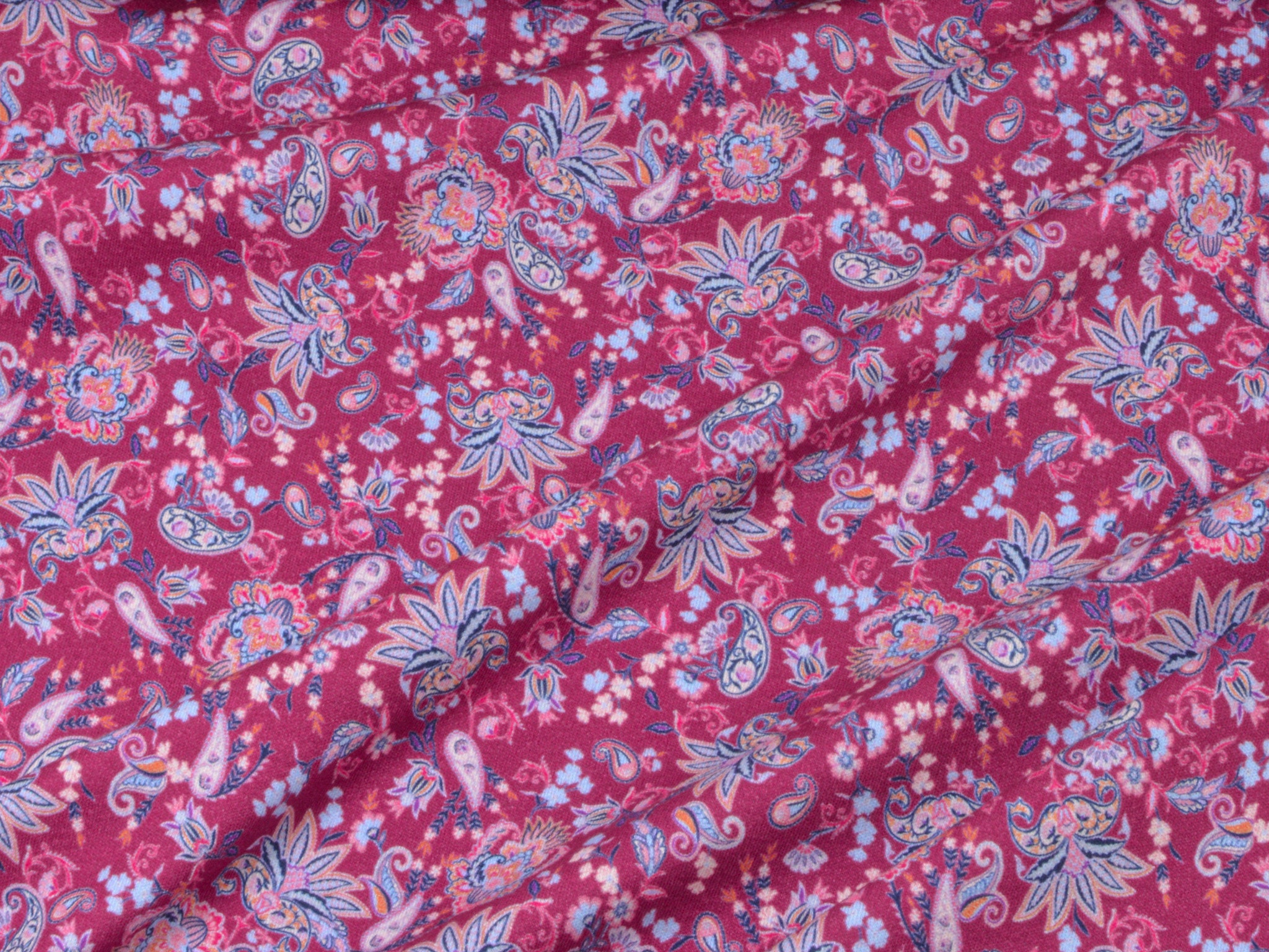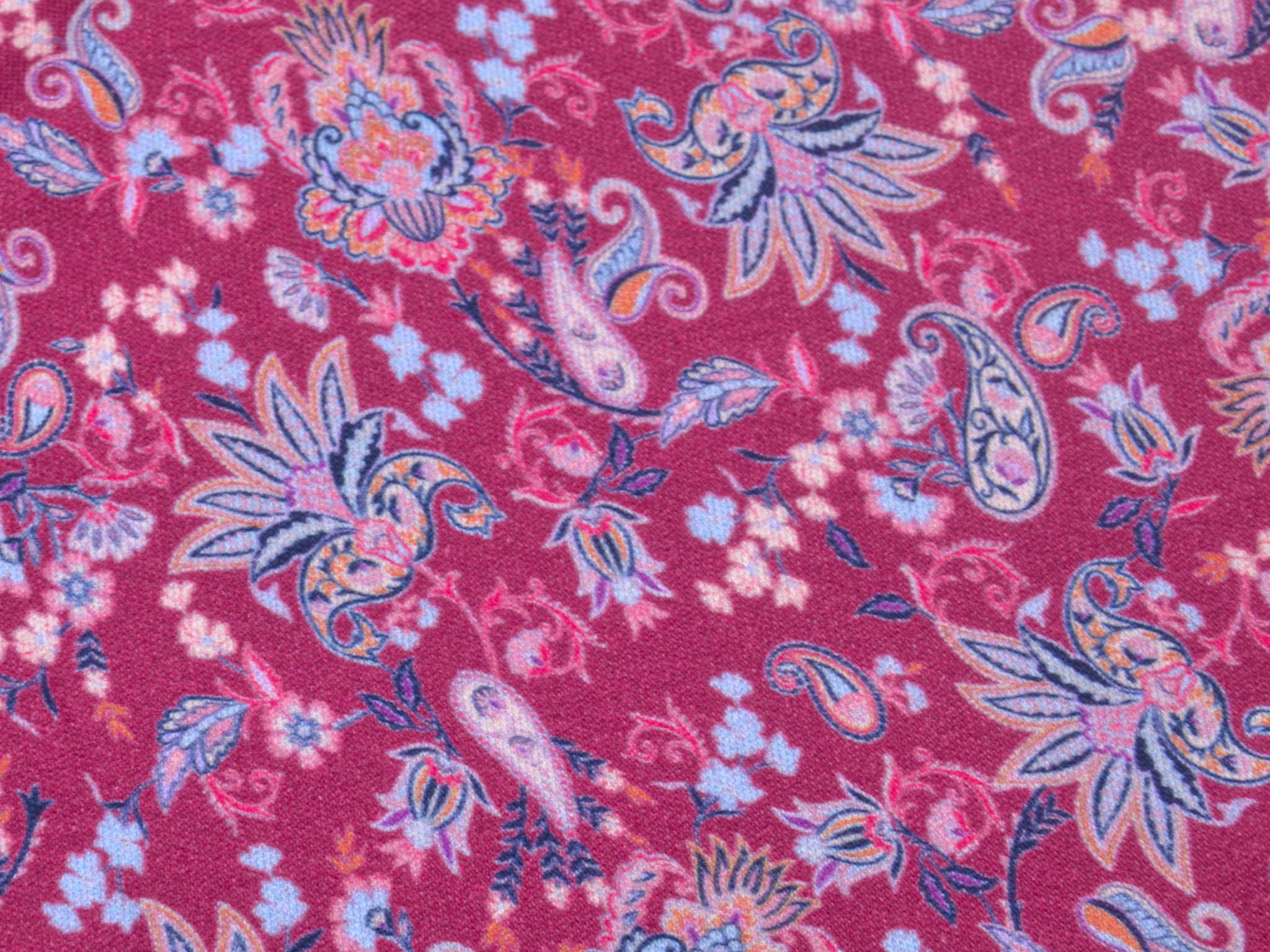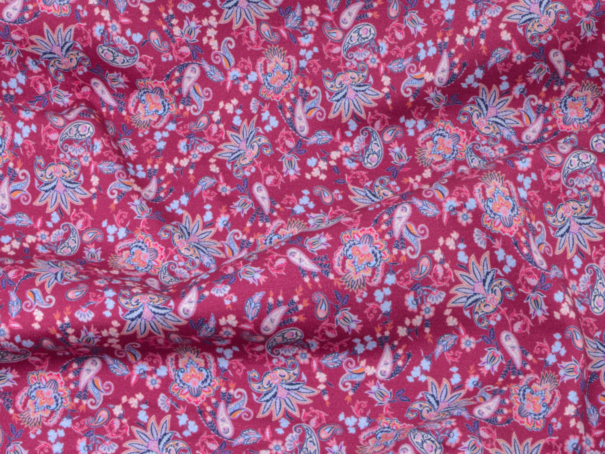 Hochwertiger Interlock-Jersey aus dem Hause Westfalenstoffe. Der Jersey zeigt Blumen und ein Paisley-Muster. Du kannst aus dem Stoff wunderschöne T-Shirts, Pumphosen, Kleider und so vieles mehr nähen.