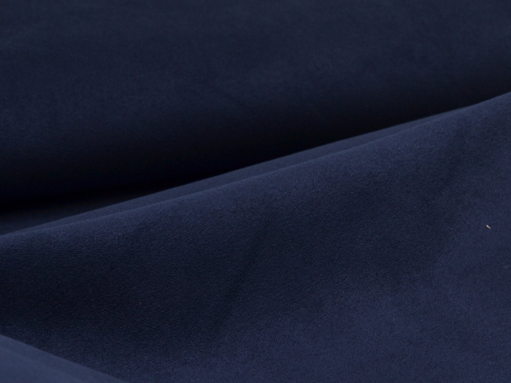Velours-Kunstleder in uni dunkelblau. Der dünne Stoff ist längs-elastisch (parallel zur Webekante). Er hat eine samtige Oberfläche, jedoch nicht ganz so weich wie Samt. Du kannst aus dem Velours Hosen, Jacken, Kleider und vieles mehr Nähen.