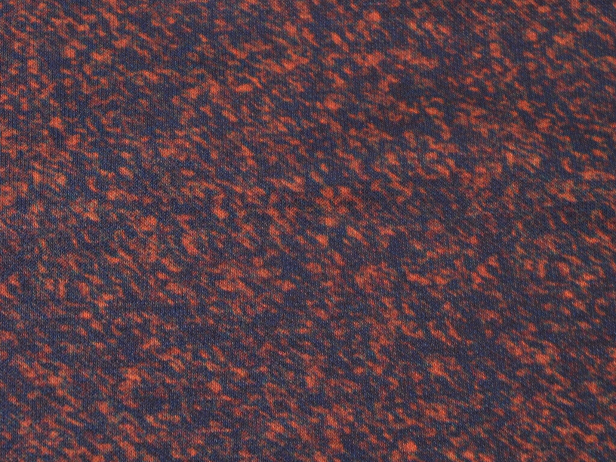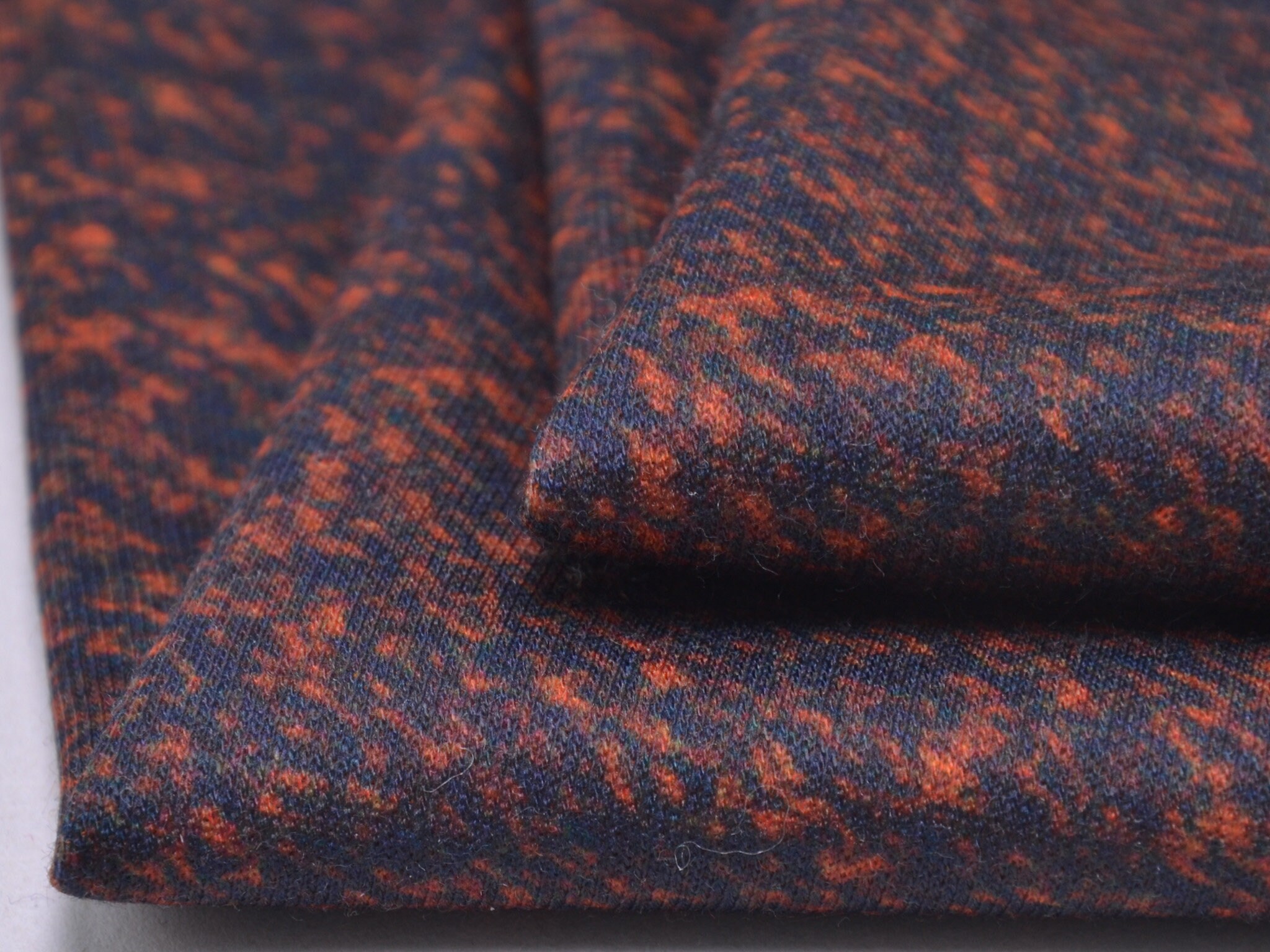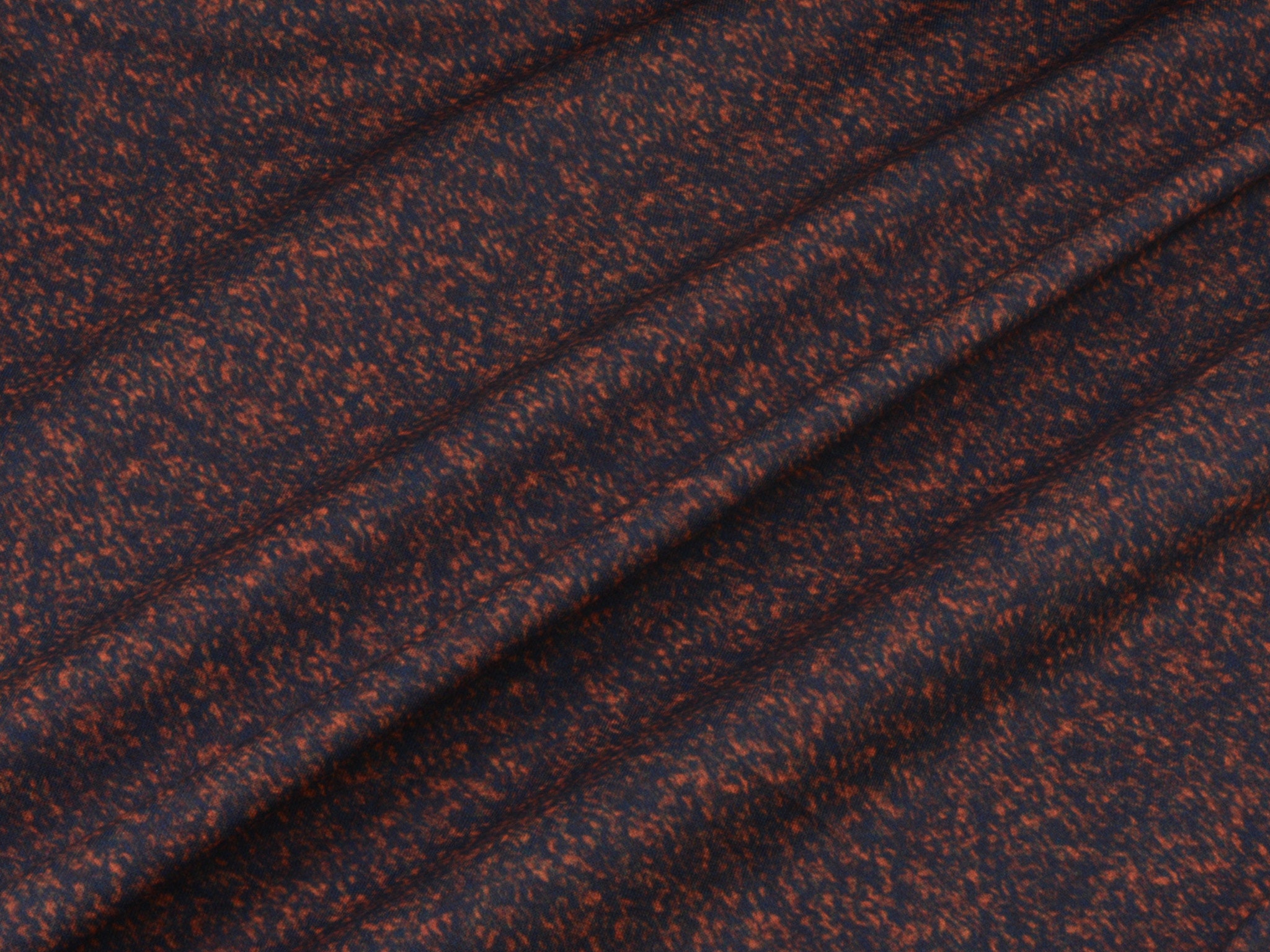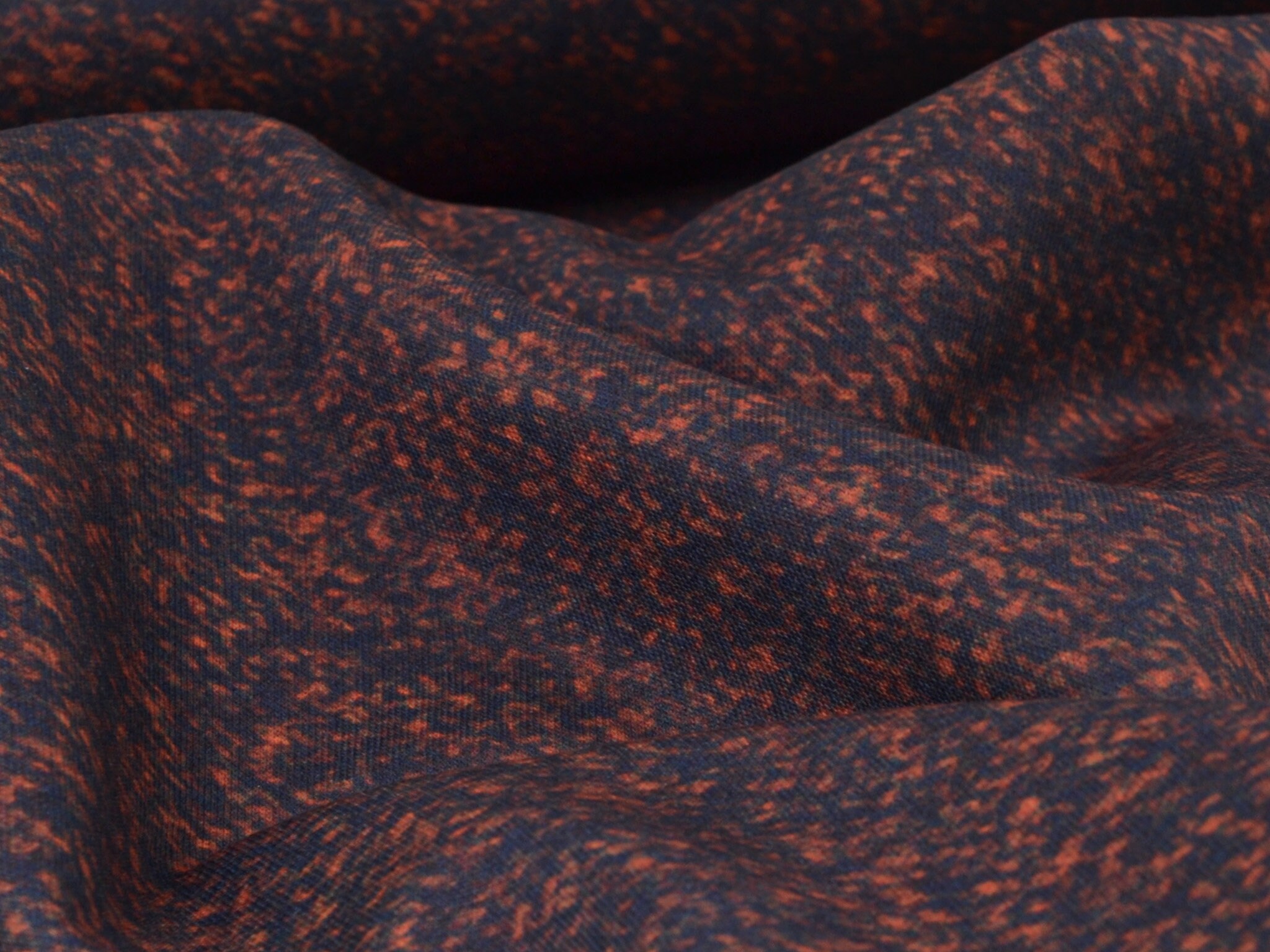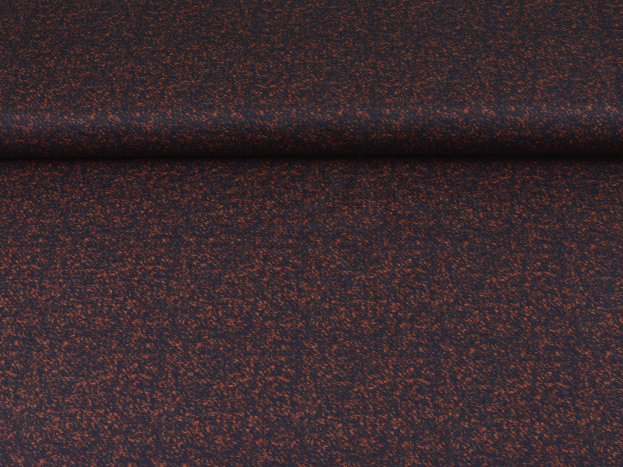 Jersey aus Viskose in orange und dunkelblau. Der Stoff kann von beiden Seiten verwendet werden. Die eine Seite ist orange meliert, die andere Stoffseite ist blau und orange gefleckt. Du kannst den Stoff zum Nähen von Kleidern, T-Shirts, Röcken, Langarmshirts und so vielem mehr verwenden