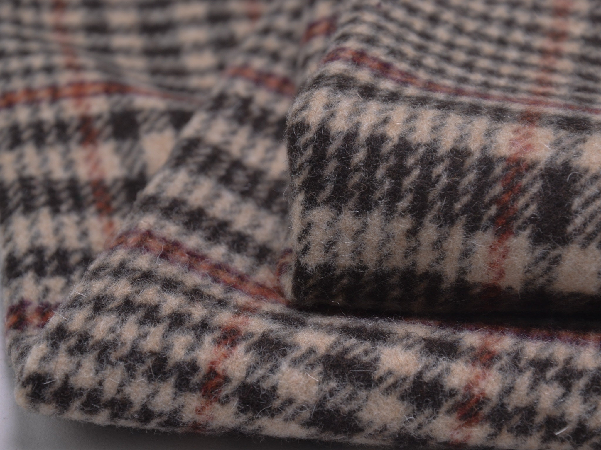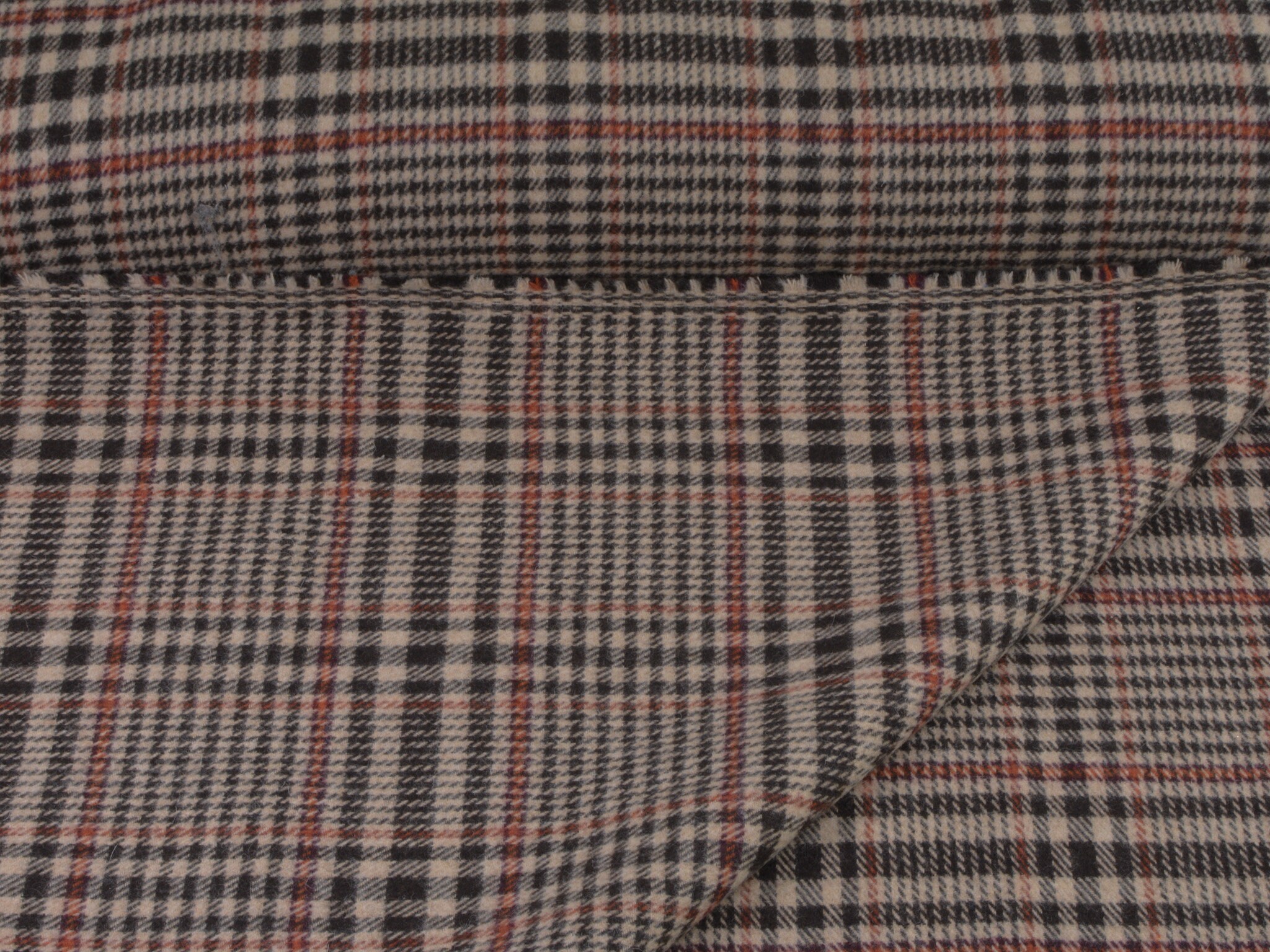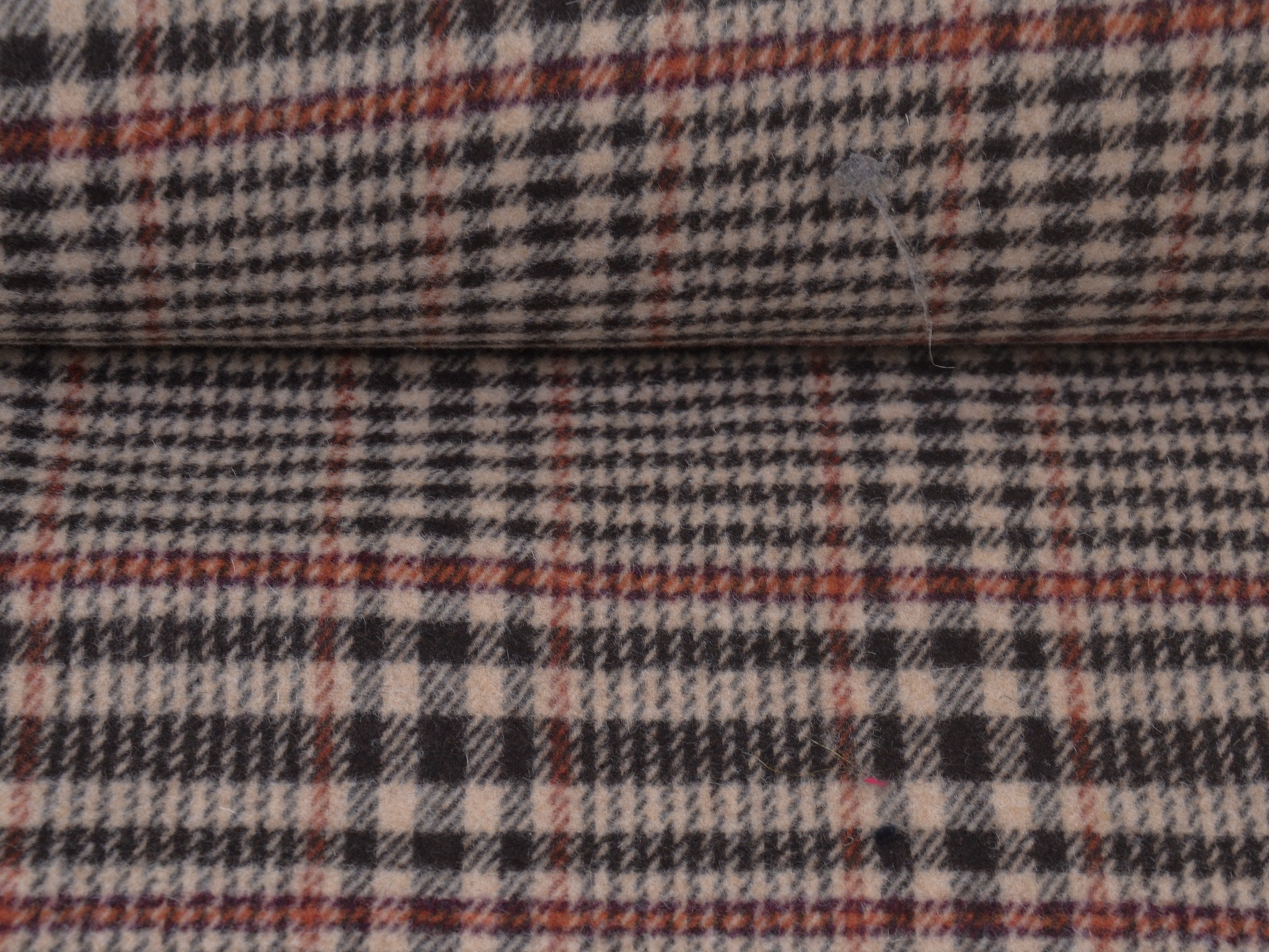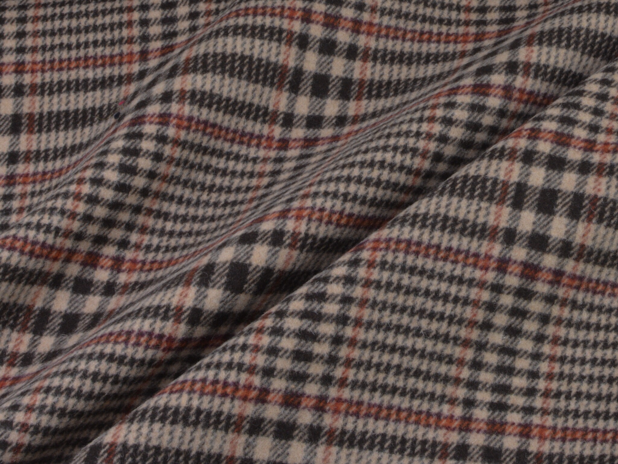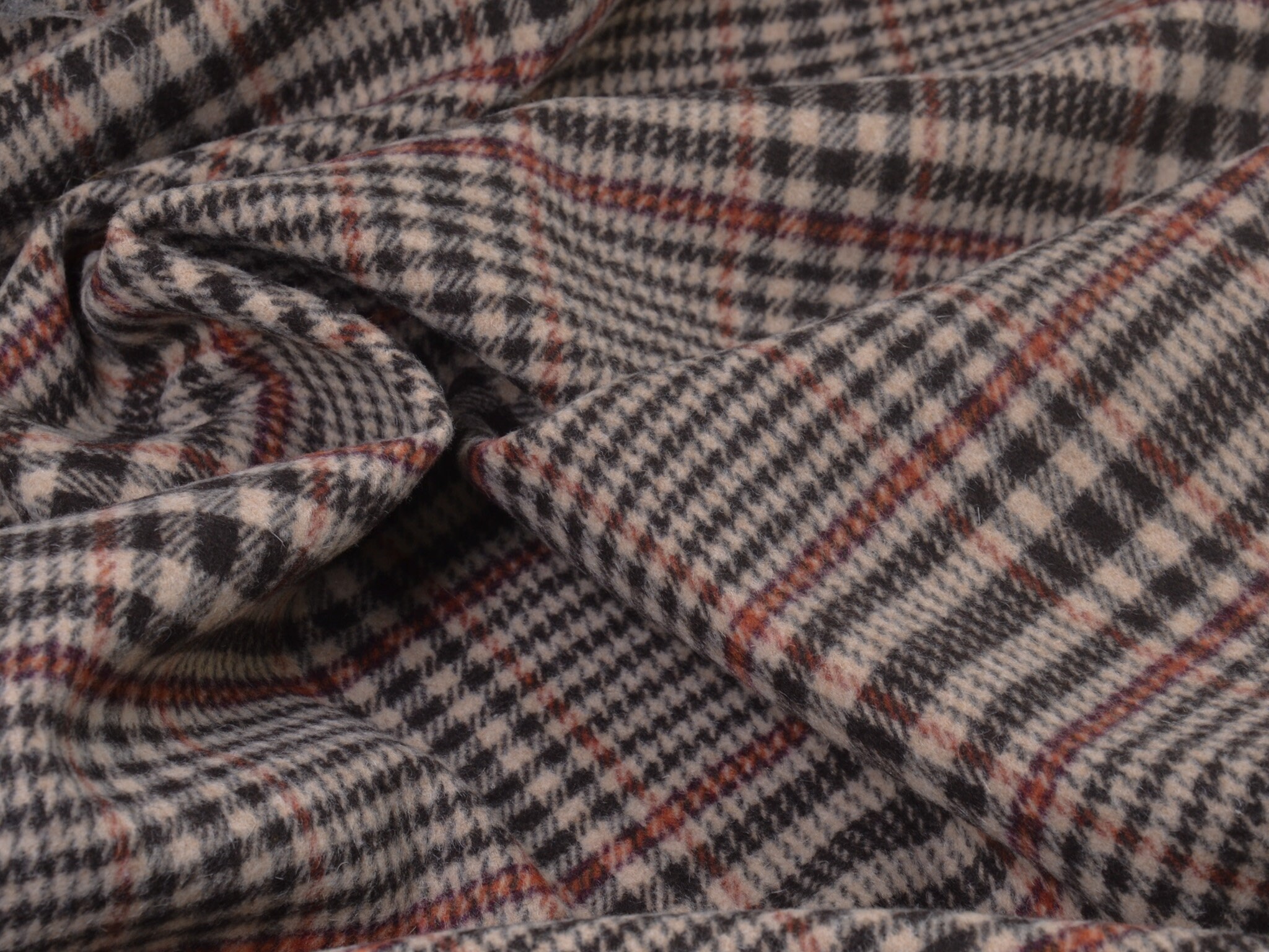 Hochwertiger Wollstoff für Mäntel und Jacken. Der Mischstoff besteht aus Schurwolle, Polyamid und Viskose. Er ist kariert, Karo-Rapport ist ca. 15 cm hoch. Der Stoff ist mittel schwer.
