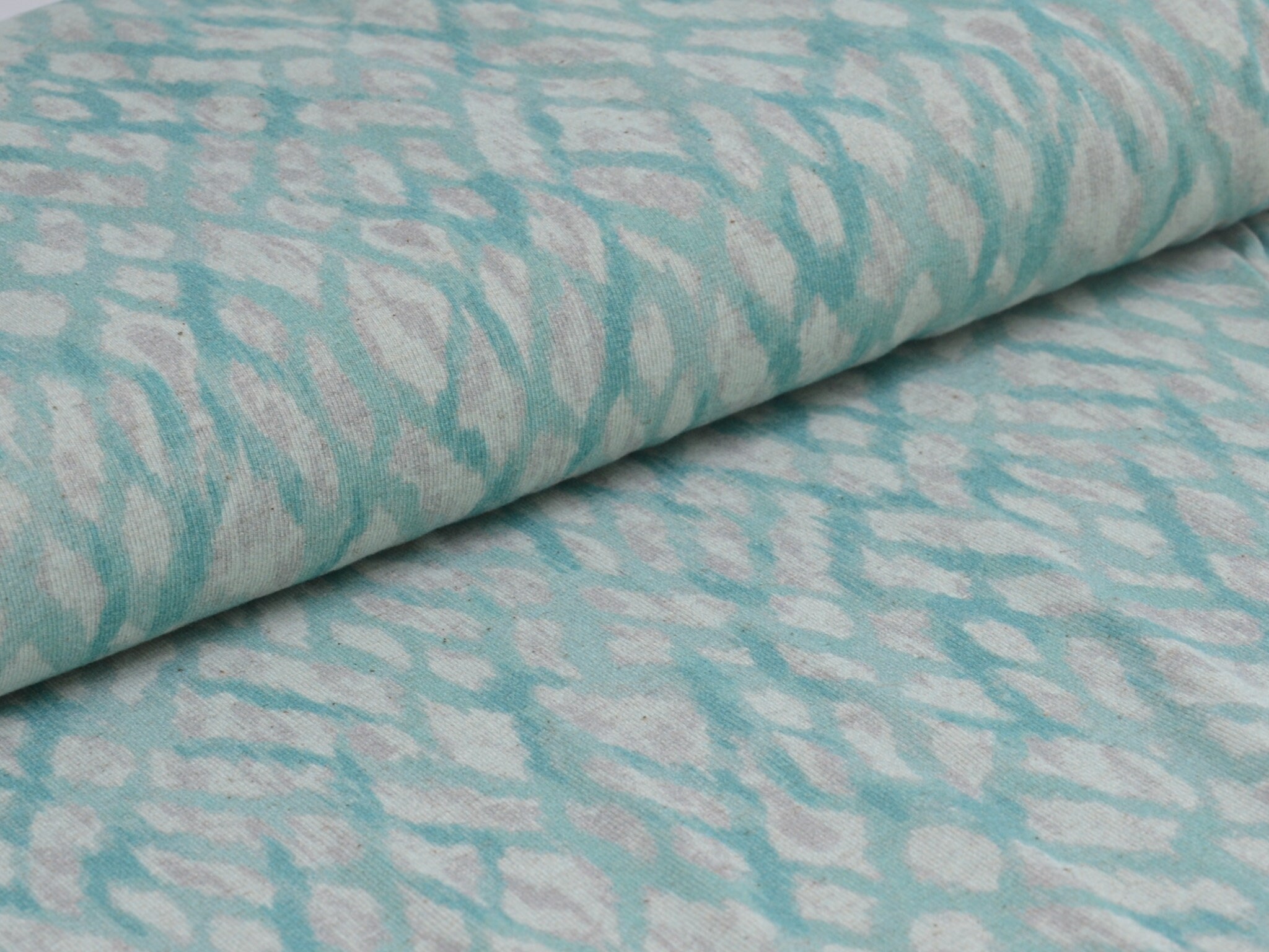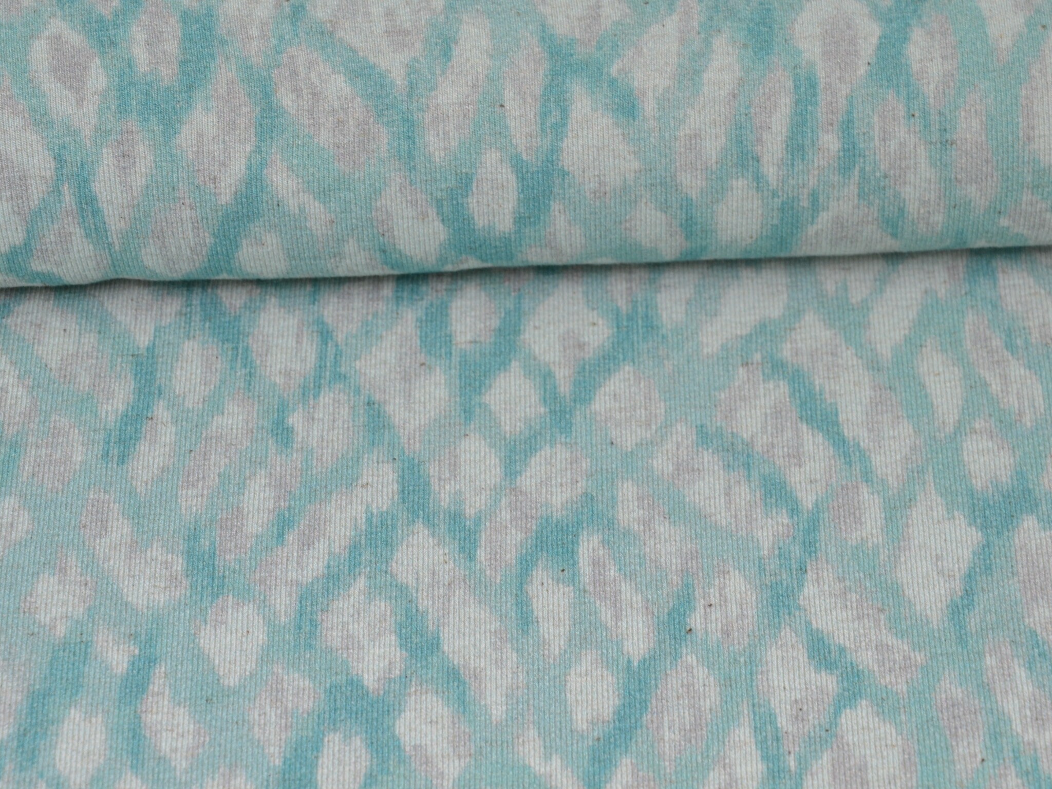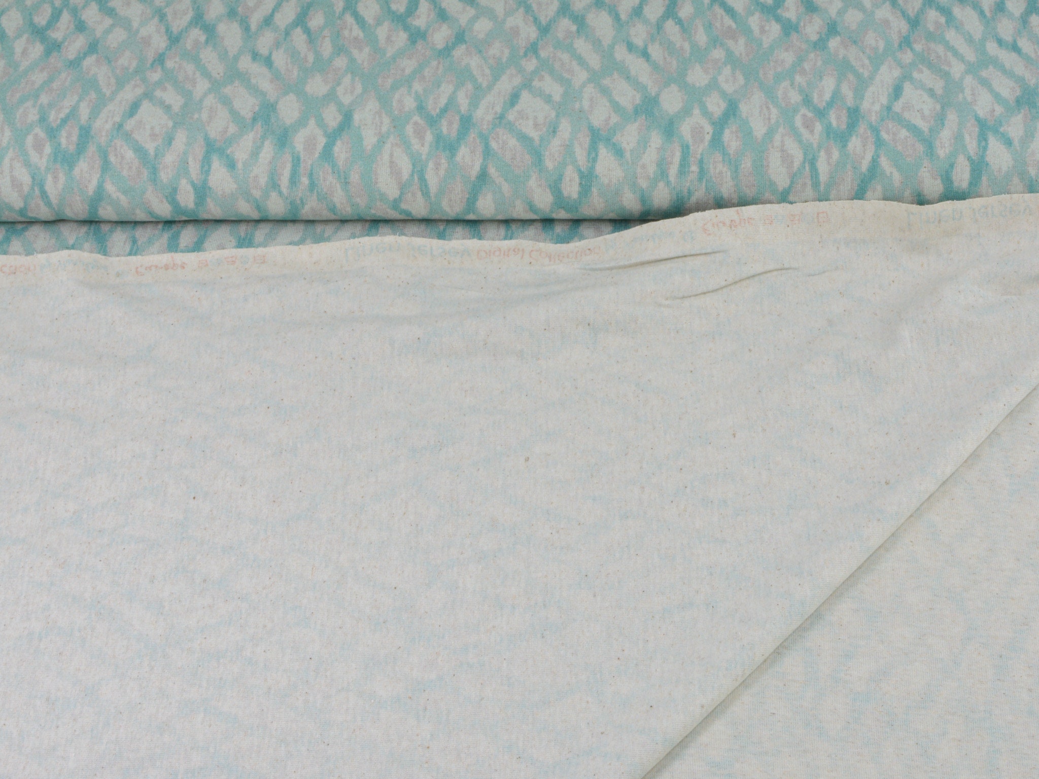 Hochwertiger Jersey aus Baumwolle und Leinen von Hilco. Der Jersey ist dünn, meliert und geometrisch gemustert. Nähe daraus Sommer T-Shirts und Kleider.